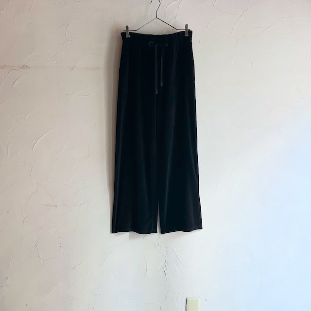 マットな質感で上品なベロアパンツです。 程よくワイドで裾のスリットがデザイン性のある一着です。 color : black material : 76% cotton 24% recycle polyester condition : good size表記 : L 着用スタッフ身長 : 160cm 総丈 : 102cm 股下 : 71cm ウエスト : 40cm(ゴム、紐入りの為伸縮性あり) ・全て平置きでの採寸です。 ==================== 販売前に全体をチェックし、色落ちや穴等気付いた箇所(商品の味としての風合いと判断した箇所を除き)は記載致しますが、稀にわずかなダメージを見落とす場合がございます。 ご了承下さいませ。 また、今後古着特有の経年による風合い、ダメージが出てくる可能性もございます。 ご覧頂く環境により商品のカラーが実際と異なることがございます。 以上をよく確認の上、古着商品にご理解のある方のみのご購入をお願い致します。 ◼️配送について◼️ エコ配達にて配送を致しますので、お日にち指定はして頂けますが、時間帯指定は出来ませんのでご了承下さいませ。 ◼️返品・交換について◼️ 商品のほつれ、色落ち、汚れ、劣化等古着に関することや、イメージと違う、サイズが合わない等、お客様都合によるご返品ご交換は一切お受けすることが出来ませんので、予めご了承下さいませ。 また、ご購入後の自動キャンセルもご遠慮下さいませ。 一度未払いキャンセル、返品希望、クレームがありますと、次回からのご購入をご遠慮させて頂く場合がございます。