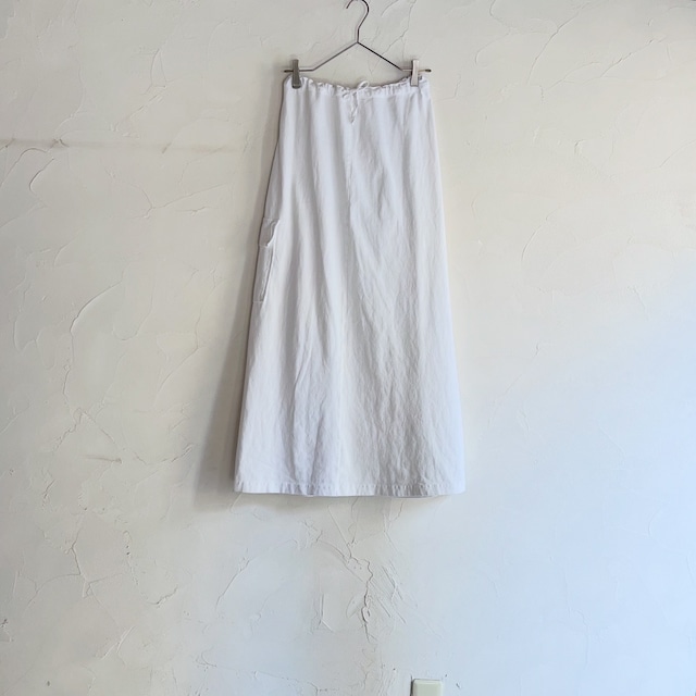 サイドのポケットがワンポイントなAラインのスカートです。 柔らかいコットンで、程よく厚みのあるしっかりとした生地です。 color : white material : 100% cotton condition : normal(バック裾に汚れあり) size表記 : M 着用スタッフ身長 : 160cm 総丈 : 94cm ウエスト : 約34cm(紐で調節可、ゴムの為伸縮性あり) ・全て平置きでの採寸です。 ==================== 販売前に全体をチェックし、色落ちや穴等気付いた箇所(商品の味としての風合いと判断した箇所を除き)は記載致しますが、稀にわずかなダメージを見落とす場合がございます。 ご了承下さいませ。 また、今後古着特有の経年による風合い、ダメージが出てくる可能性もございます。 ご覧頂く環境により商品のカラーが実際と異なることがございます。 以上をよく確認の上、古着商品にご理解のある方のみのご購入をお願い致します。 ◼️配送について◼️ エコ配達にて配送を致しますので、お日にち指定はして頂けますが、時間帯指定は出来ませんのでご了承下さいませ。 ◼️返品・交換について◼️ 商品のほつれ、色落ち、汚れ、劣化等古着に関することや、イメージと違う、サイズが合わない等、お客様都合によるご返品ご交換は一切お受けすることが出来ませんので、予めご了承下さいませ。 また、ご購入後の自動キャンセルもご遠慮下さいませ。 一度未払いキャンセル、返品希望、クレームがありますと、次回からのご購入をご遠慮させて頂く場合がございます。