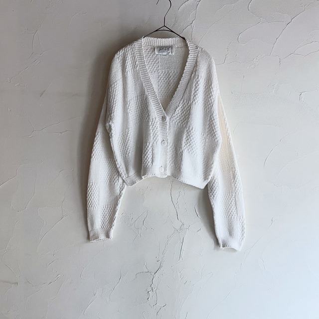 コットン100%でさらっとした生地感のニットカーディガンです。ぽこぽことした立体的な編み地が素敵な一着です。 color : white material : 100% cotton condition : normal(首周り、バック肩付近に若干の黄ばみあり) size表記 : M 着用スタッフ身長 : 160cm 着丈 : 43cm 身幅 : 53cm 肩幅 : 56cm 袖丈 : 53cm ・全て平置きでの採寸です。 ==================== 販売前に全体をチェックし、色落ちや穴等気付いた箇所(商品の味としての風合いと判断した箇所を除き)は記載致しますが、稀にわずかなダメージを見落とす場合がございます。 ご了承下さいませ。 また、今後古着特有の経年による風合い、ダメージが出てくる可能性もございます。 ご覧頂く環境により商品のカラーが実際と異なることがございます。 以上をよく確認の上、古着商品にご理解のある方のみのご購入をお願い致します。 ◼️配送について◼️ エコ配達にて配送を致しますので、お日にち指定はして頂けますが、時間帯指定は出来ませんのでご了承下さいませ。 ◼️返品・交換について◼️ 商品のほつれ、色落ち、汚れ、劣化等古着に関することや、イメージと違う、サイズが合わない等、お客様都合によるご返品ご交換は一切お受けすることが出来ませんので、予めご了承下さいませ。 また、ご購入後の自動キャンセルもご遠慮下さいませ。 一度未払いキャンセル、返品希望、クレームがありますと、次回からのご購入をご遠慮させて頂く場合がございます。