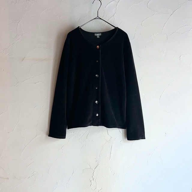 パイル地のような質感のベロアカーディガンです。 シンプルな作りながら、サイズ違いのボタンが施された遊び心ある一着です。 color : black material : 78% cotton 22% polyester condition : good size表記 : m 着用スタッフ身長 : 150cm 着丈 : 52cm 身幅 : 50cm 肩幅 : 39cm 袖丈 : 54cm ・全て平置きでの採寸です。 ==================== 販売前に全体をチェックし、色落ちや穴等気付いた箇所(商品の味としての風合いと判断した箇所を除き)は記載致しますが、稀にわずかなダメージを見落とす場合がございます。 ご了承下さいませ。 また、今後古着特有の経年による風合い、ダメージが出てくる可能性もございます。 ご覧頂く環境により商品のカラーが実際と異なることがございます。 以上をよく確認の上、古着商品にご理解のある方のみのご購入をお願い致します。 ◼️配送について◼️ エコ配達にて配送を致しますので、お日にち指定はして頂けますが、時間帯指定は出来ませんのでご了承下さいませ。 ◼️返品・交換について◼️ 商品のほつれ、色落ち、汚れ、劣化等古着に関することや、イメージと違う、サイズが合わない等、お客様都合によるご返品ご交換は一切お受けすることが出来ませんので、予めご了承下さいませ。 また、ご購入後の自動キャンセルもご遠慮下さいませ。 一度未払いキャンセル、返品希望、クレームがありますと、次回からのご購入をご遠慮させて頂く場合がございます。