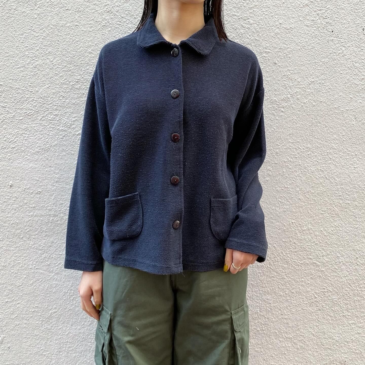 丸襟が柔らかい印象のワッフル生地のシャツジャケットです。