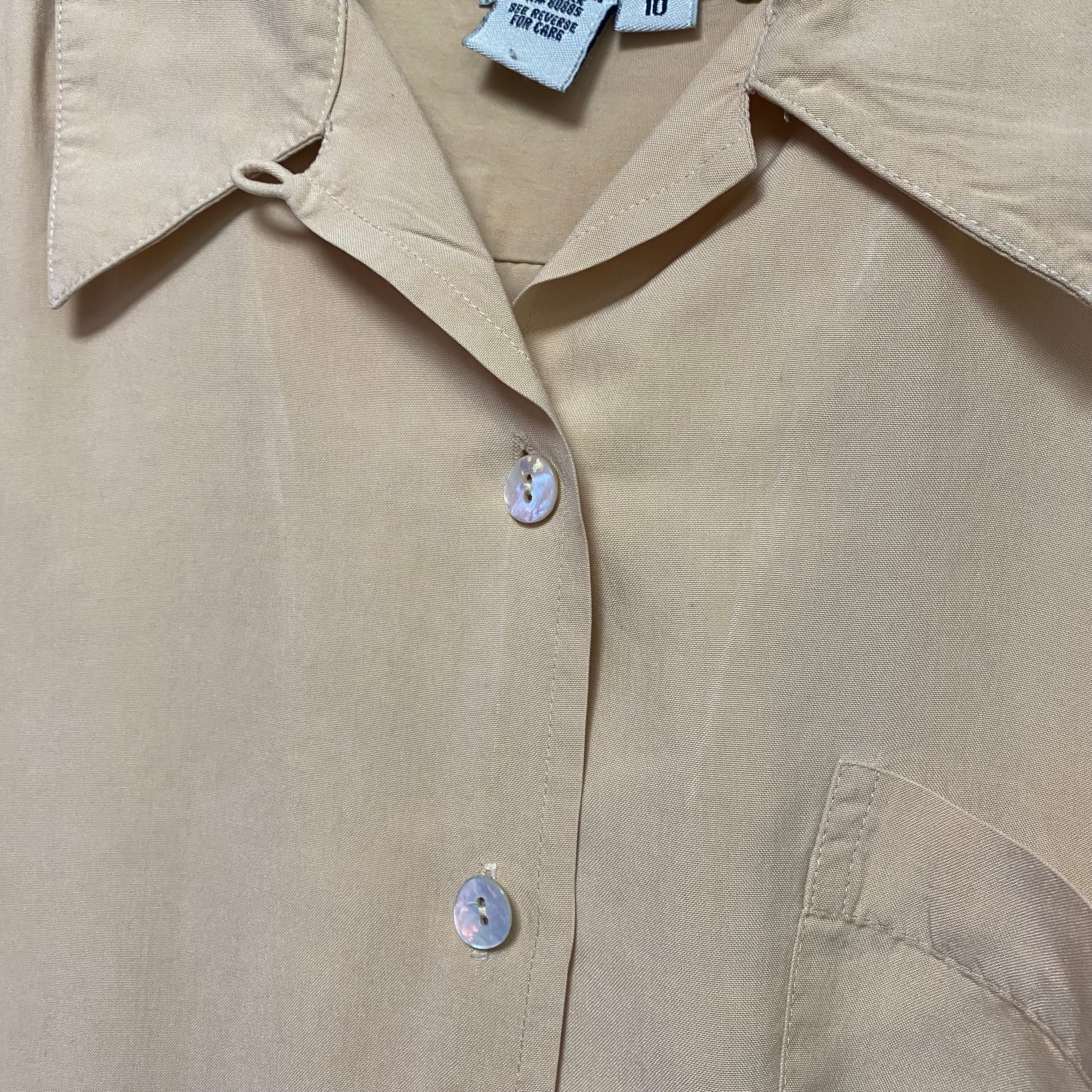 100%シルクのテロっとした優しい肌触りのシャツです。
