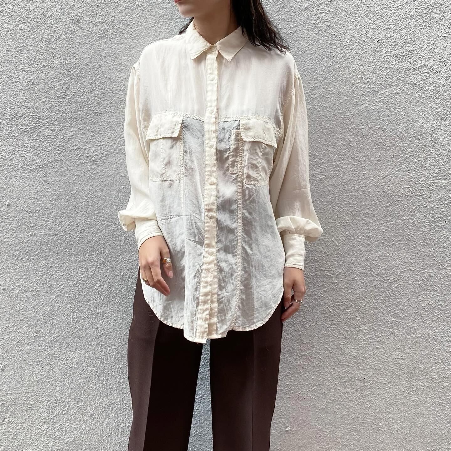 100%シルクの肌触り柔らかな光沢感のあるシャツです。