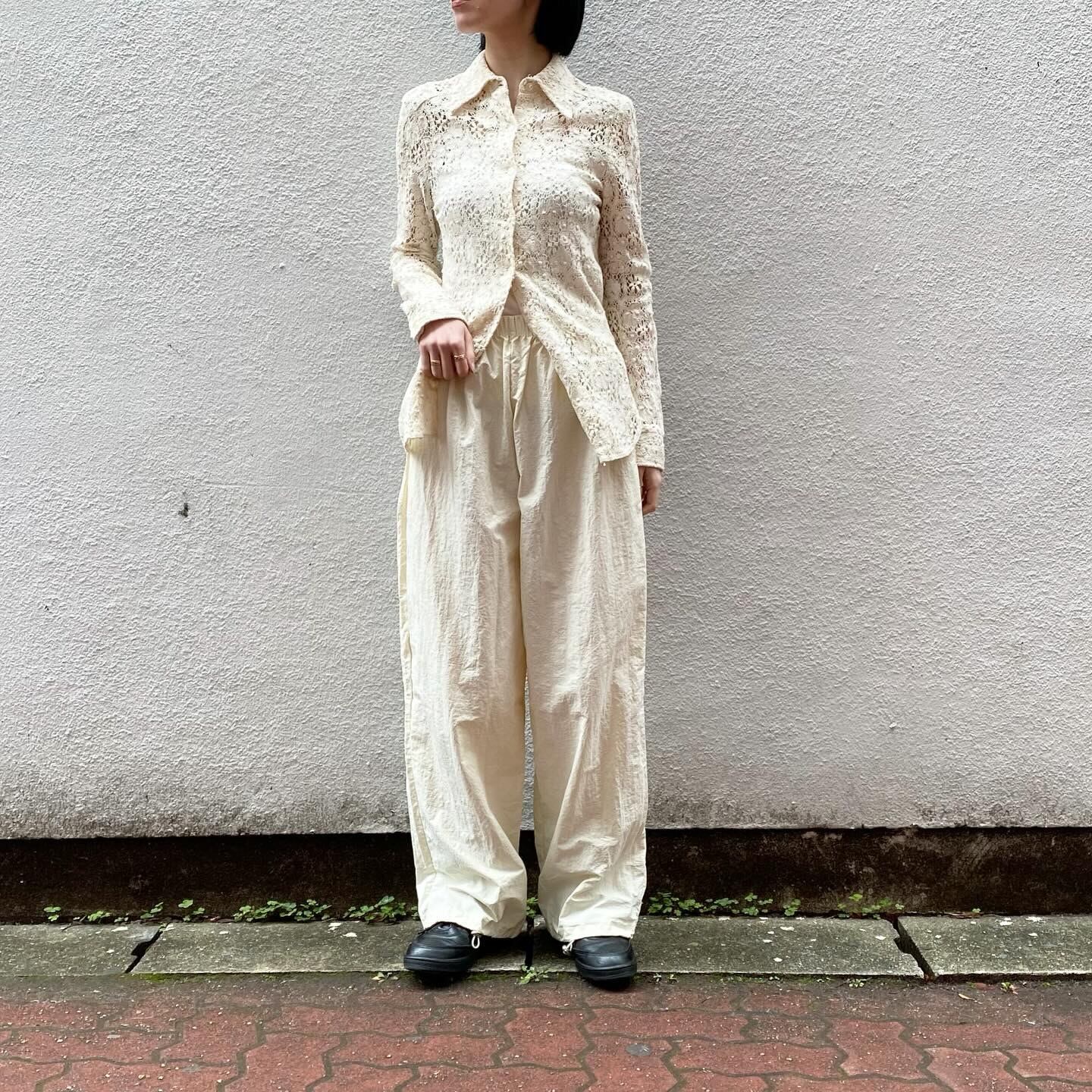 肌馴染みのいいアイボリーがどんなカラーとも合わせやすいナイロンパンツです。