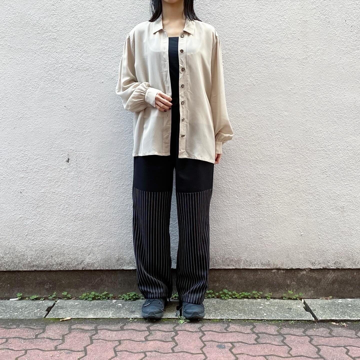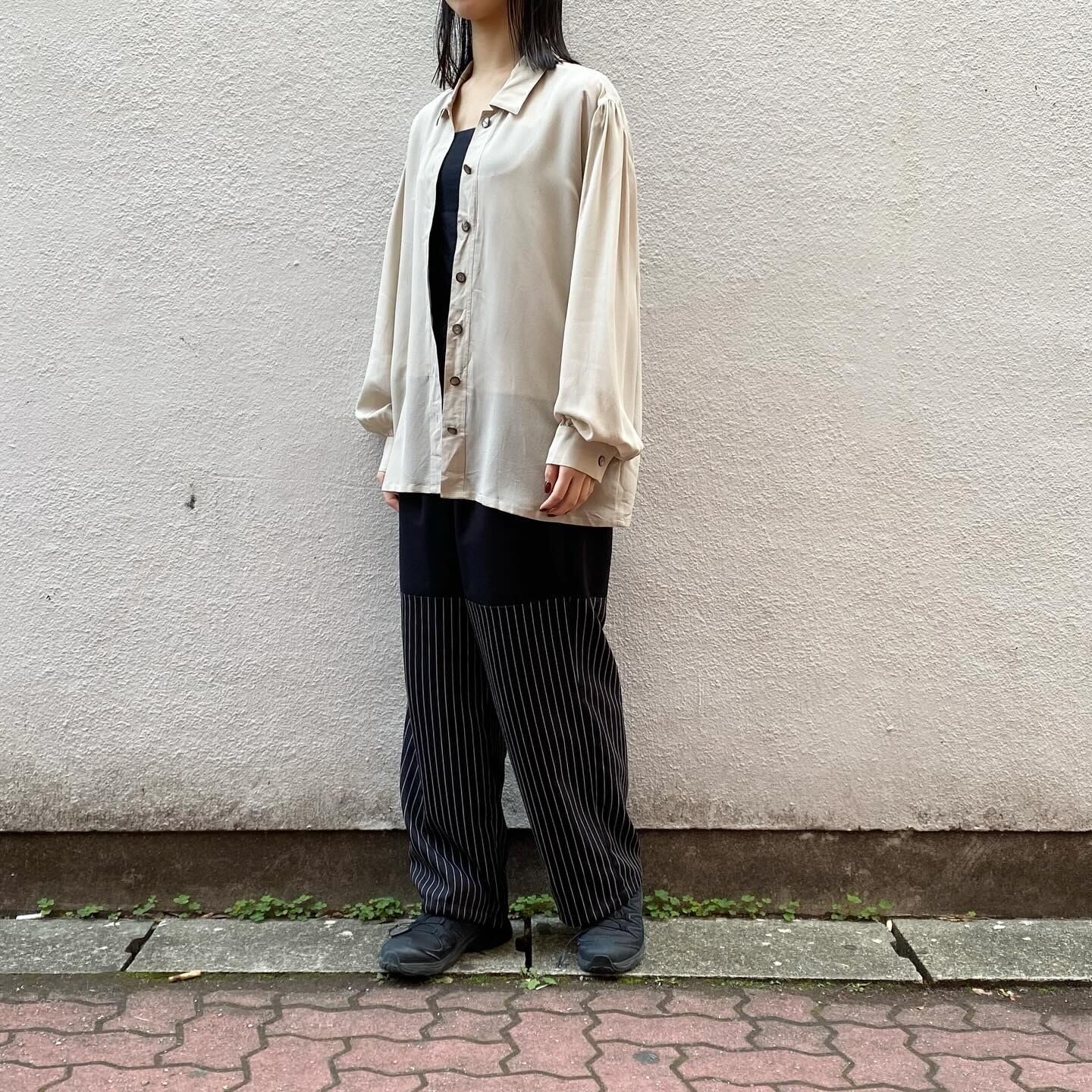 100%シルクのさらっとした生地感のシャツです。前見頃だけ生地が二重になっており、透けづらい仕様になっています。