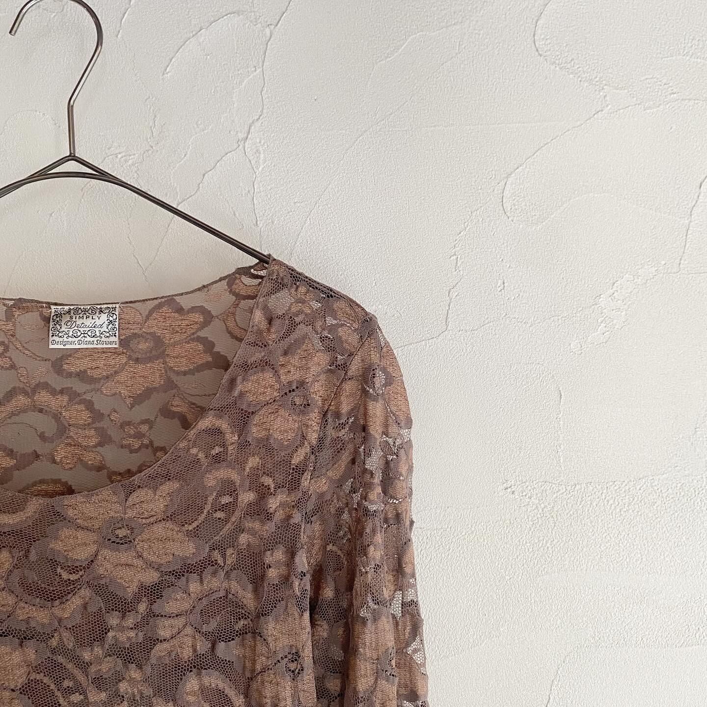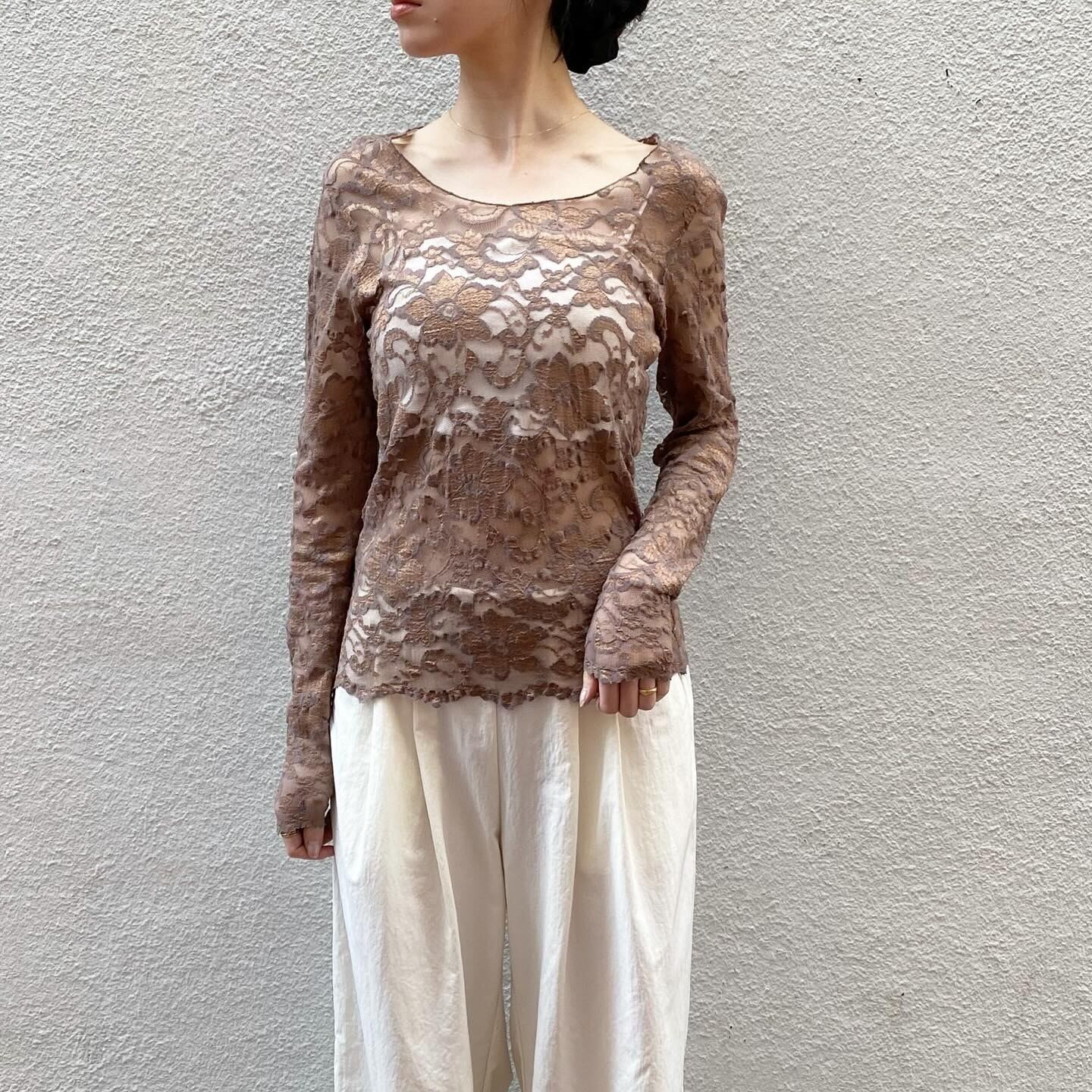 肌馴染みの良い淡いブラウンベージュカラーと透け感のある繊細レースが素敵なトップスです。