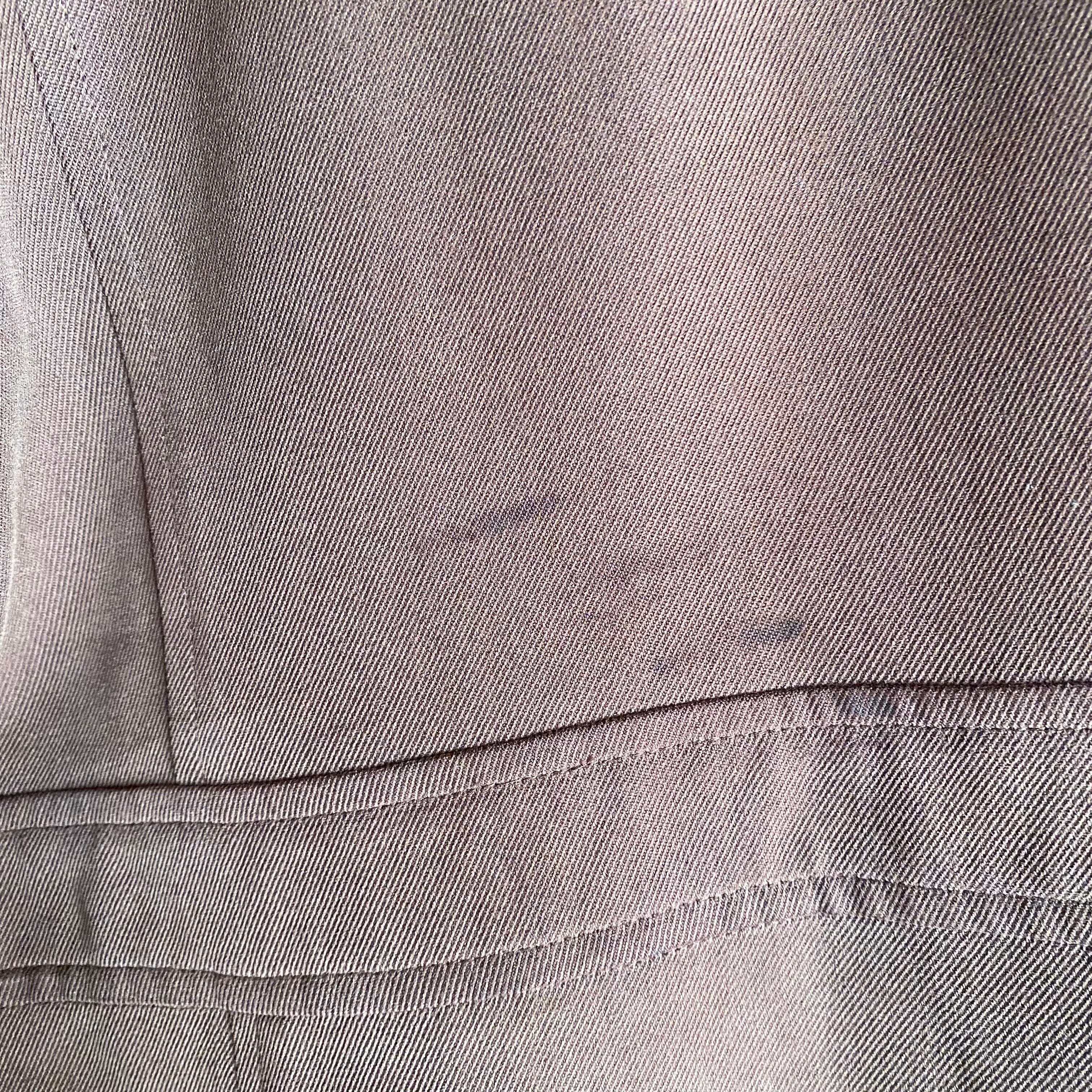 販売前に全体をチェックし、色落ちや穴等気付いた箇所(商品の味としての風合いと判断した箇所を除き)は記載致しますが、稀にわずかなダメージを見落とす場合がございます。