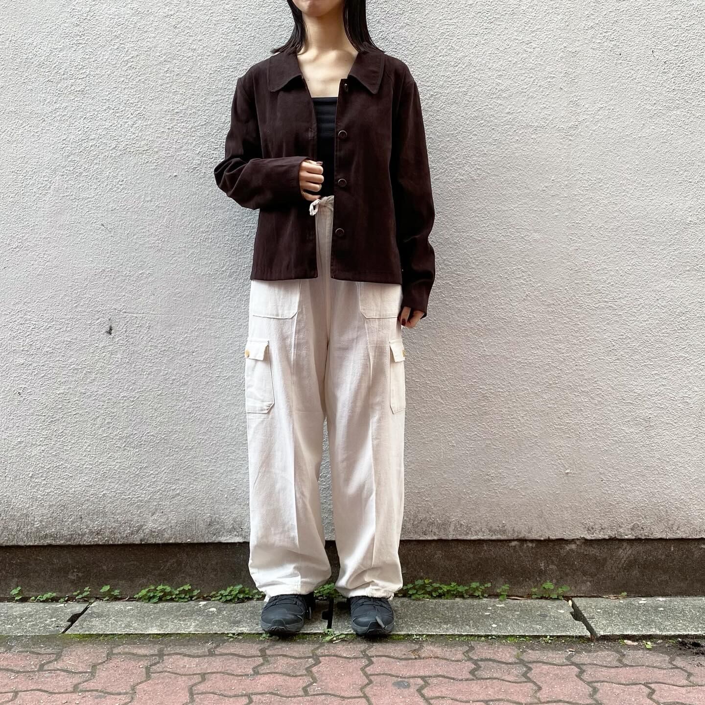フェイクスエードのマットな生地感や、バックのデザインの素敵なシャツジャケットです。