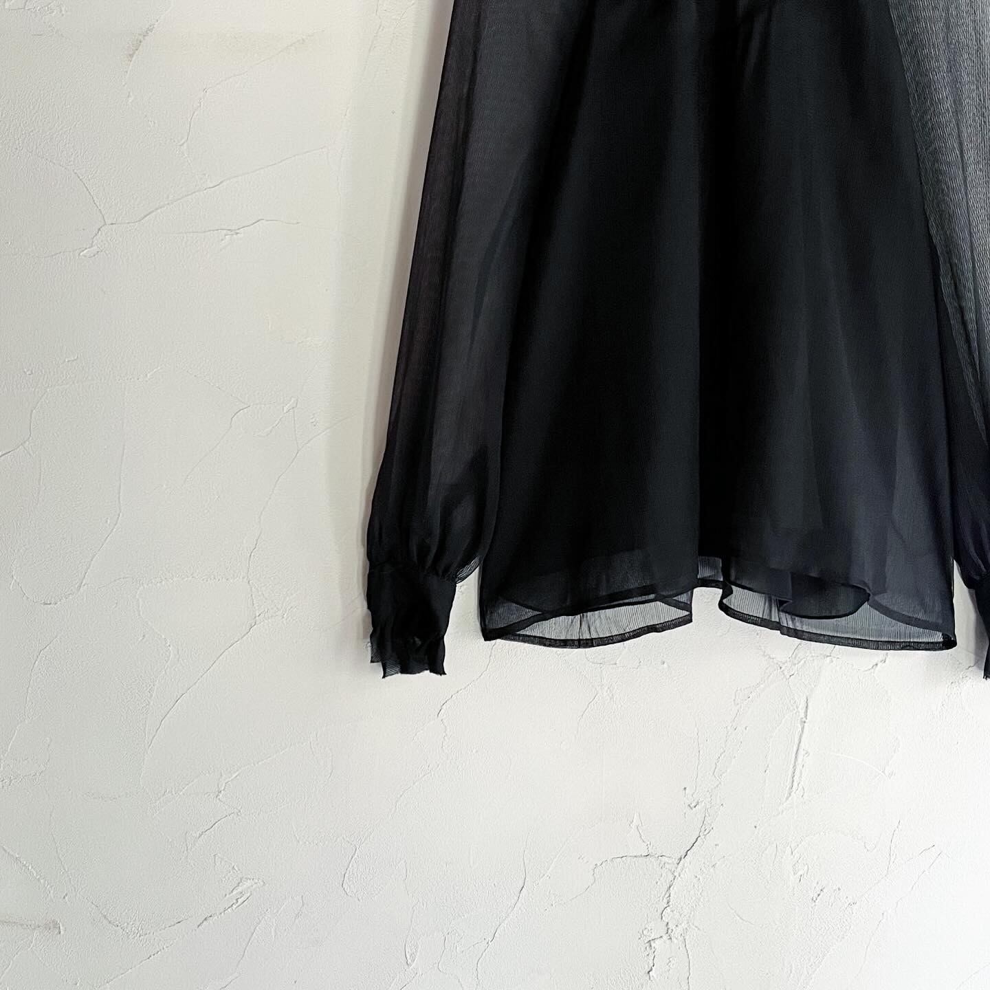 シアーの柔らかい生地感と、袖口と襟元の切りっぱなしのデザインが素敵なブラウスです。