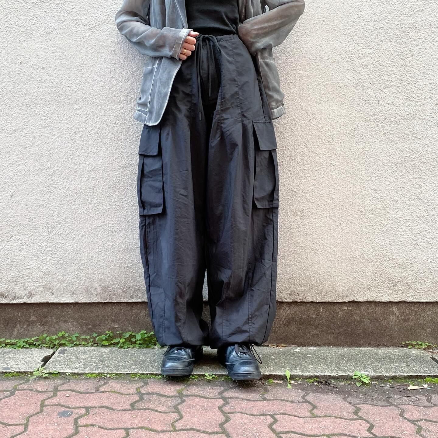 シャカシャカとした柔らかいナイロン素材のカーゴパンツです。