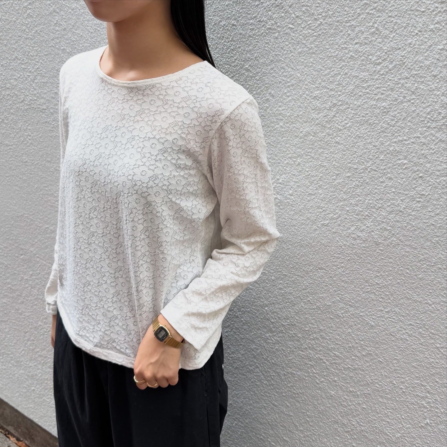 アイボリーの小花が柔らかい印象のロンTです。程よく透け感のある女性らしい一着です。