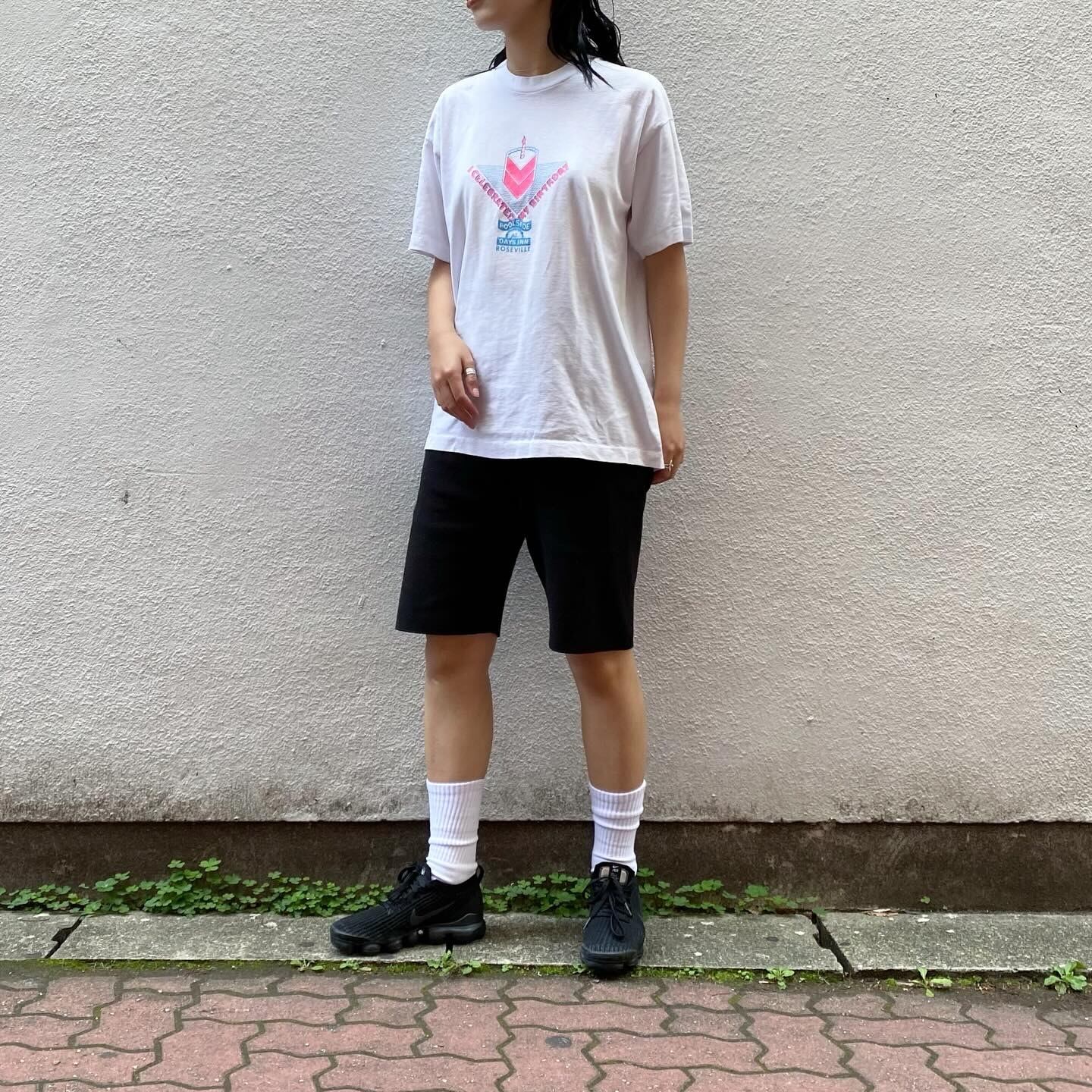 ピンクとブルーのケーキのロゴが可愛いTシャツです。ゆったりとしたサイズ感でラフにお召し頂けます。