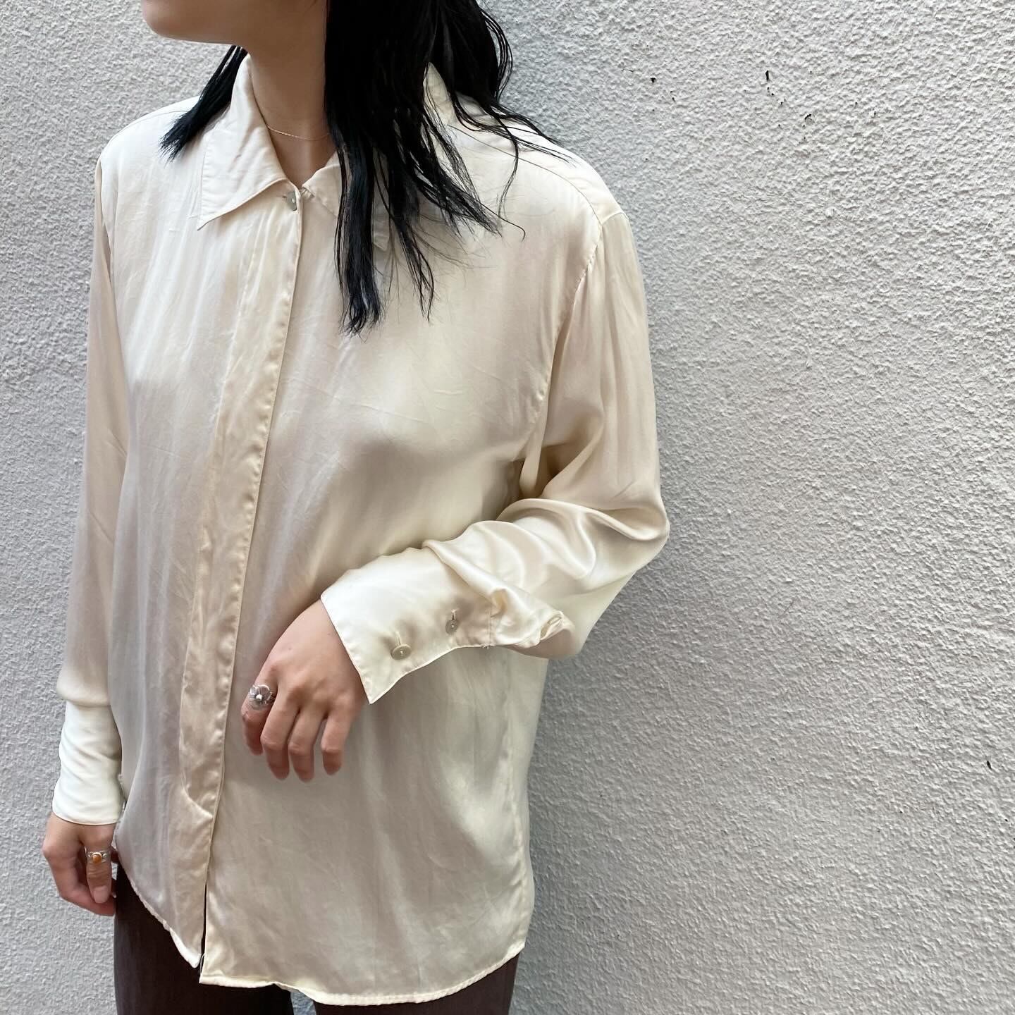 柔らかいクリームのお色味とボタンの見えないフライフロントデザインが素敵です。