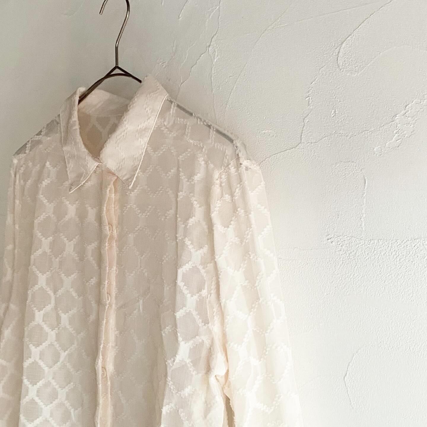 肌馴染みの良いピンク寄りのアイボリーカラーで、さりげなく透けるデザインが素敵な一枚です。