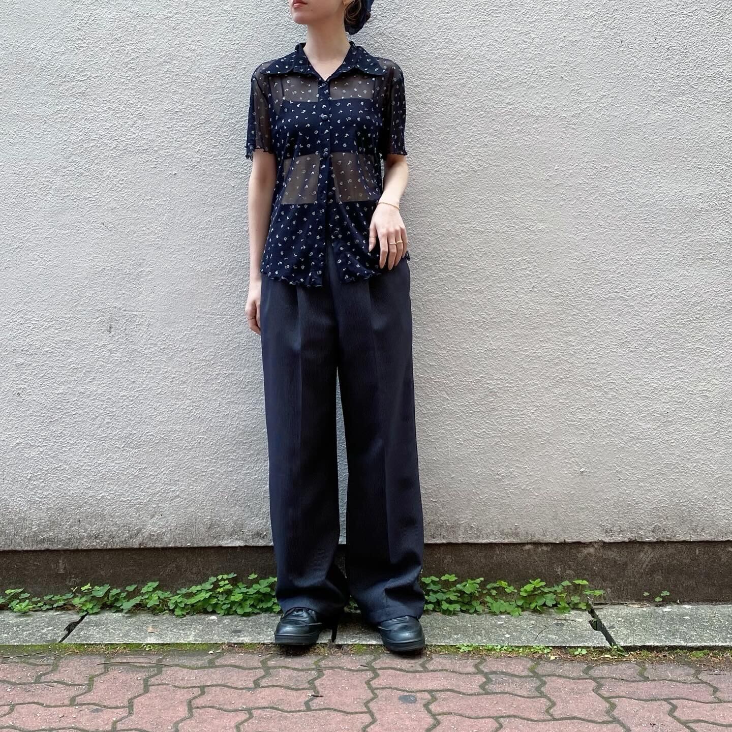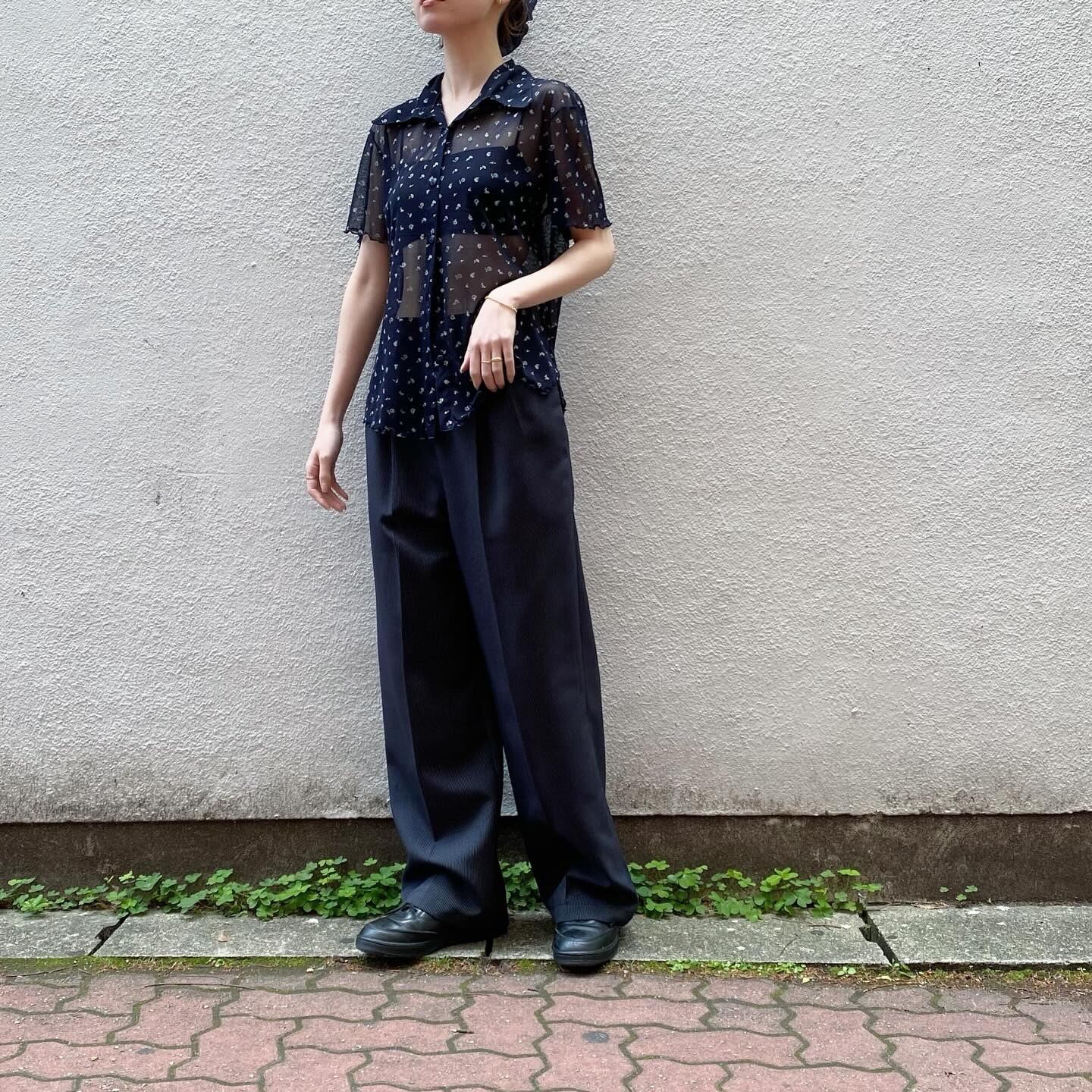 ネイビーにブルーの小花が素敵なシアーシャツです。