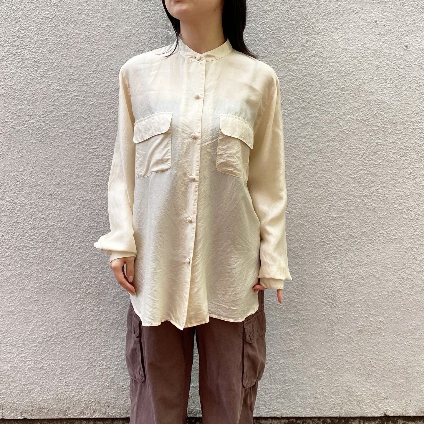 丸いボタンの可愛い淡いイエローのシルクシャツです。