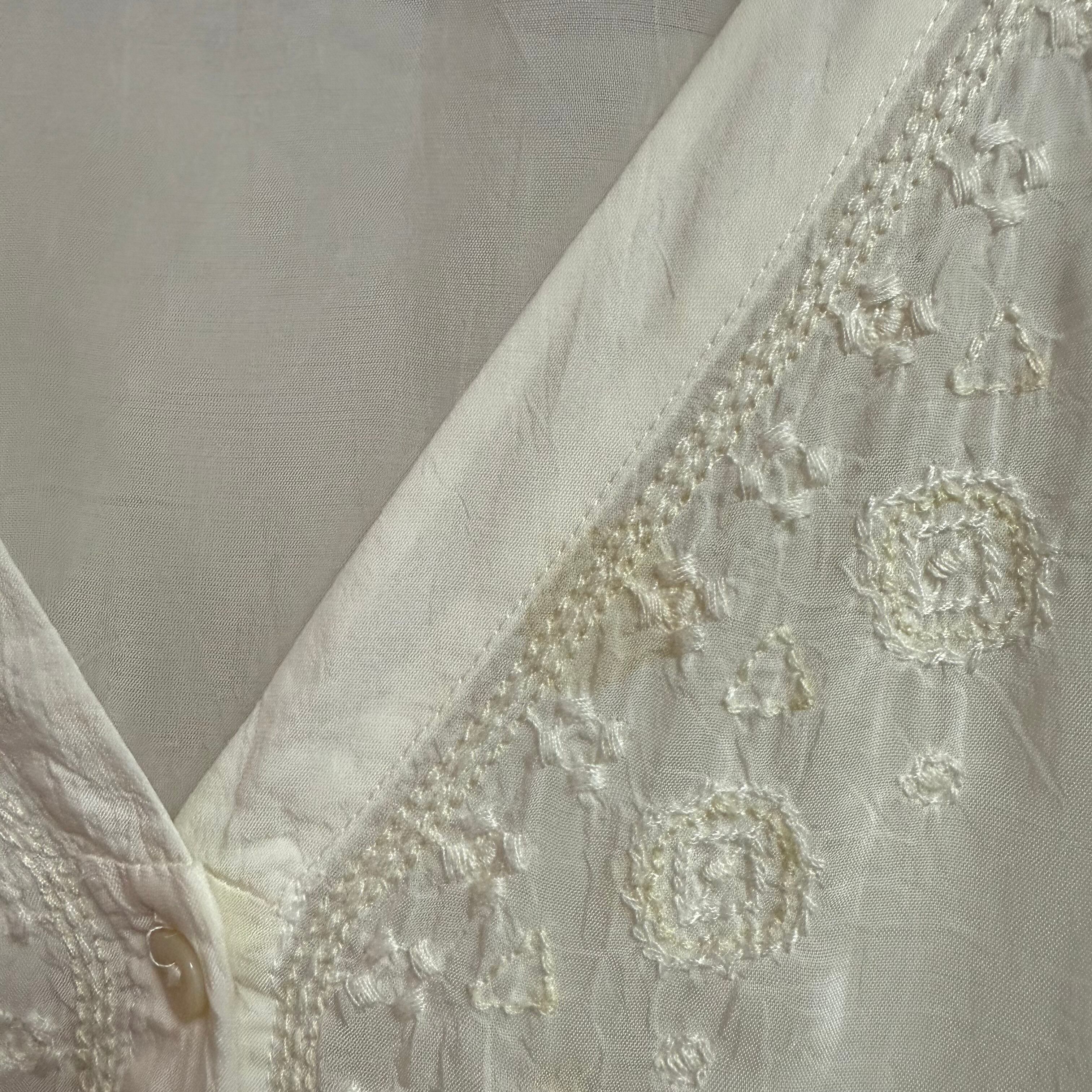 フロントと裾の同色の刺繍が素敵なシャツです。