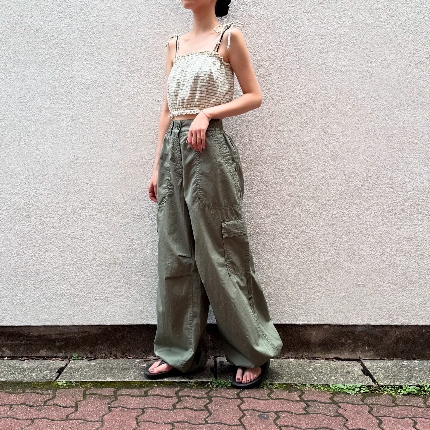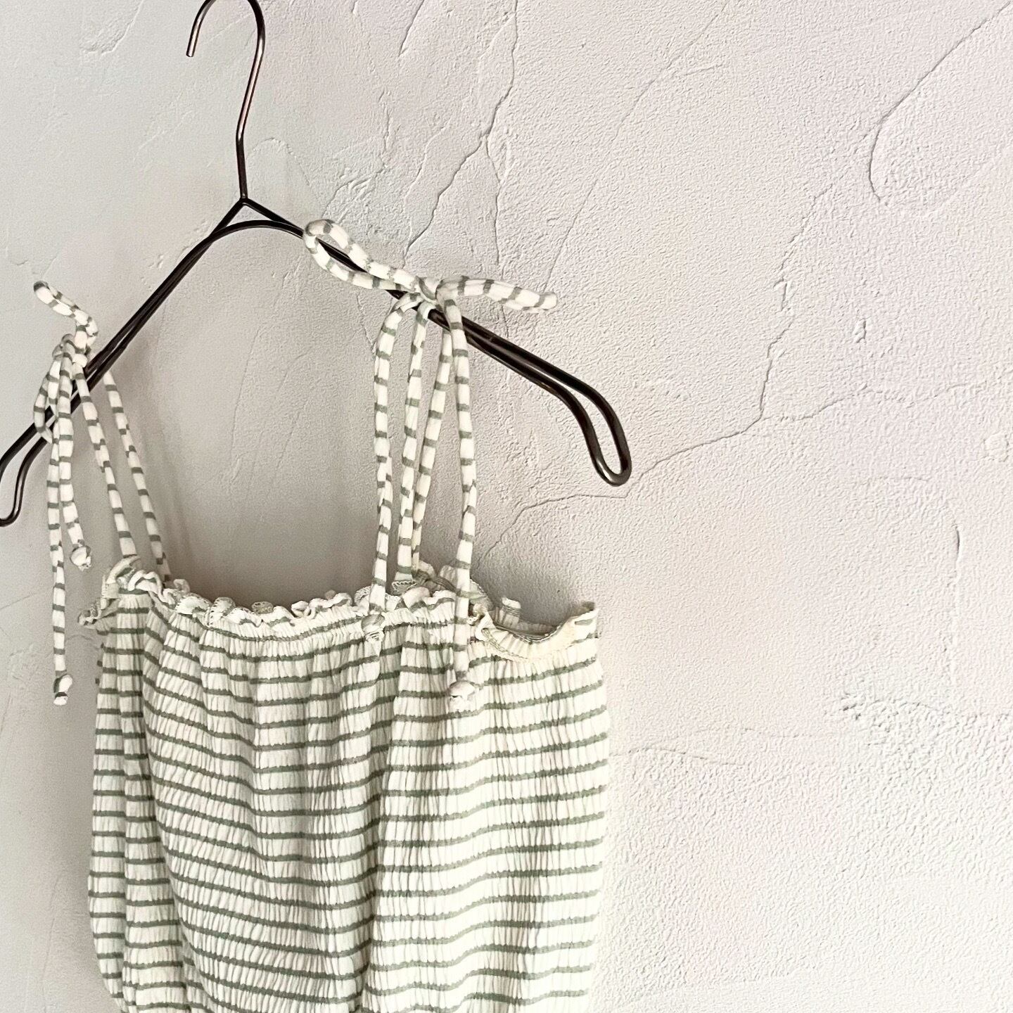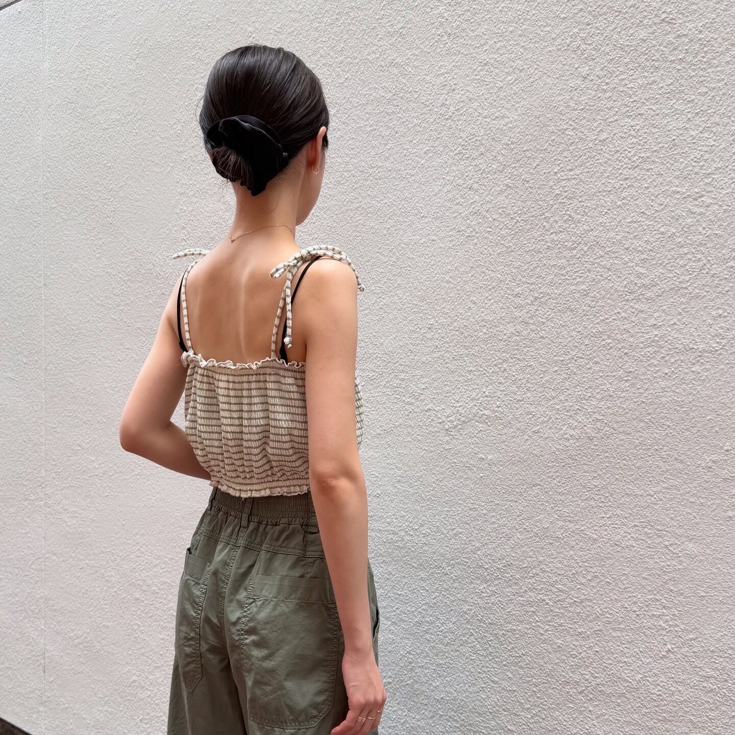 淡い配色や肩紐のリボンが夏らしいキャミソールです。