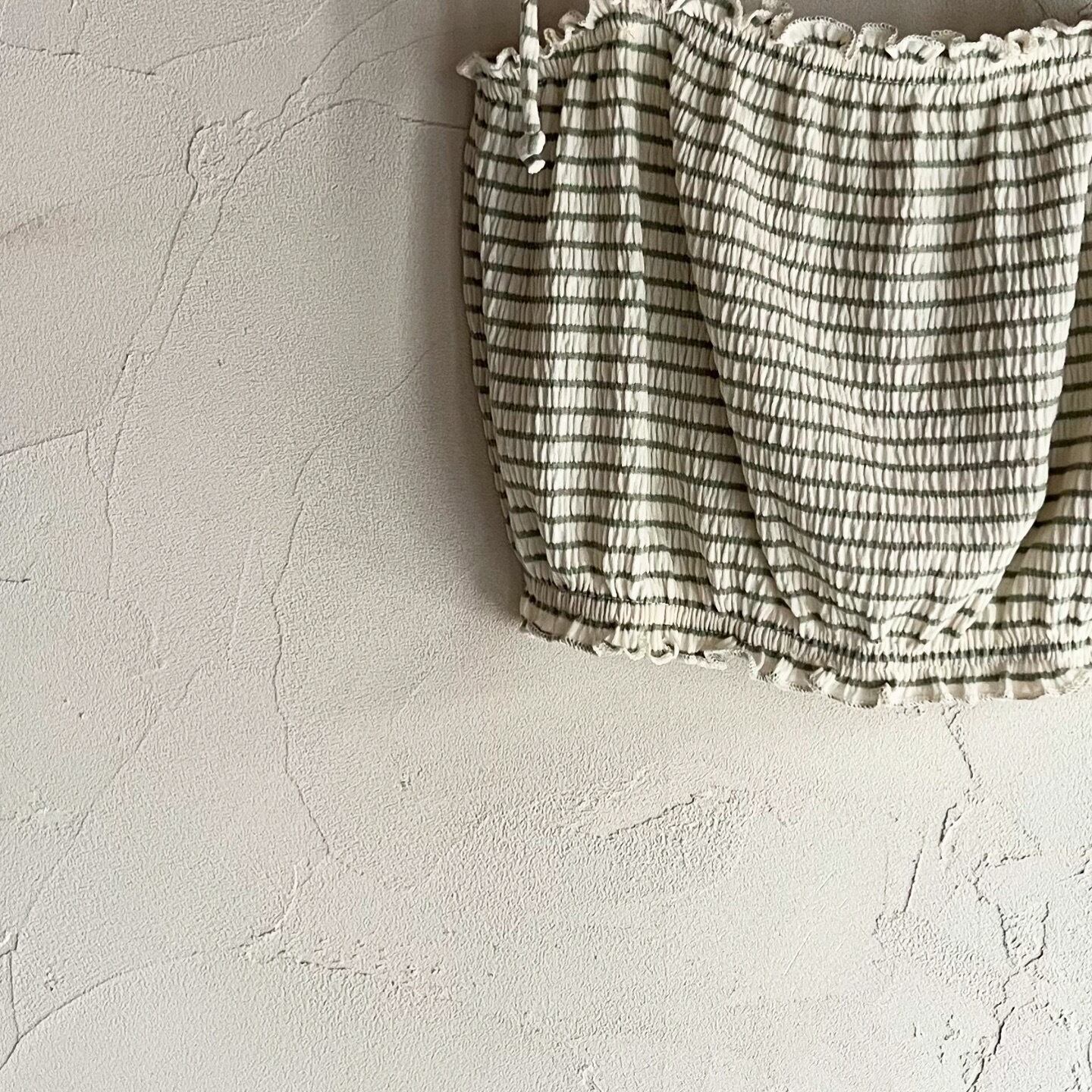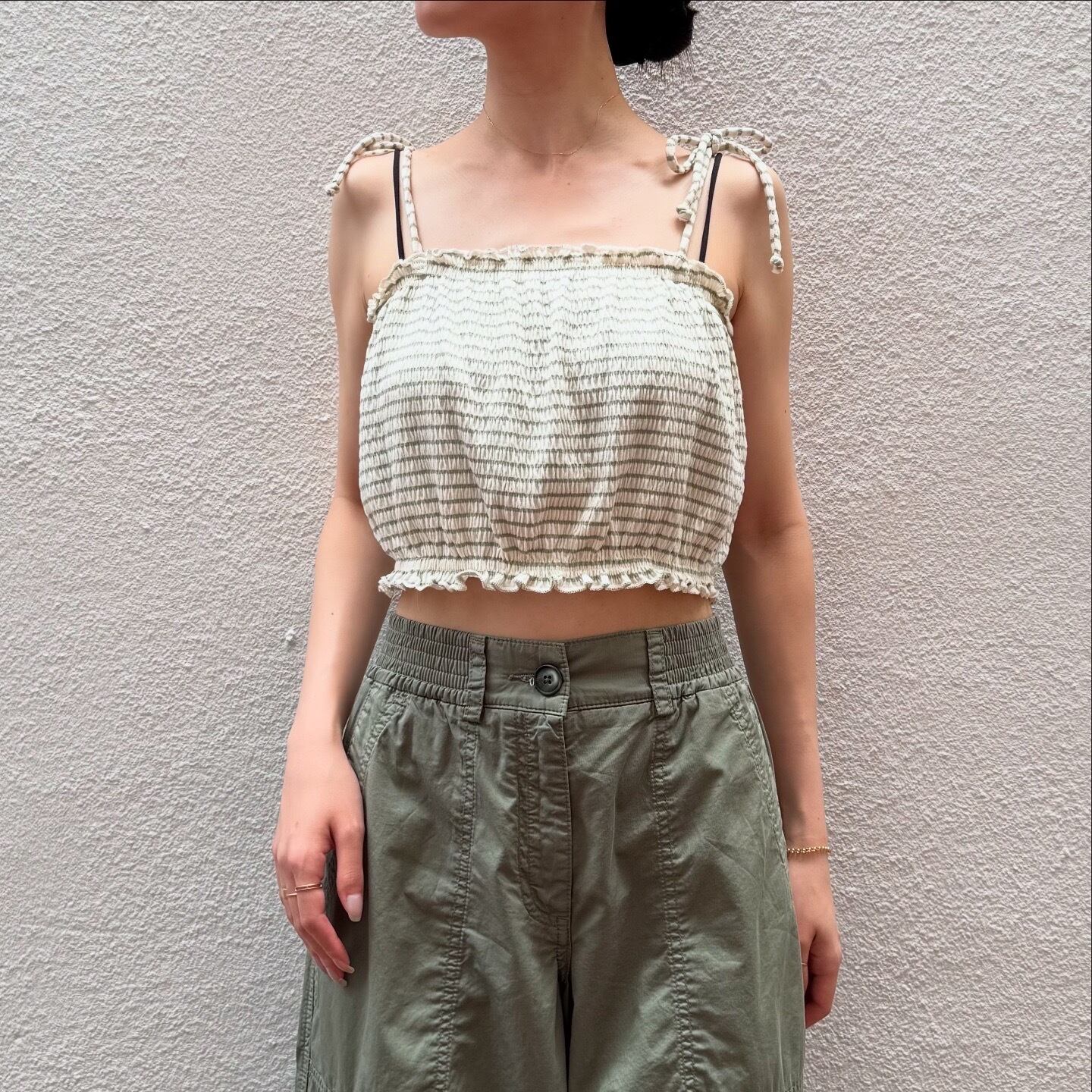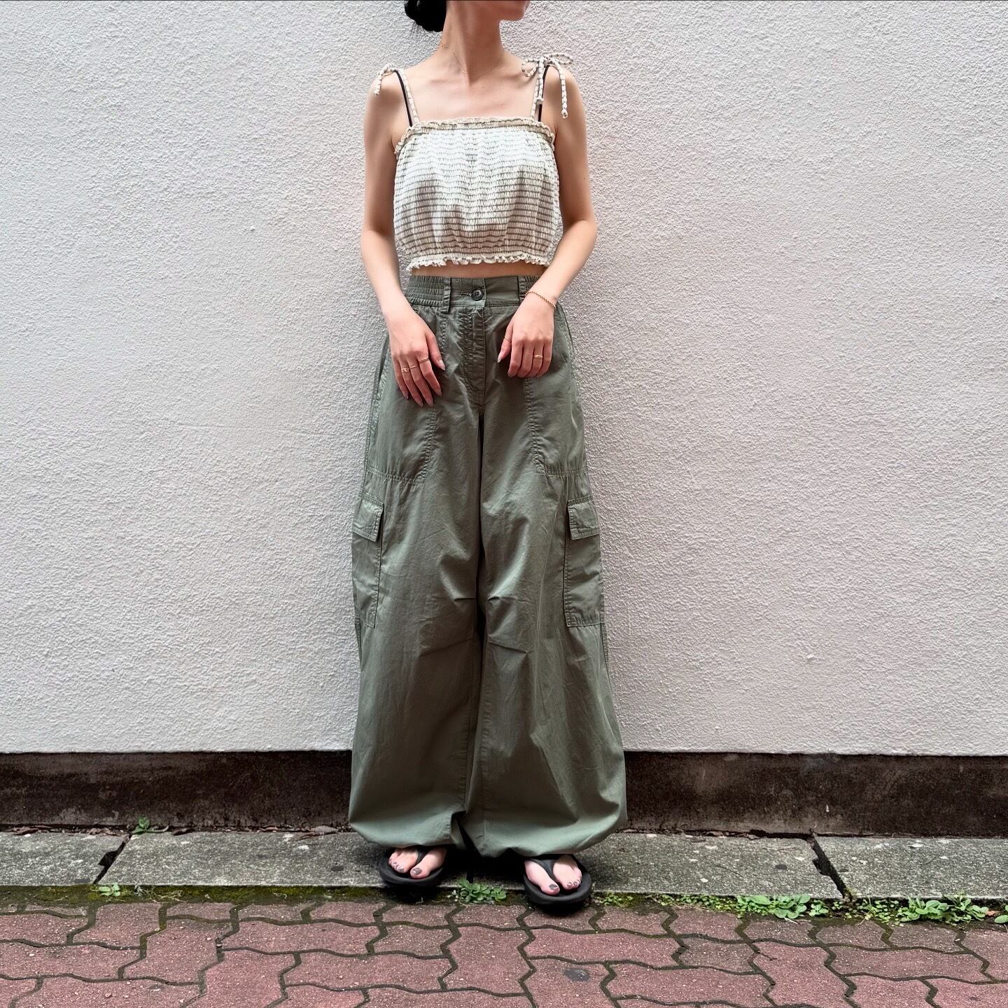 淡い配色や肩紐のリボンが夏らしいキャミソールです。