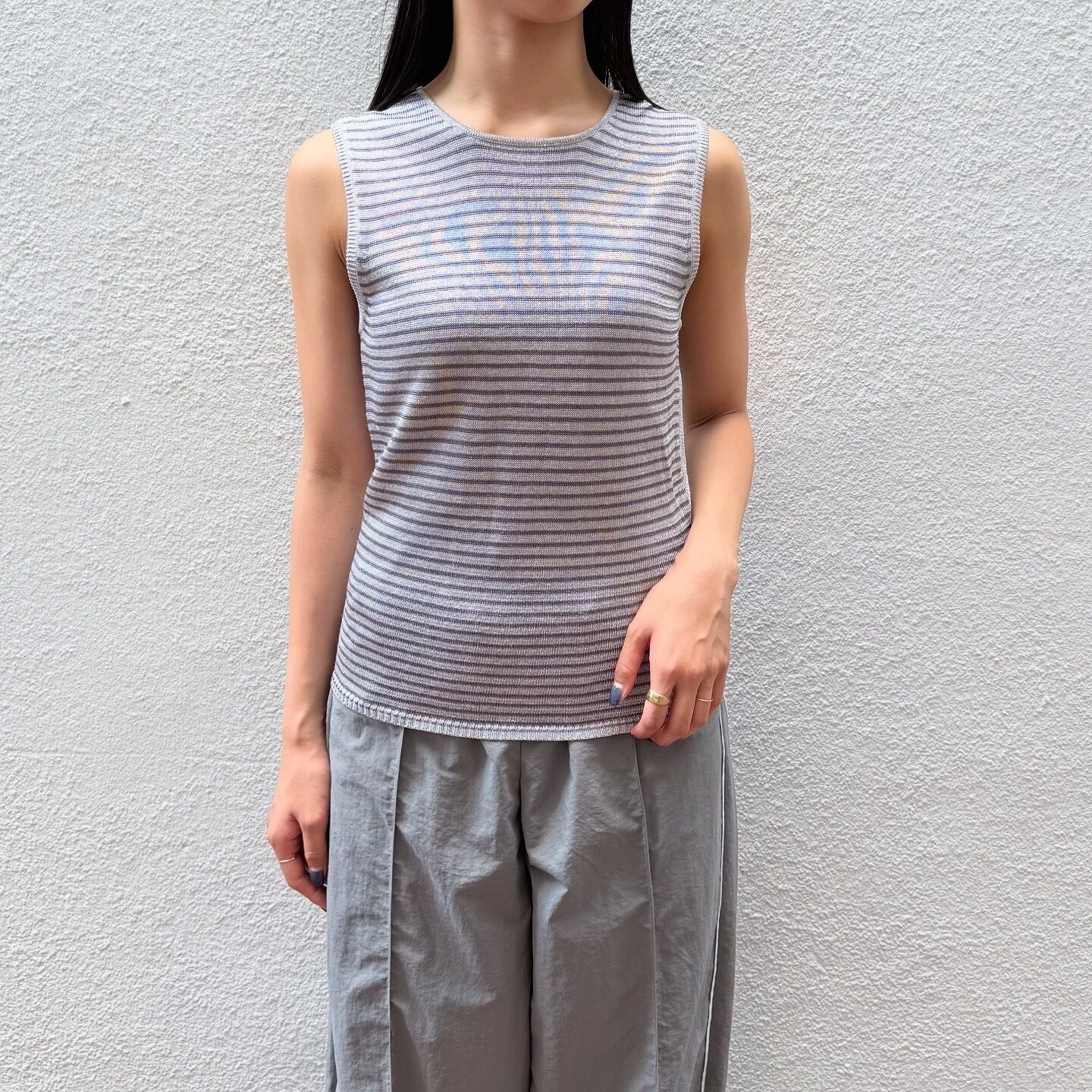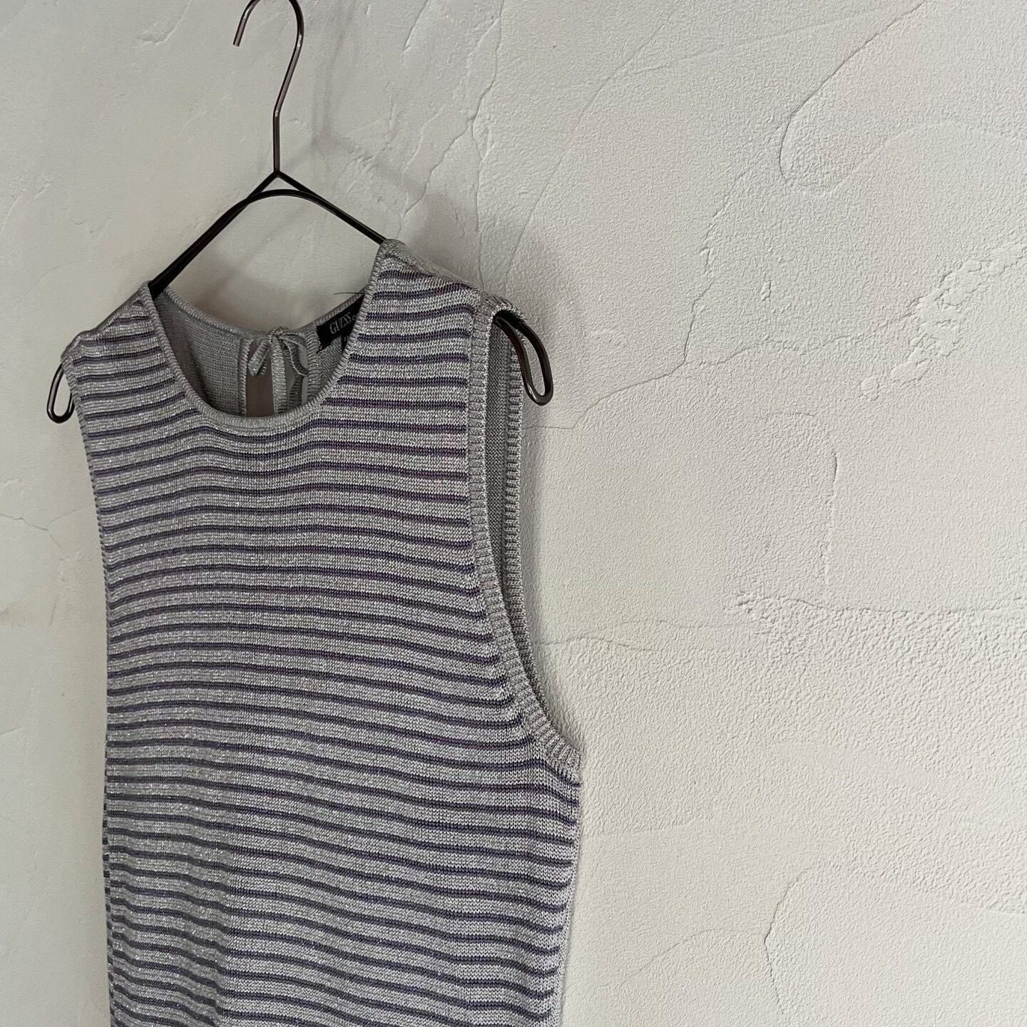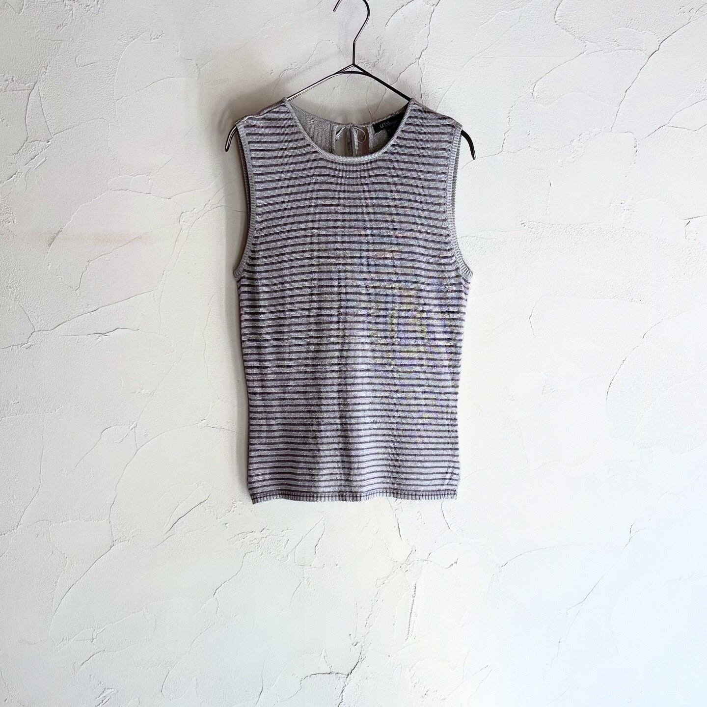 グレーに細めのパープルのボーダーがお洒落なトップスです。