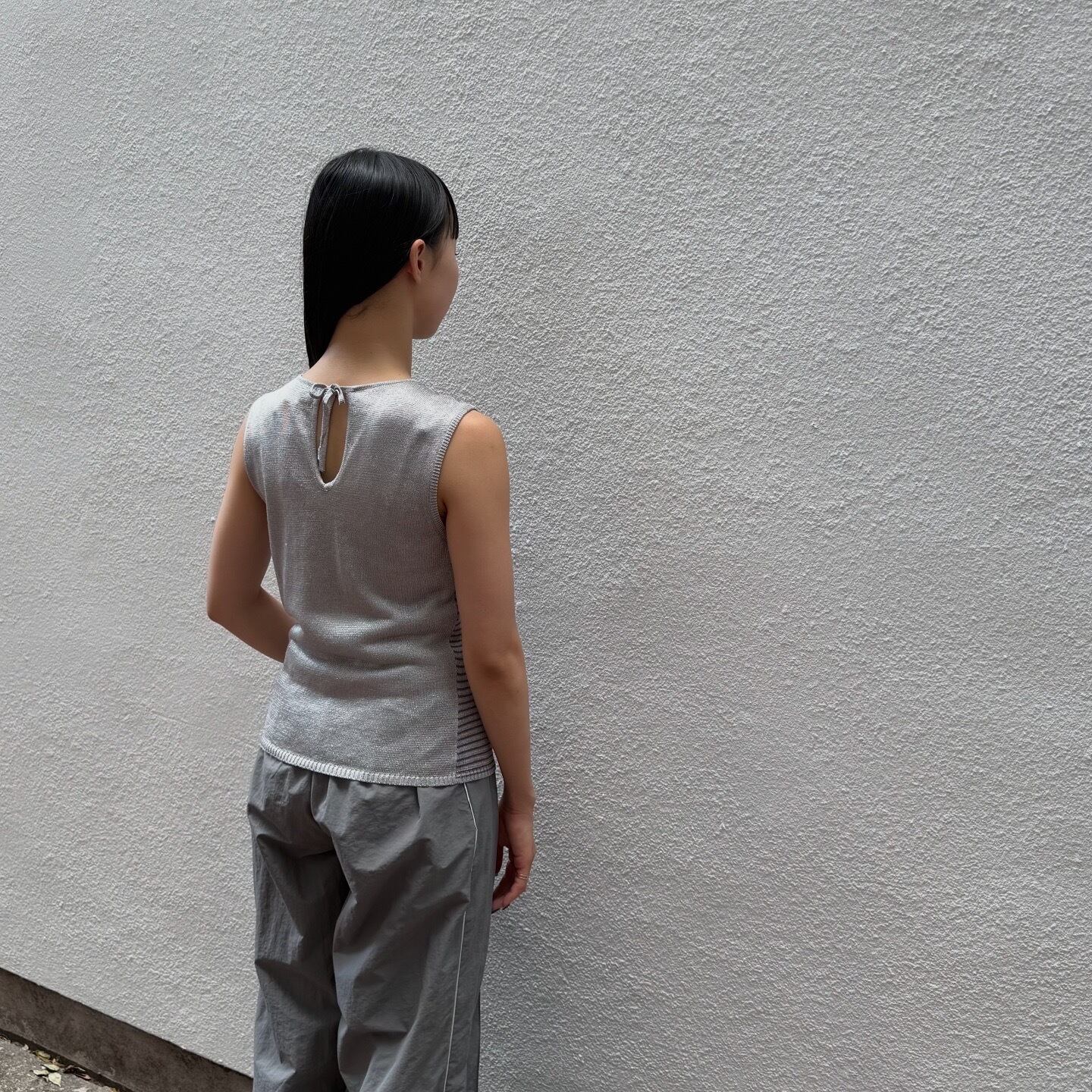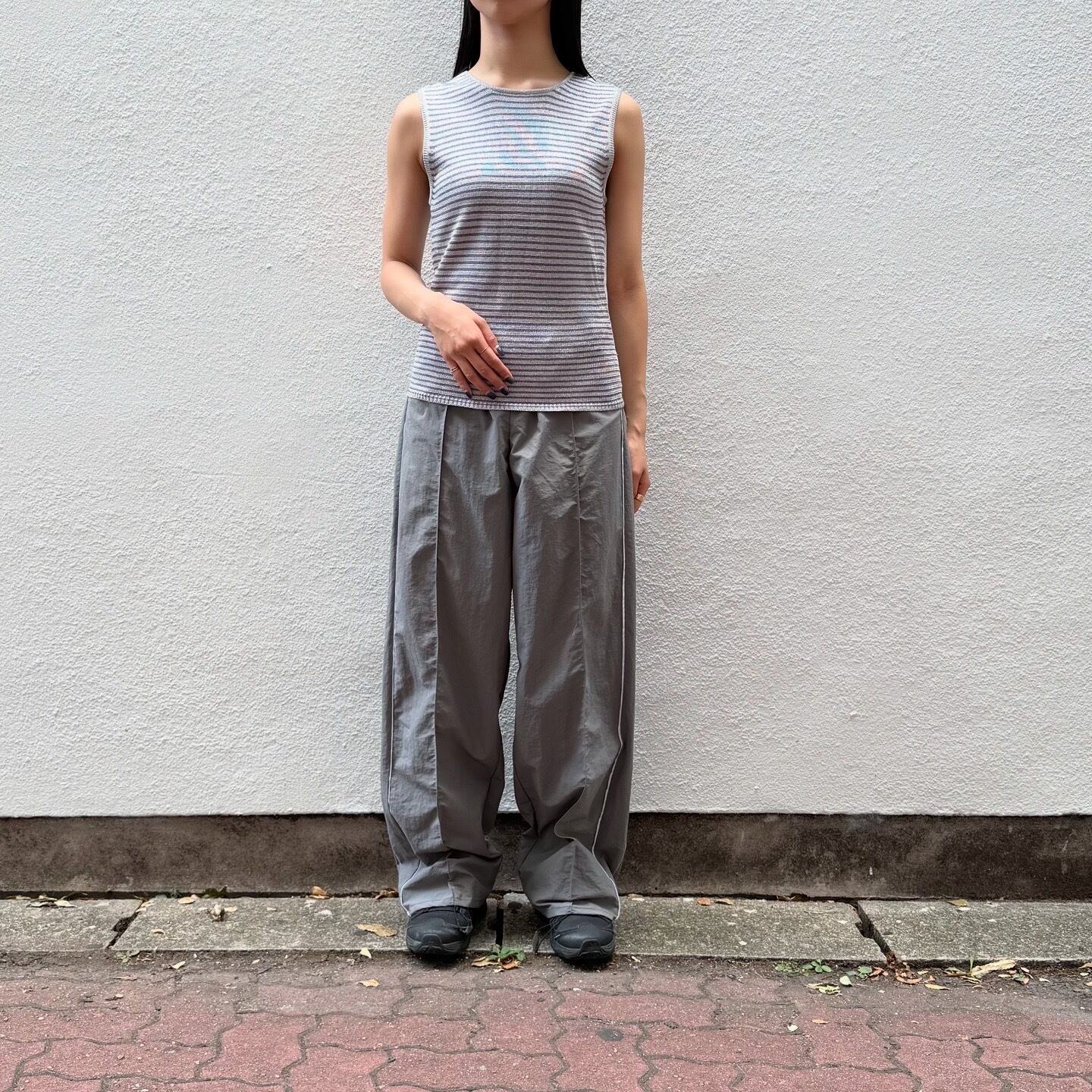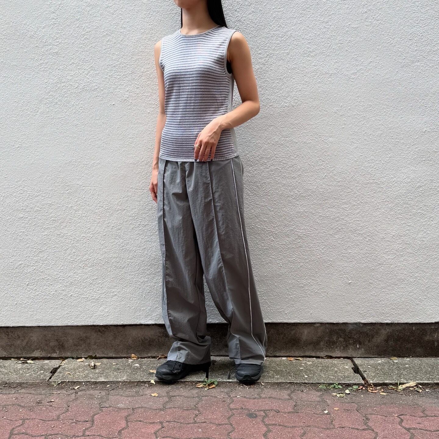 グレーに細めのパープルのボーダーがお洒落なトップスです。
