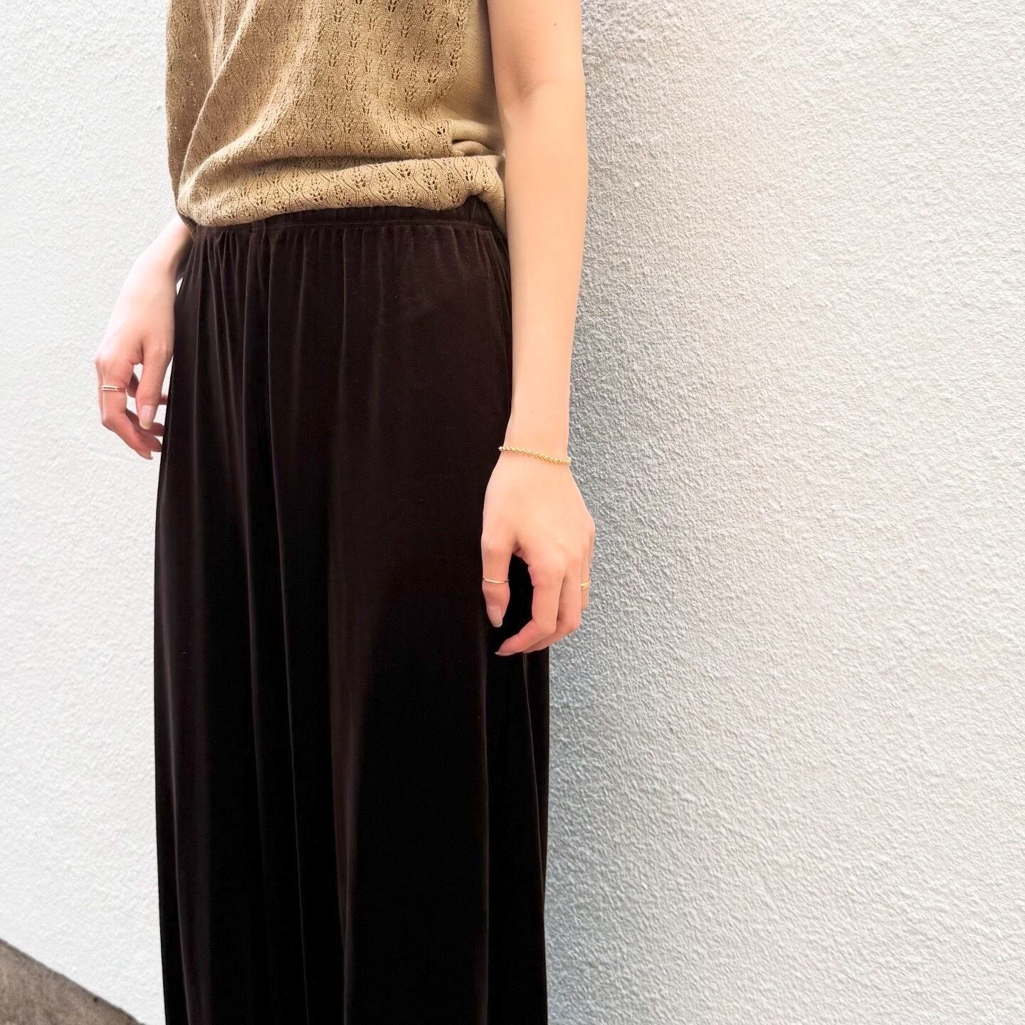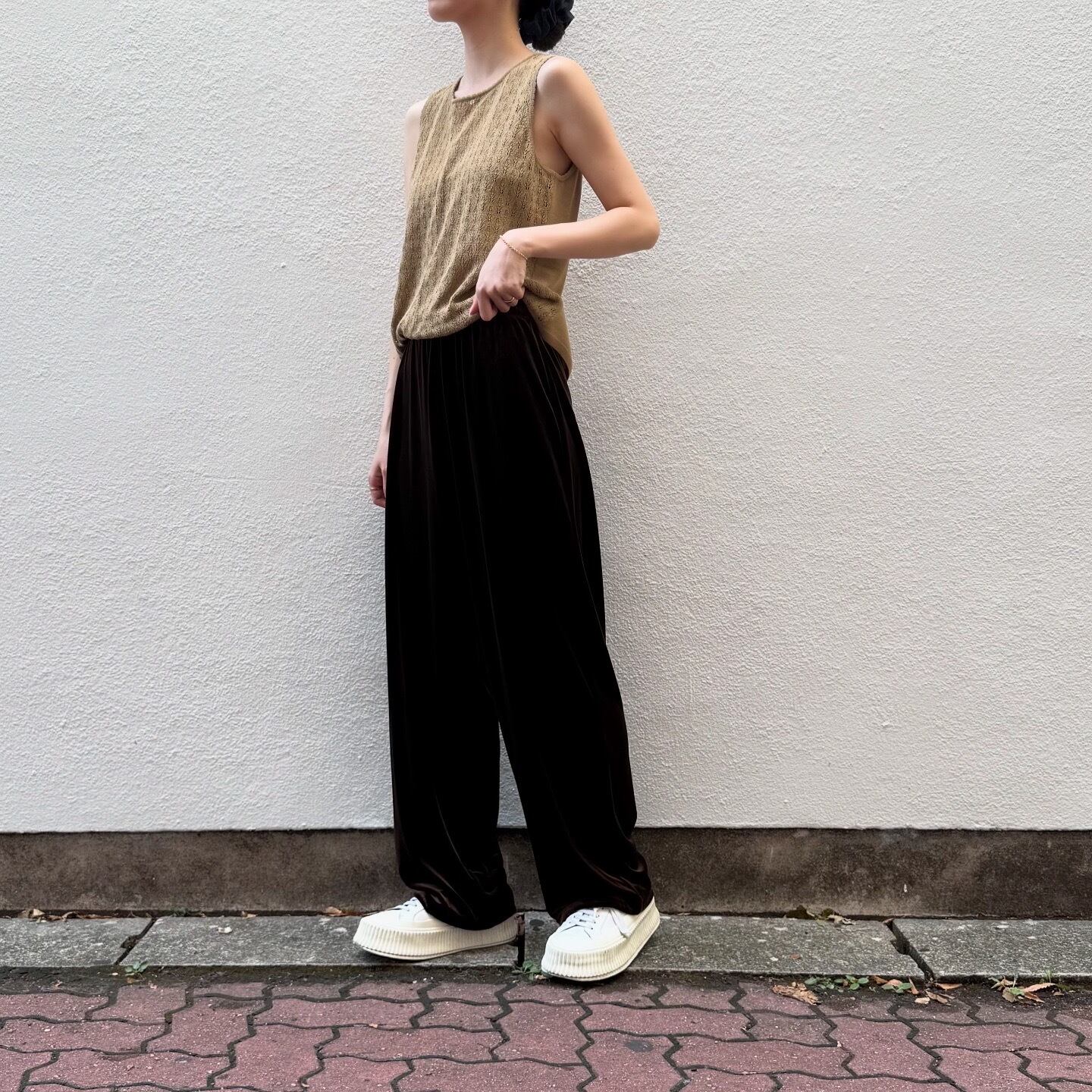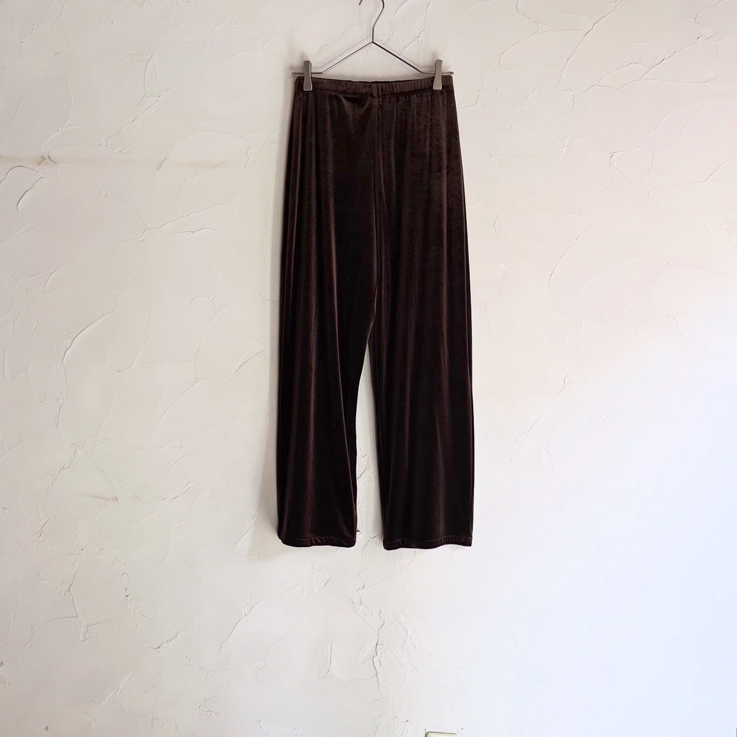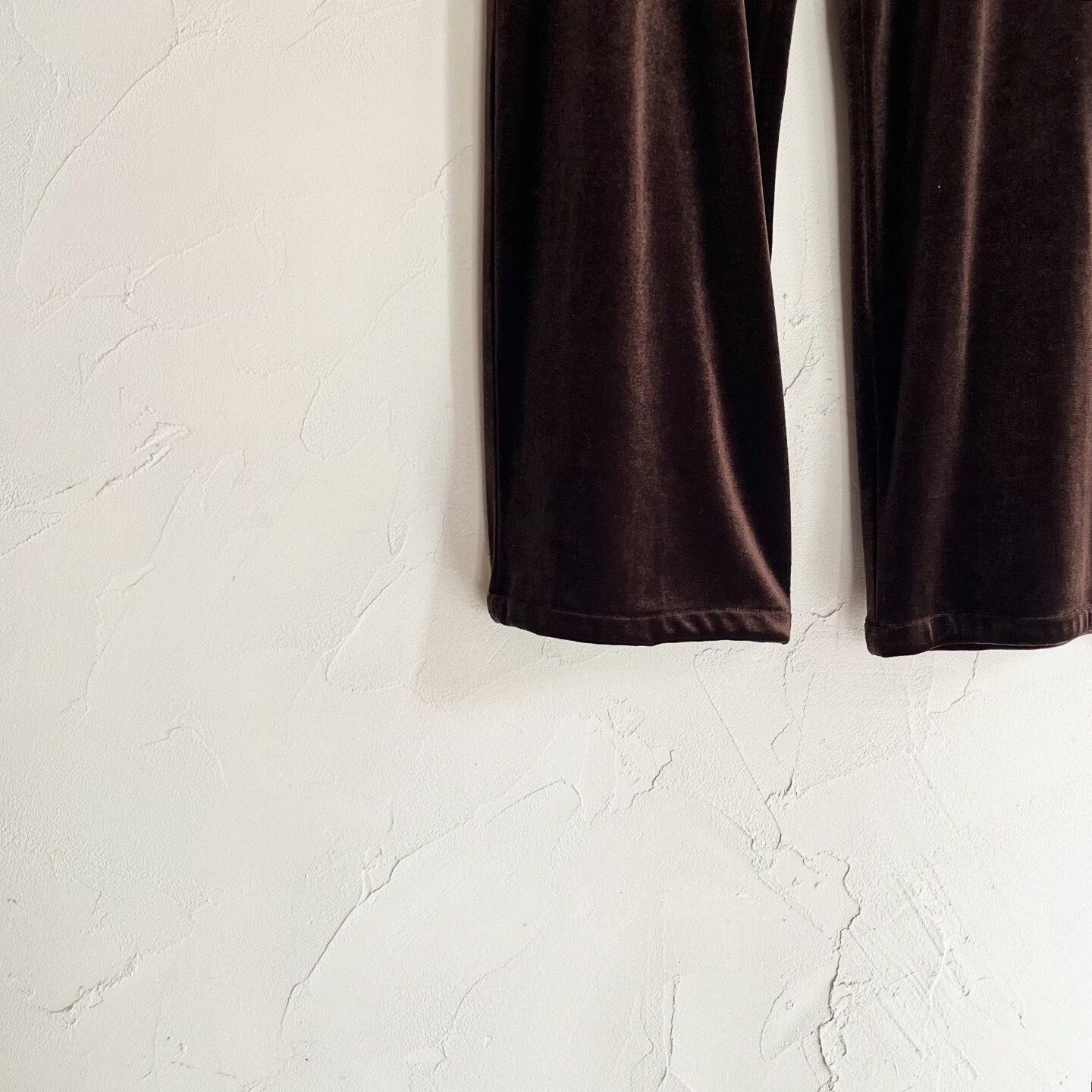ブラウンのベロアの光沢が美しいパンツです。