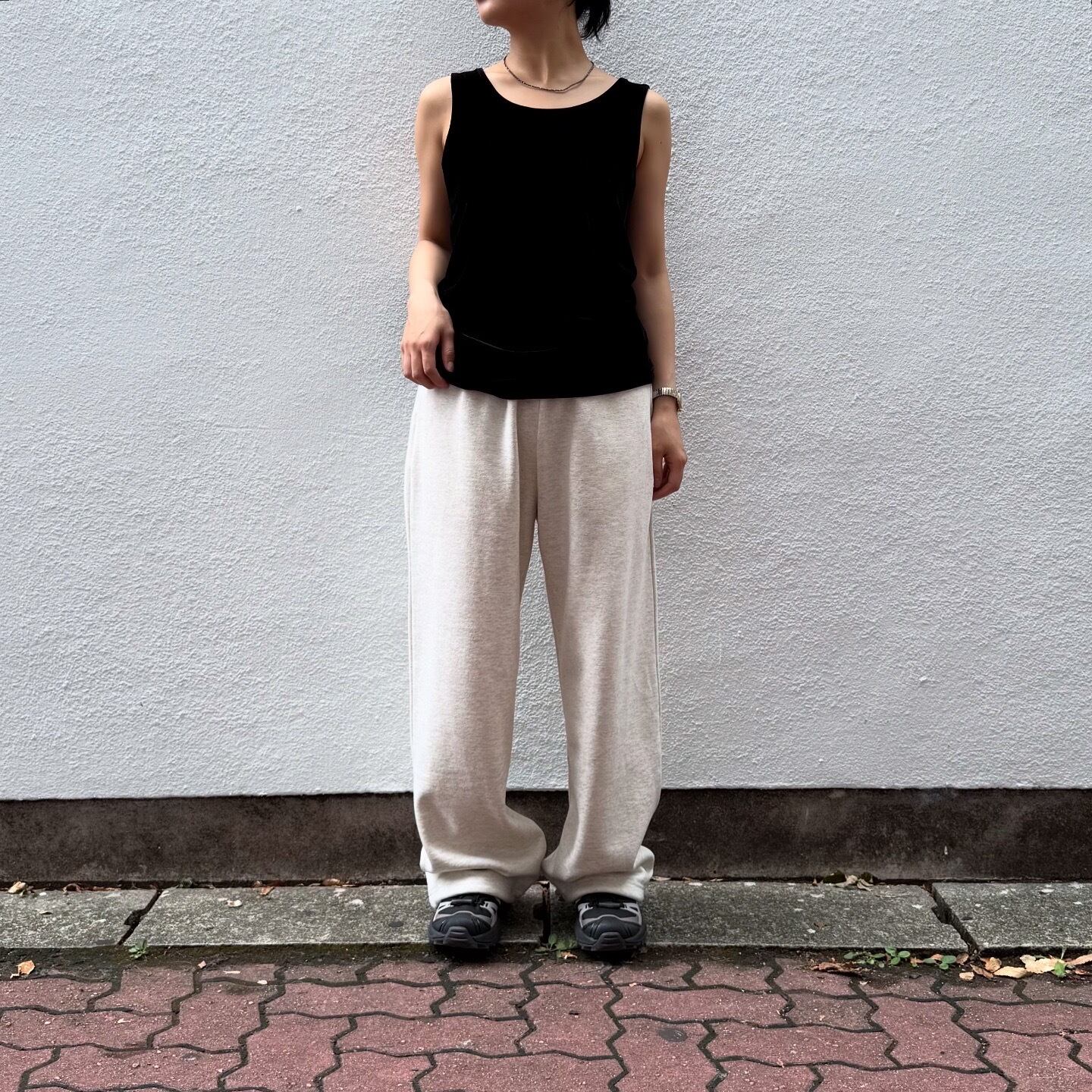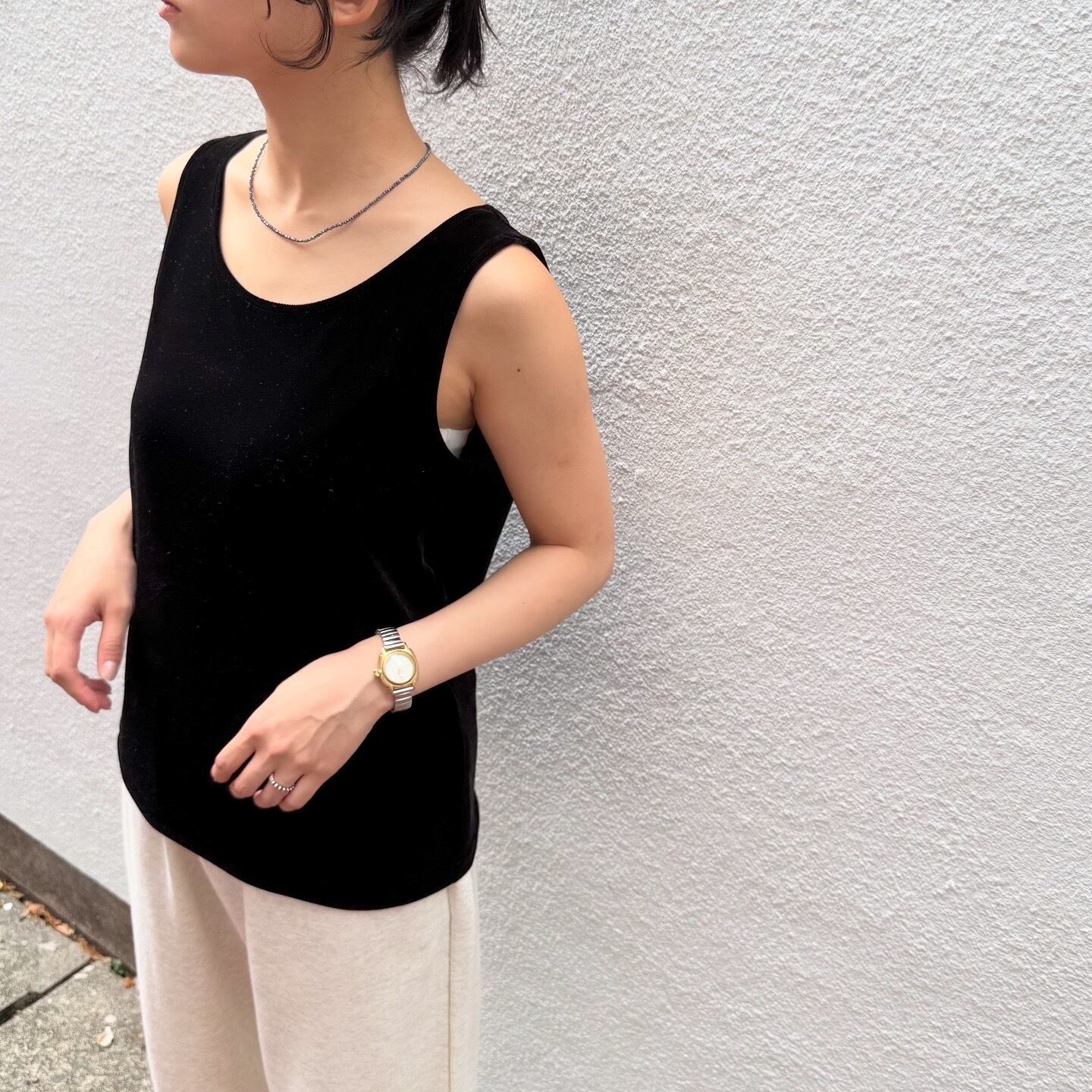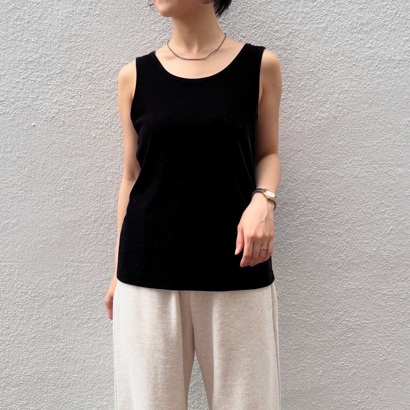 動きに合わせて光沢の出るベロアのタンクトップです。