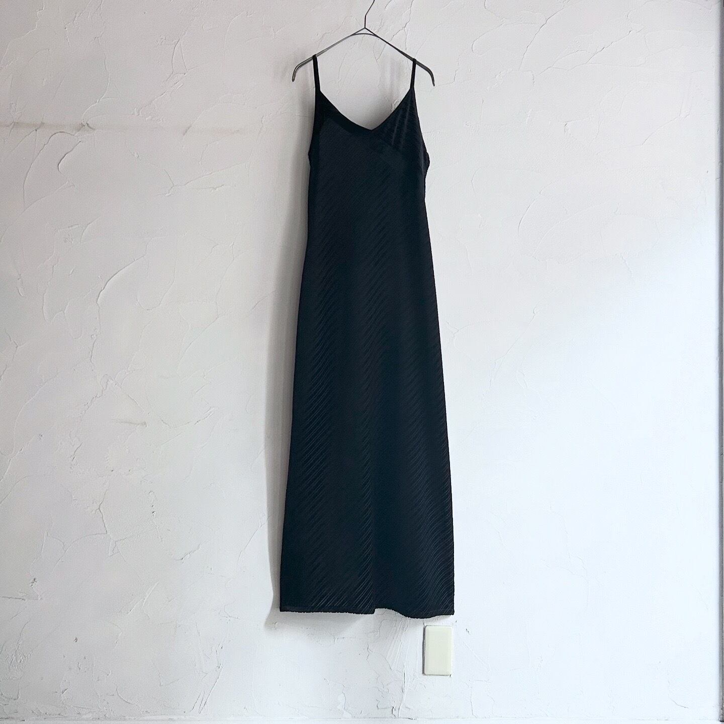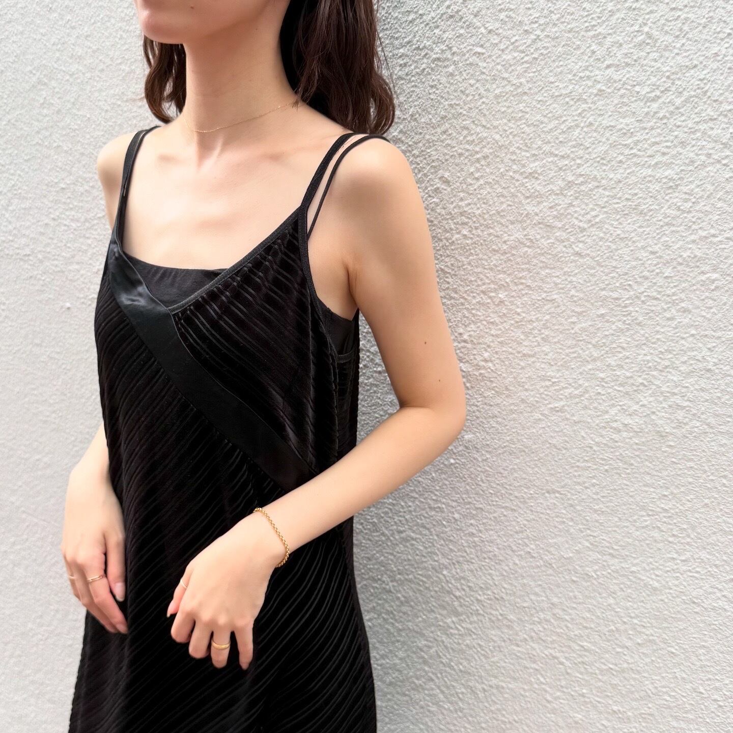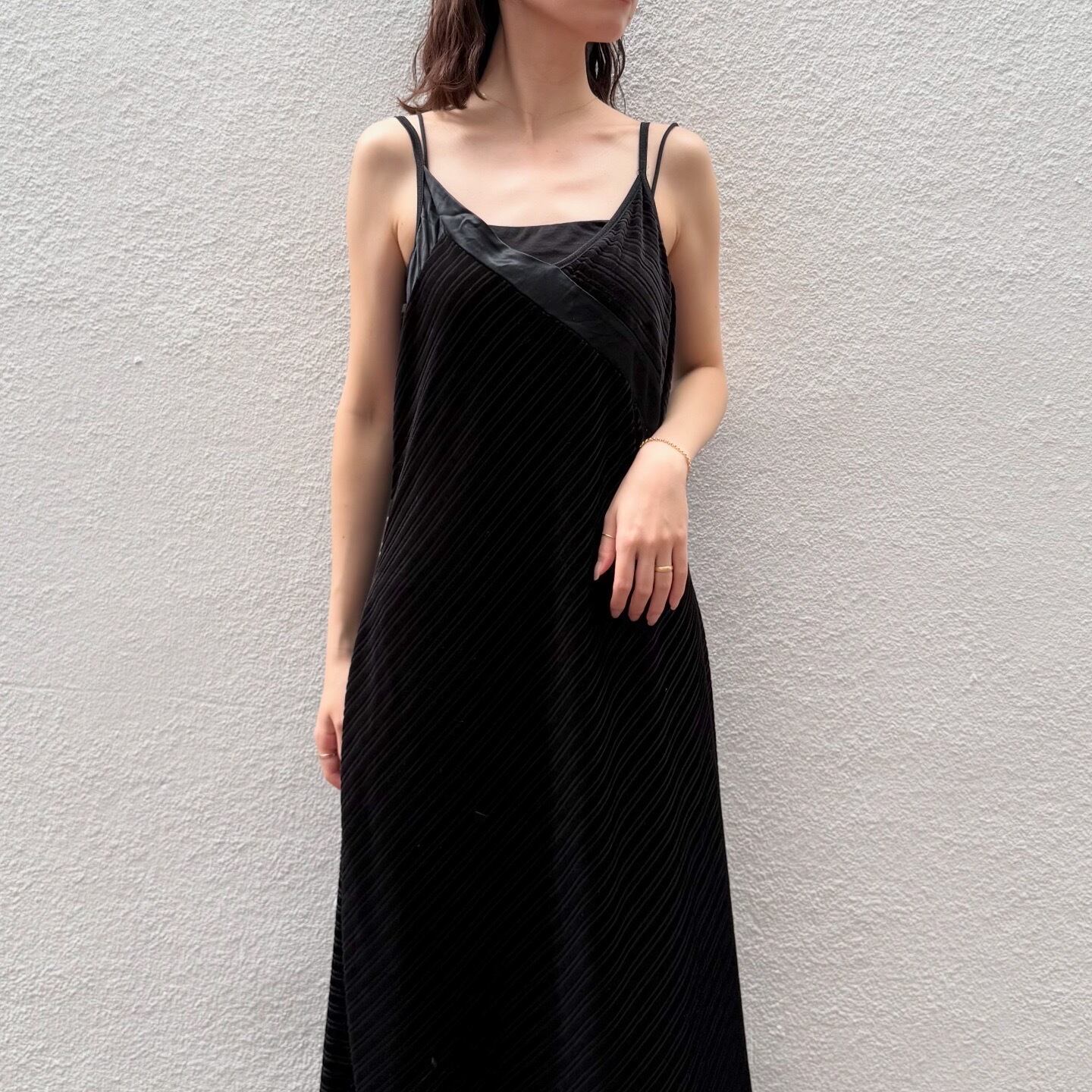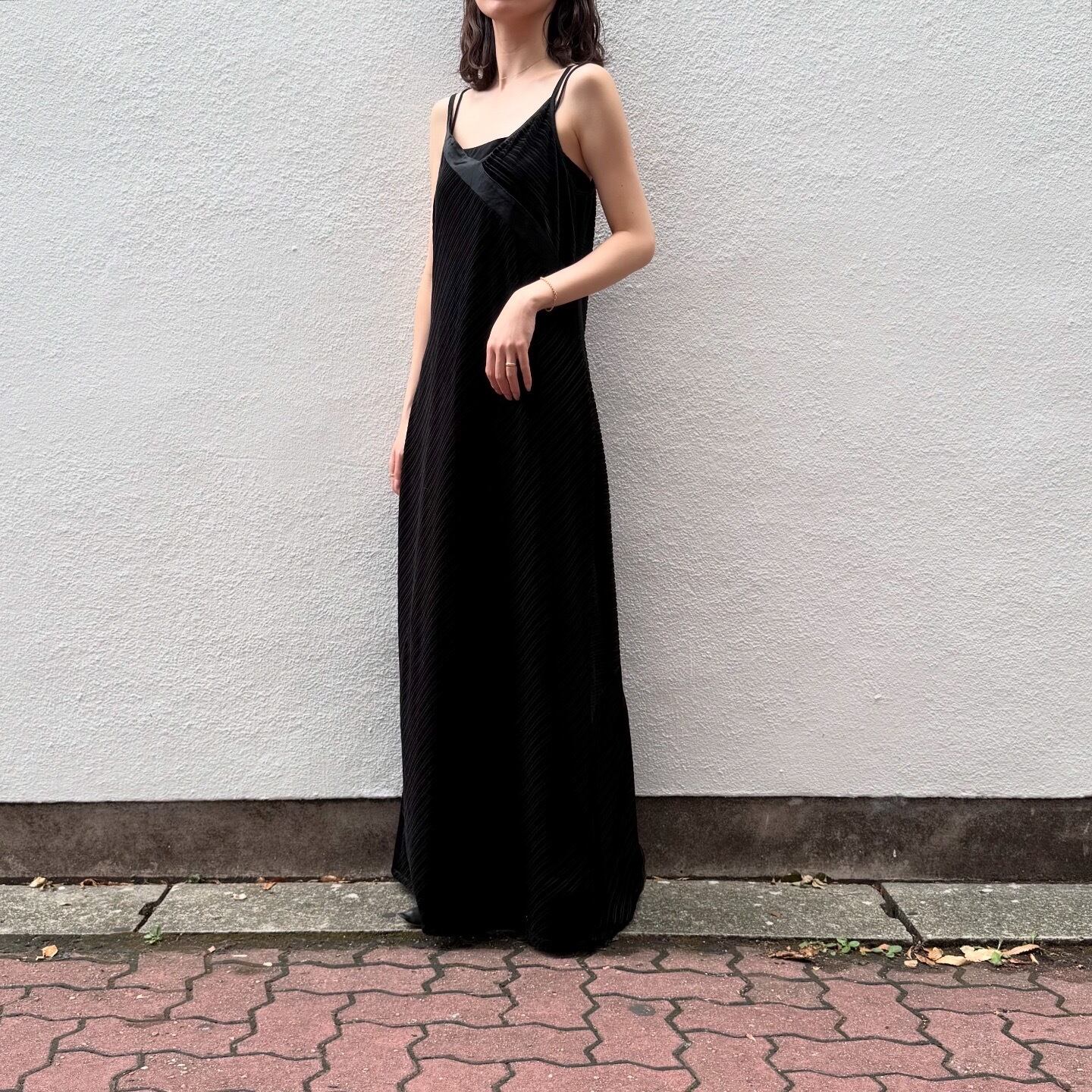 アシンメトリーなデザインが美しいベロア素材のキャミワンピースです。