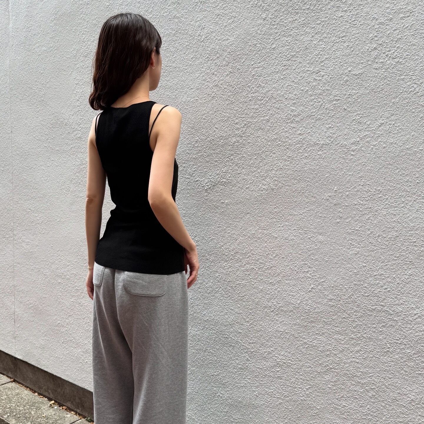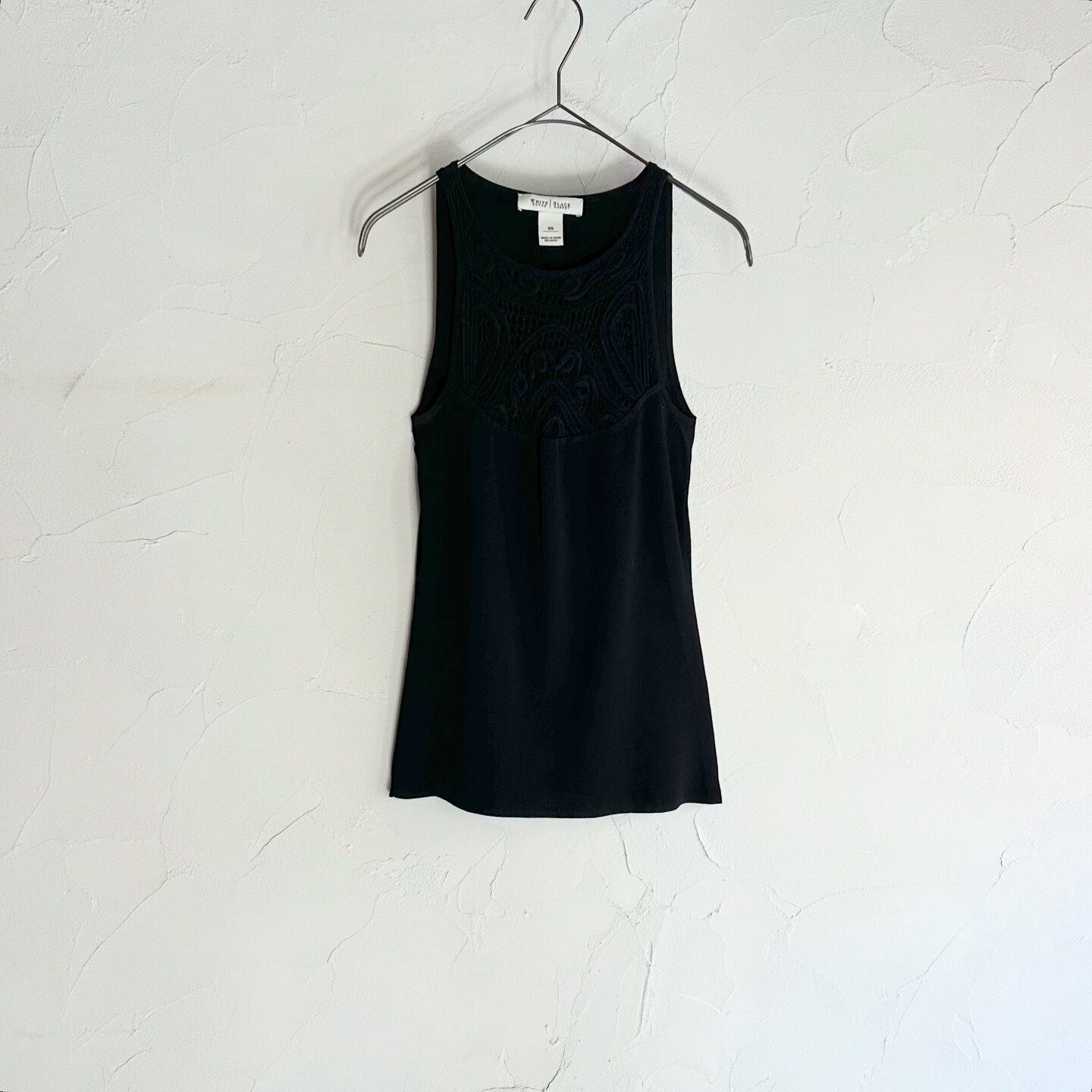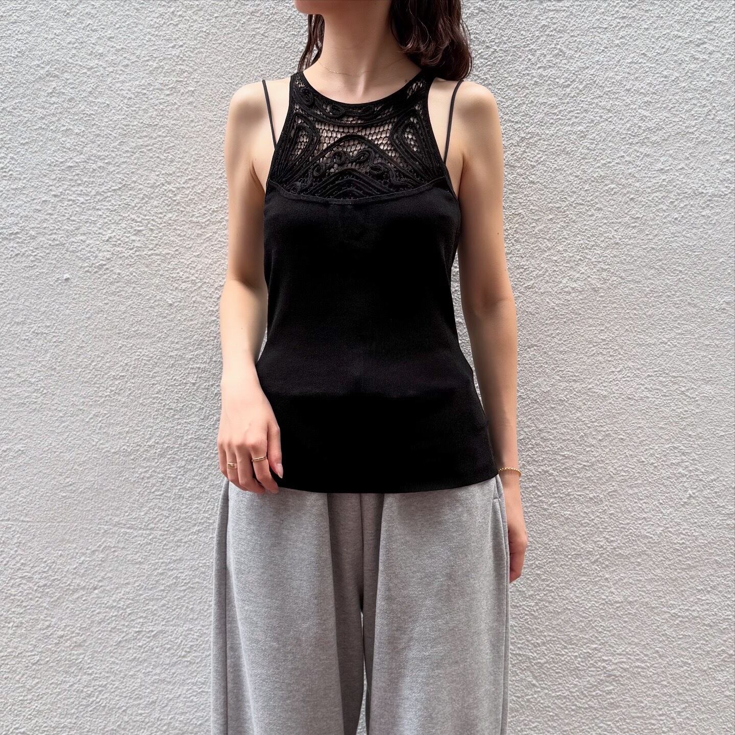フロントの鍵編みのデザインが可愛いノースリーブトップスです。