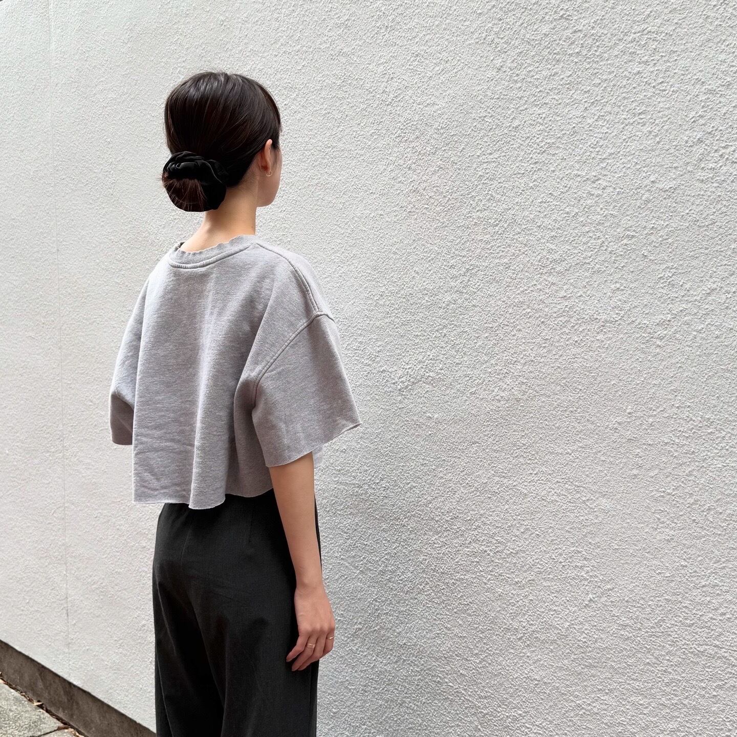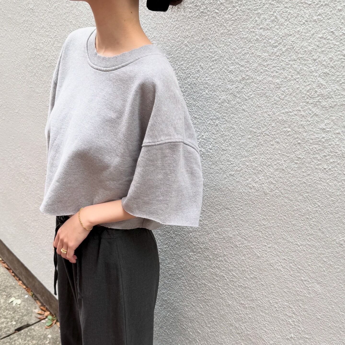 袖と裾を切りっぱなしでリメイクした半袖スウェットです。