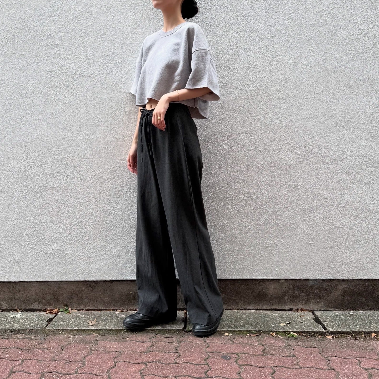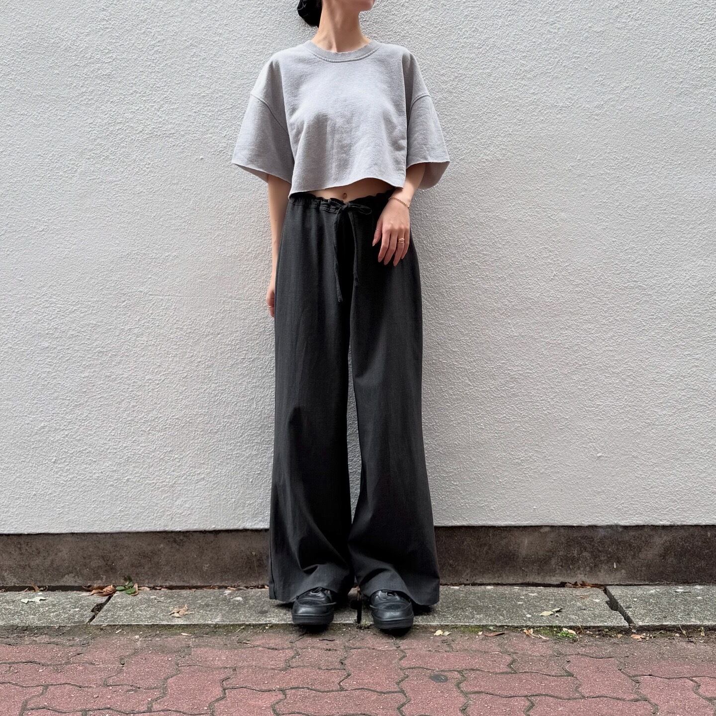 着丈は短めですが、肩周りはゆとりがあり、ゆったりと着られる一枚です。