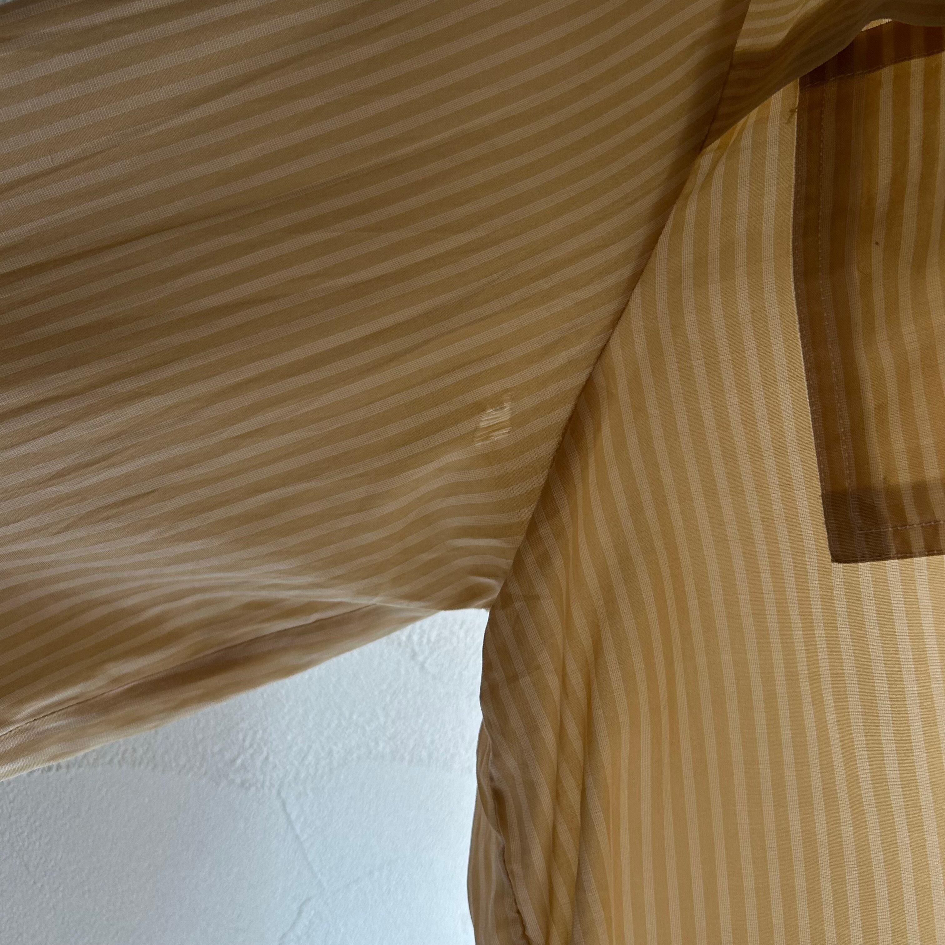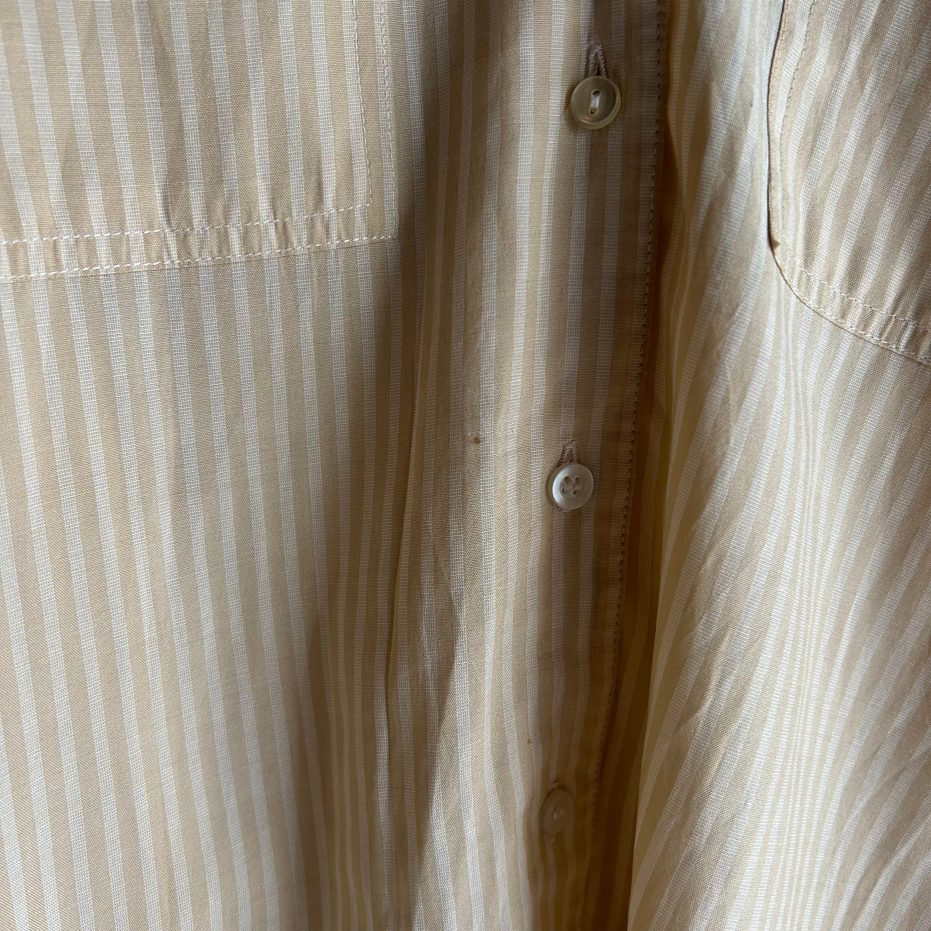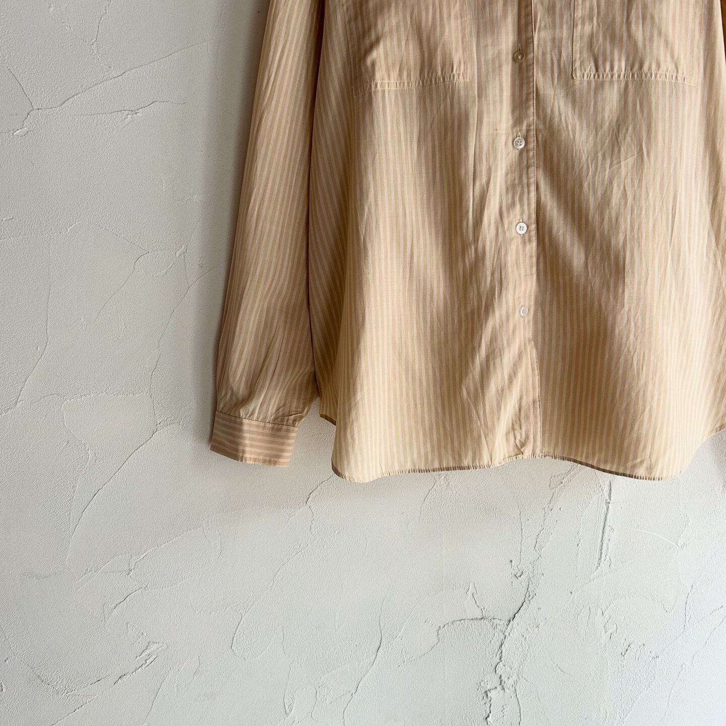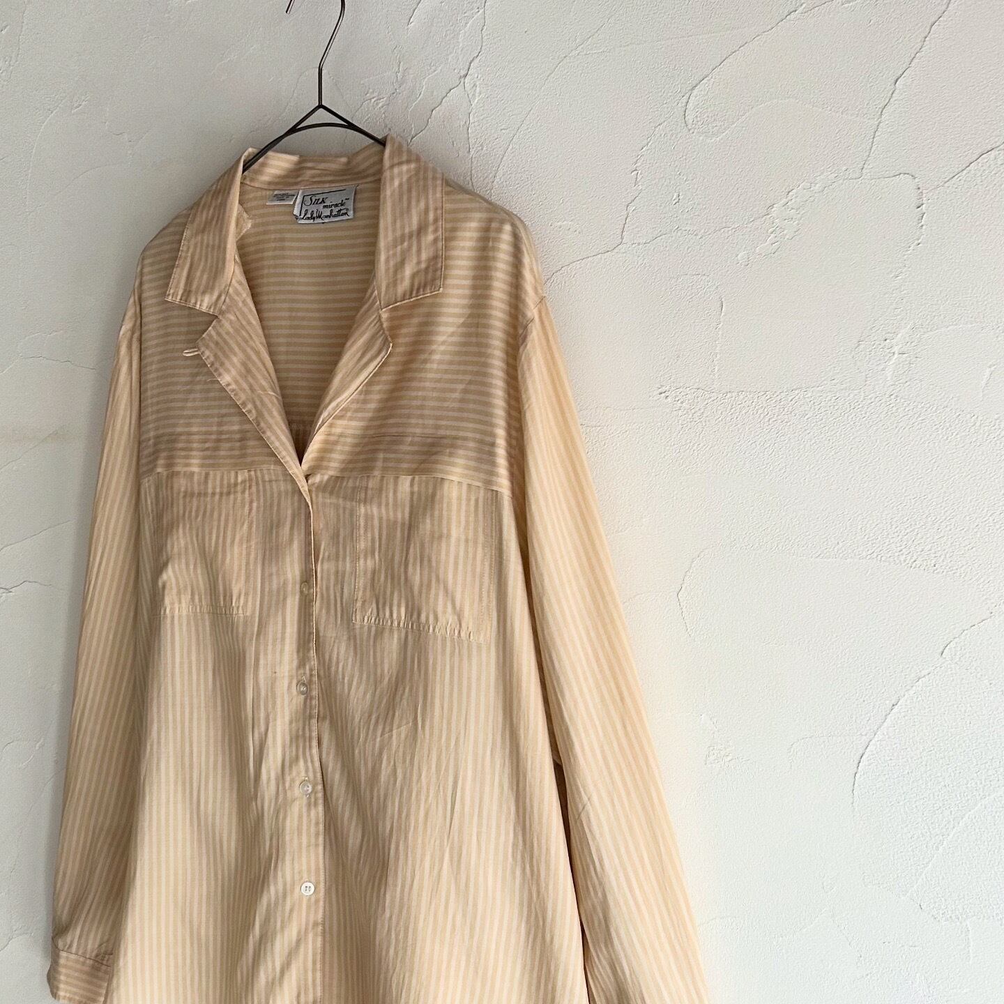 ストライプの切返しが可愛いパジャマのようなシルクシャツです。