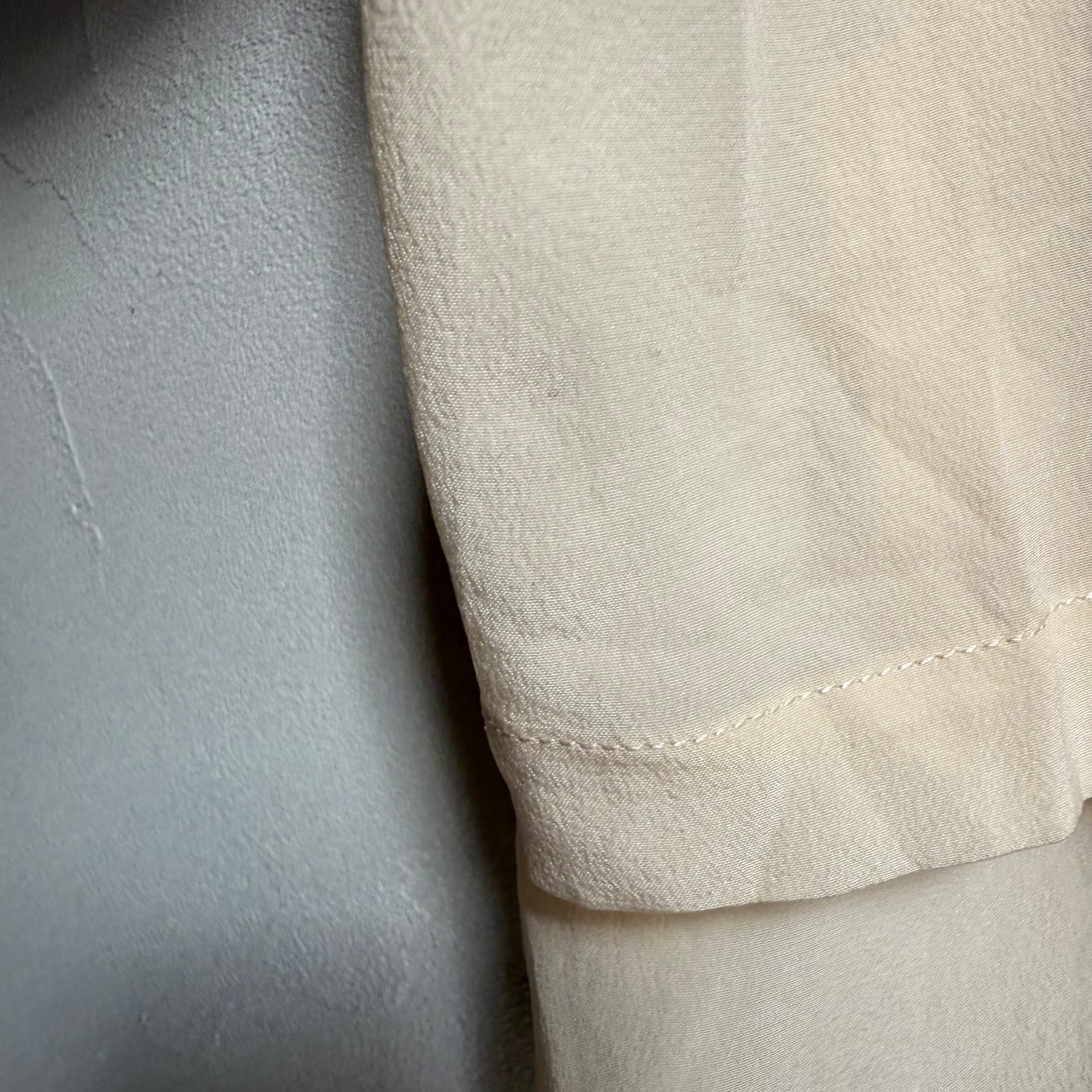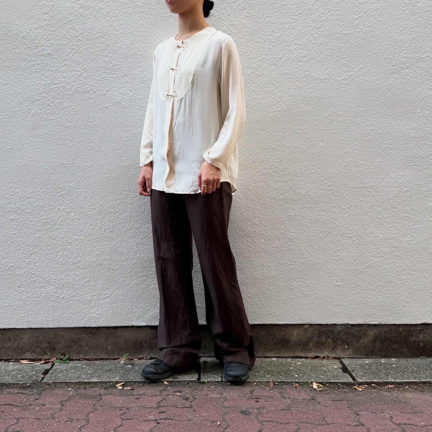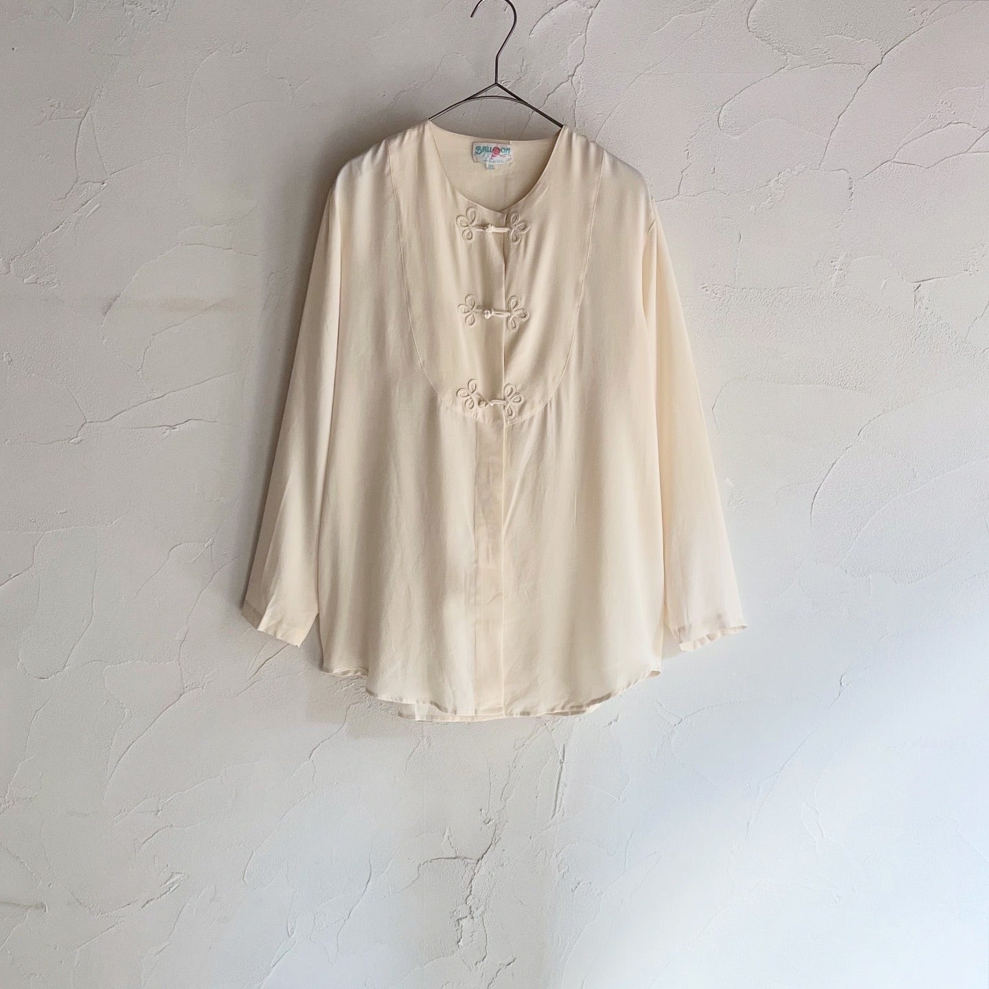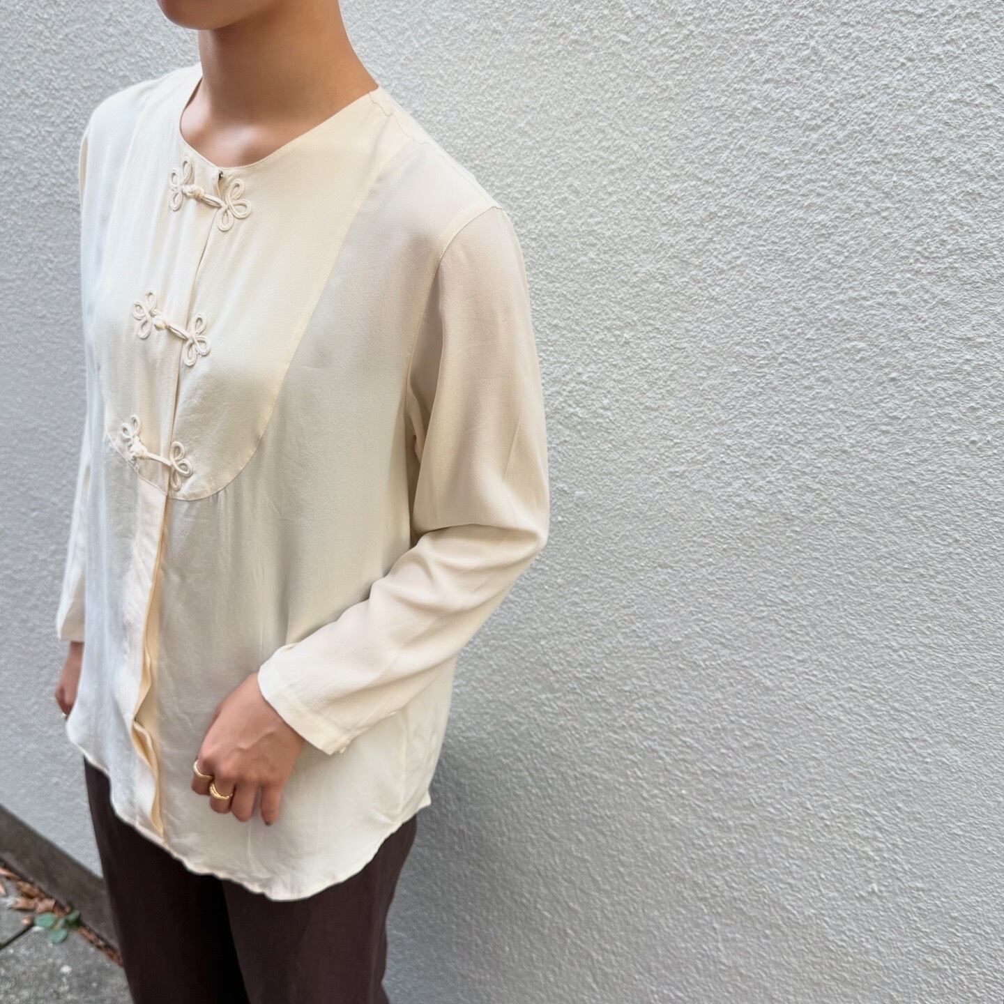100%シルクのさらっとマットな生地感が品のあるシャツです。存在感のあるチャイナボタンがポイントです。