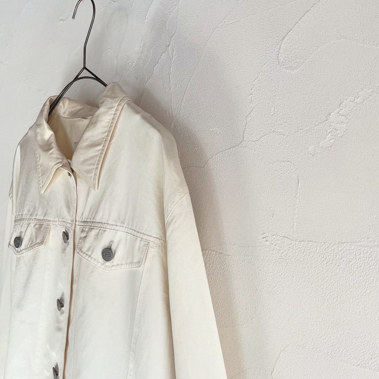 程よく光沢のあるハリのある生地感が美しいジャケットです。