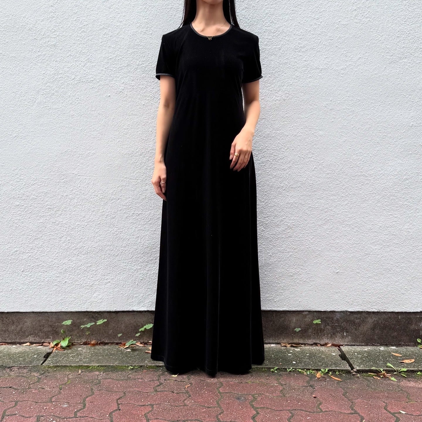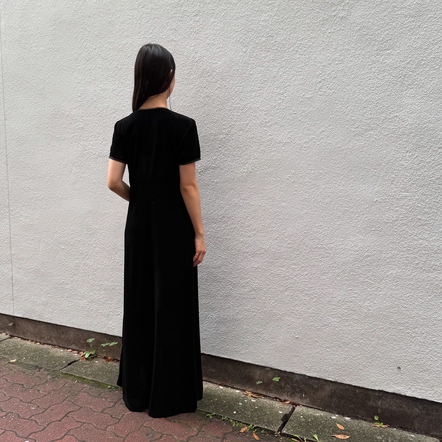 切り返しの位置が高くスタイルアップ効果のあるベロアワンピースです。