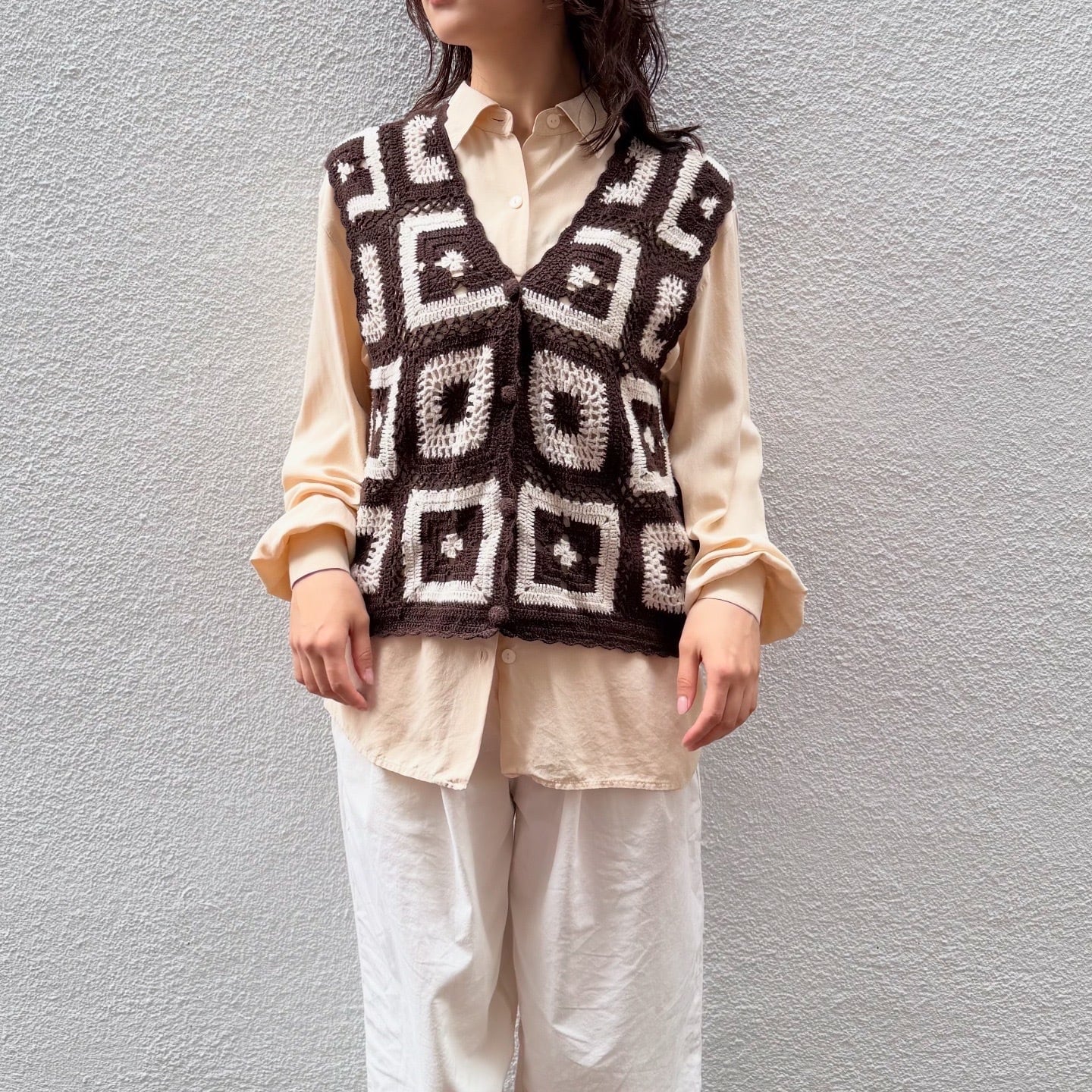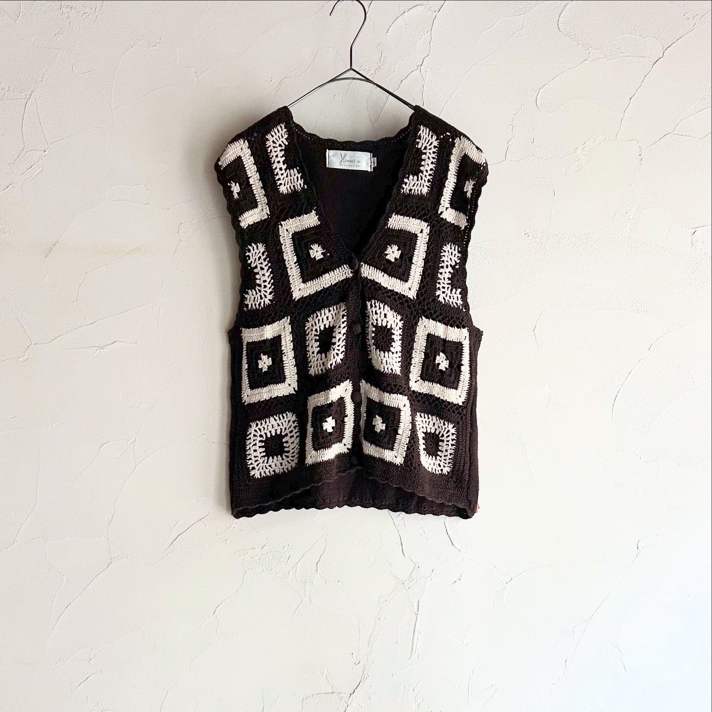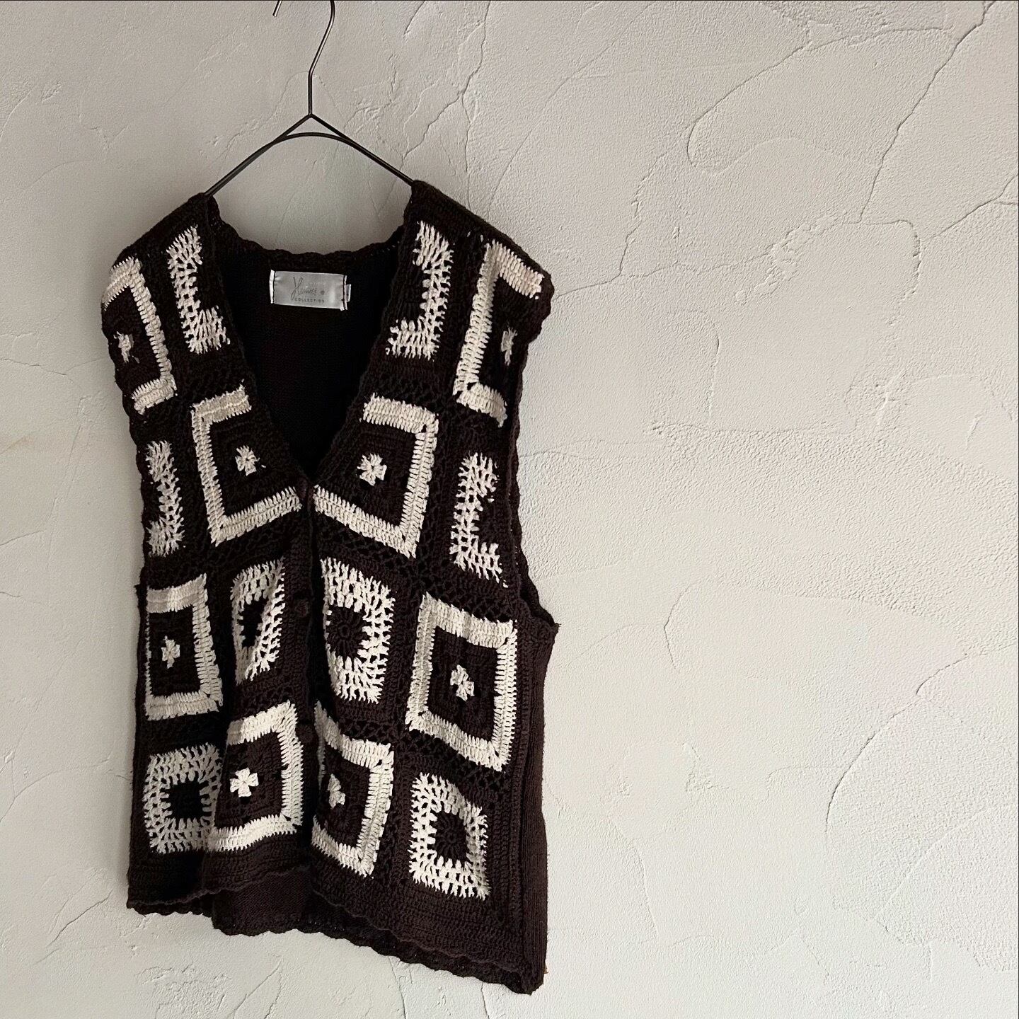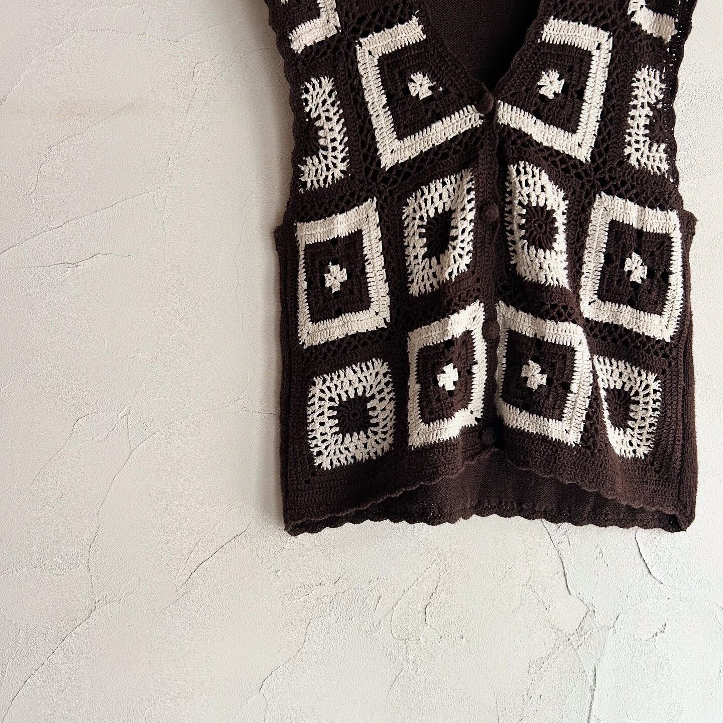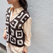 パターン編みがキュートなクロシェ編みベストです。