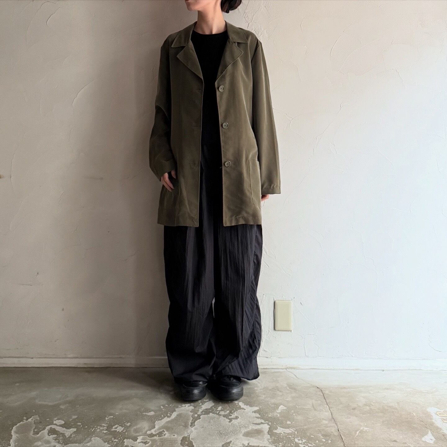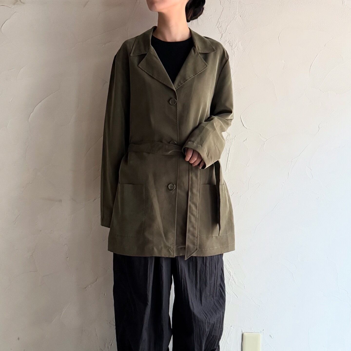 テロっとした生地感の膝丈シャツジャケットです。