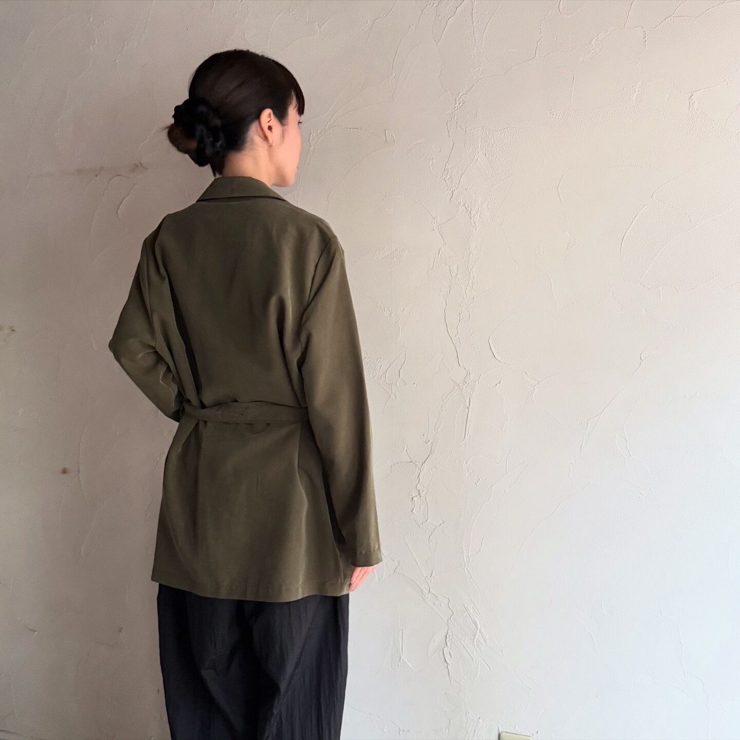 背面には腰紐がついているので、シルエットの変化を楽しんでいただけます。