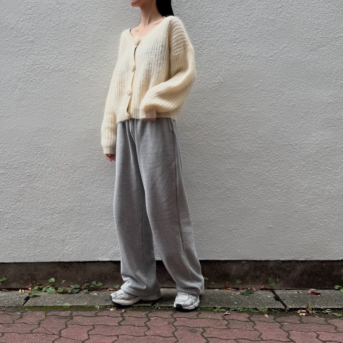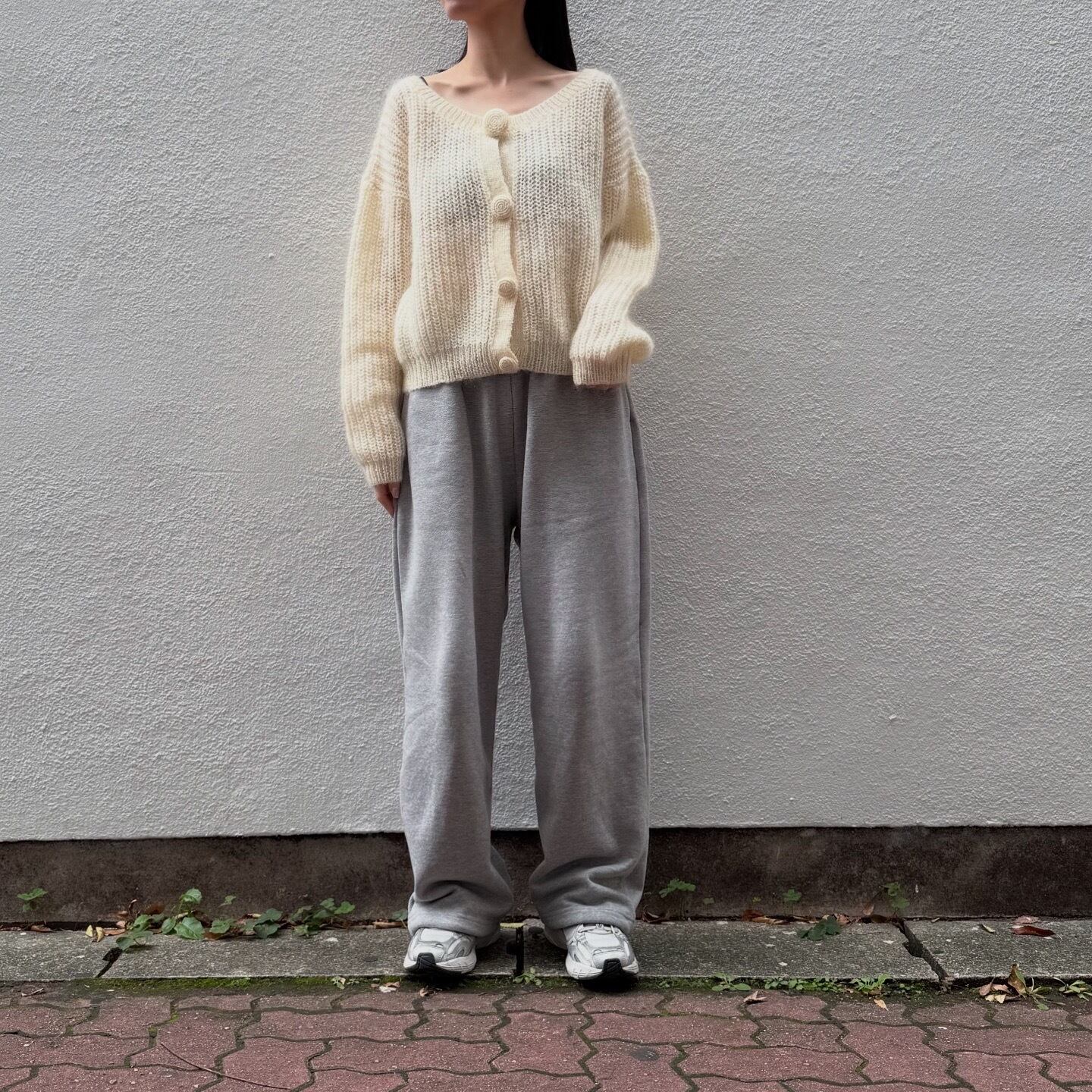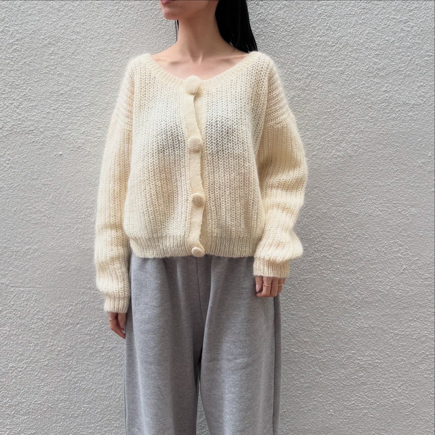 身幅の広いゆるっとシルエットが可愛いモヘアニットカーディガンです。