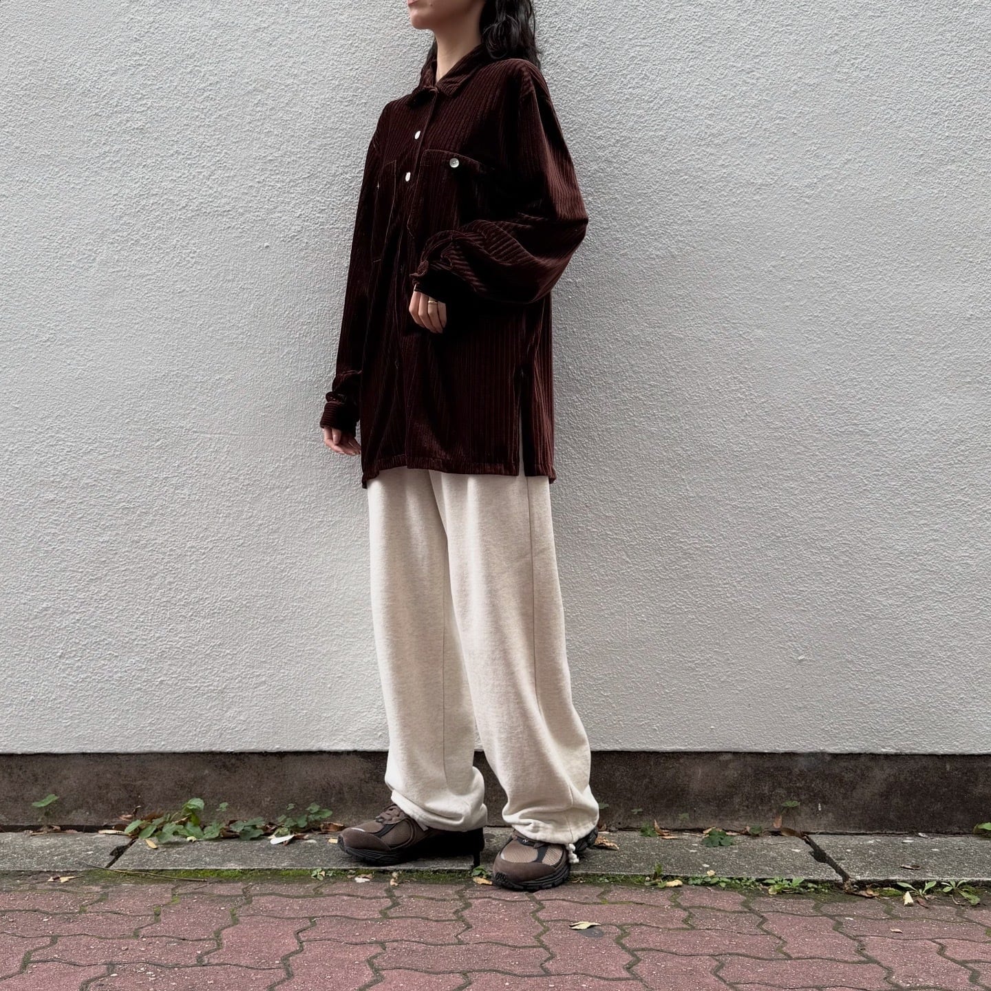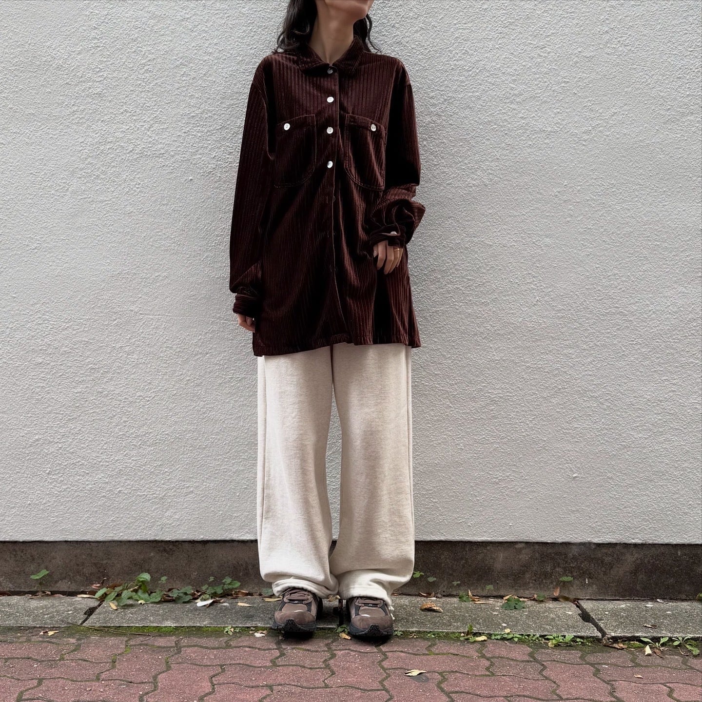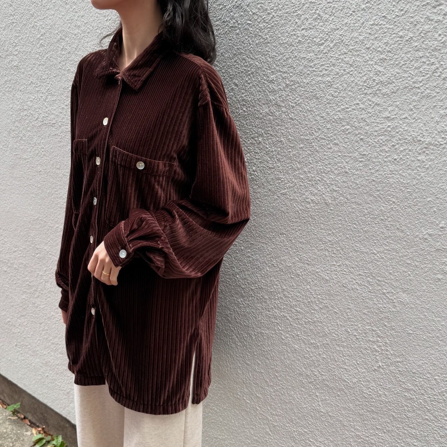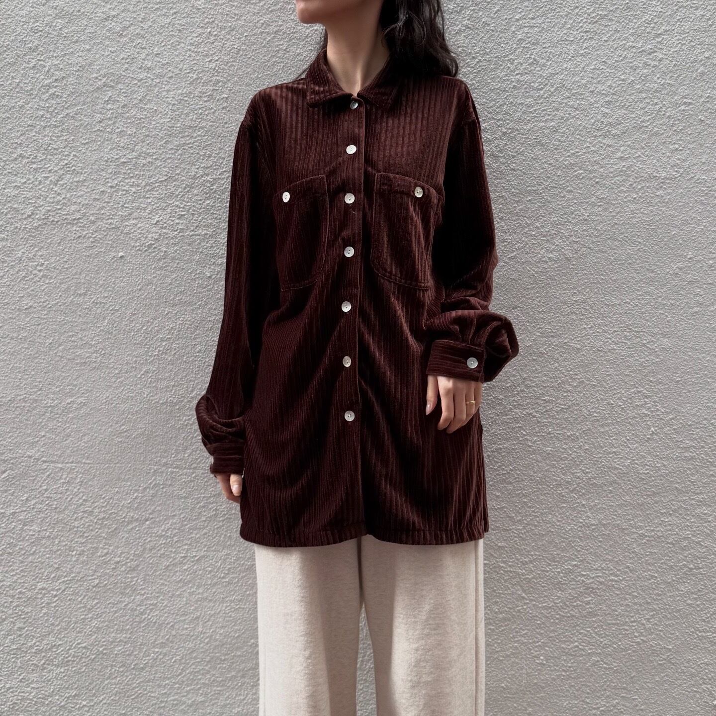 ベロアの程よい光沢感とシェルボタンが美しいシャツです。