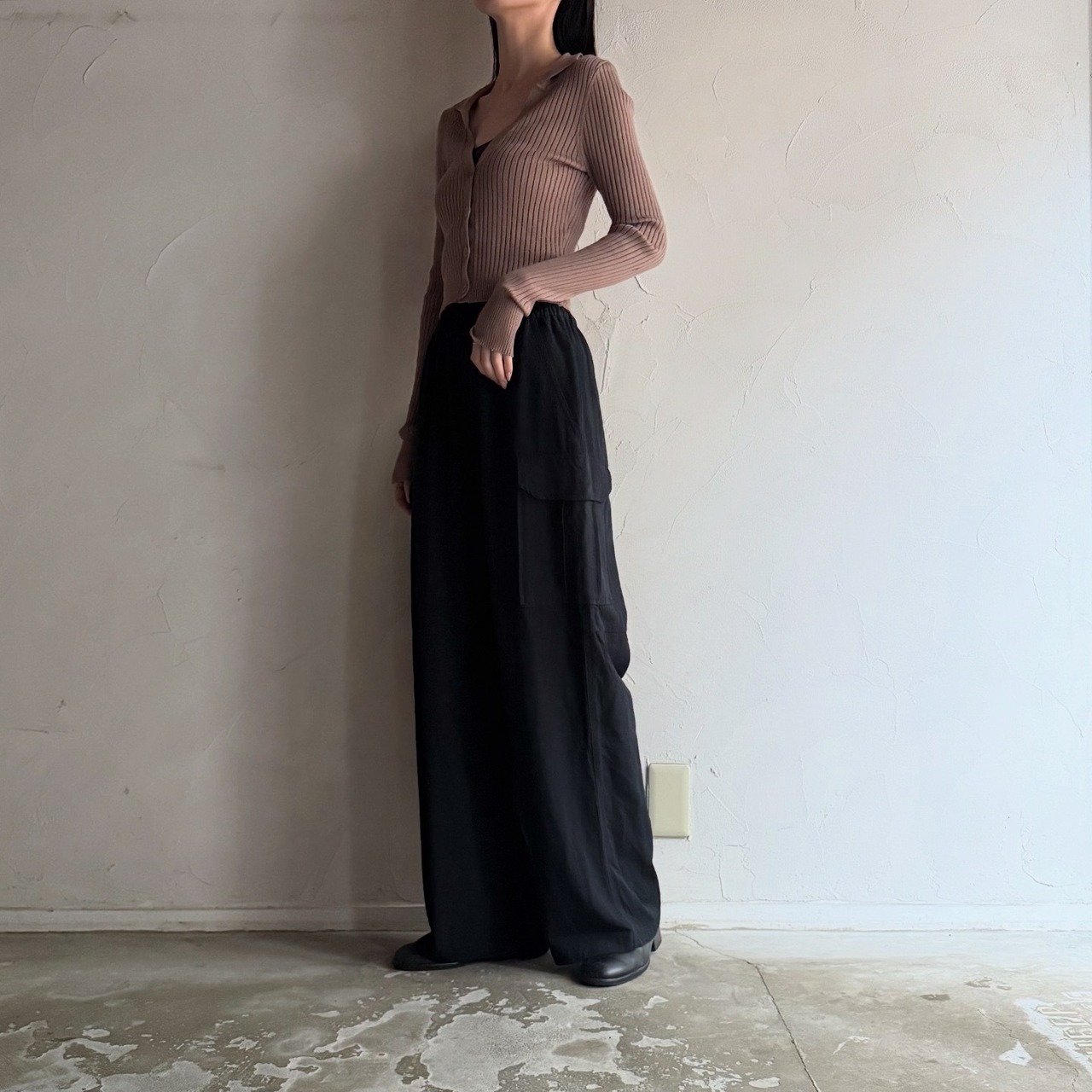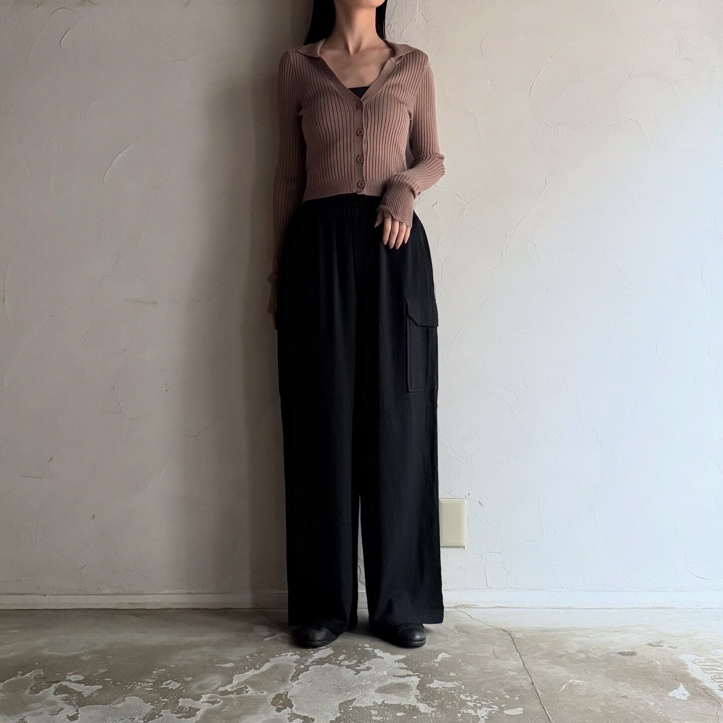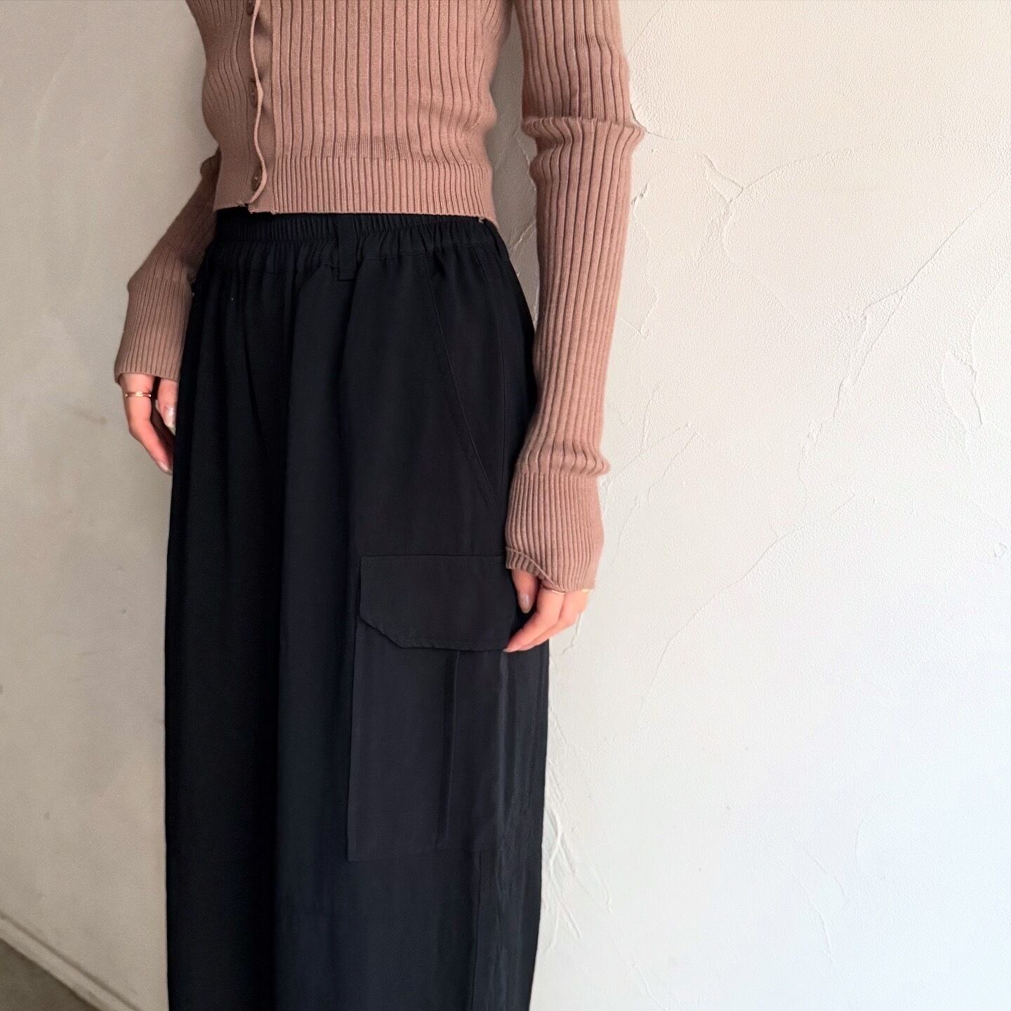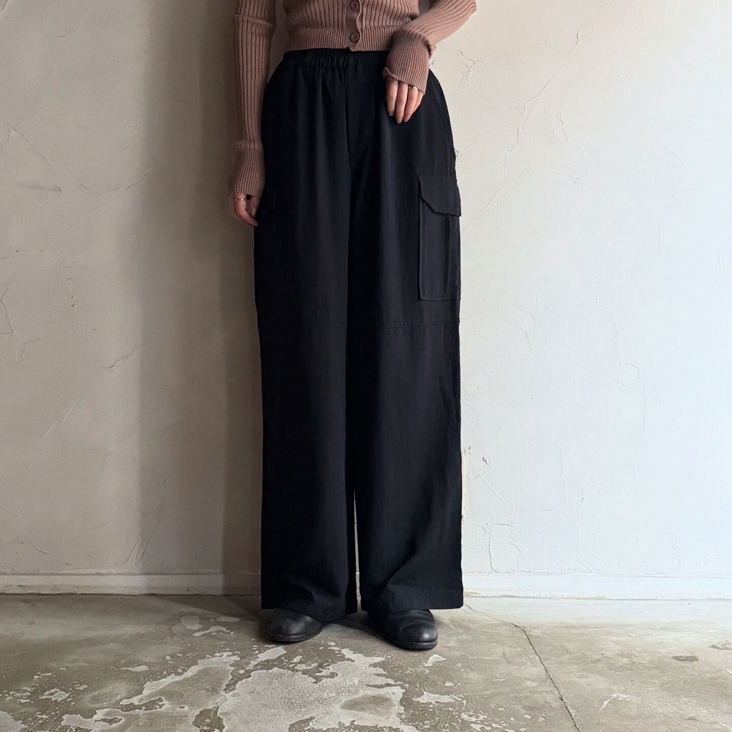 ストンと落ちるシルエットの美しいカーゴパンツです。カジュアルすぎず、綺麗めにも合わせられる一本です。