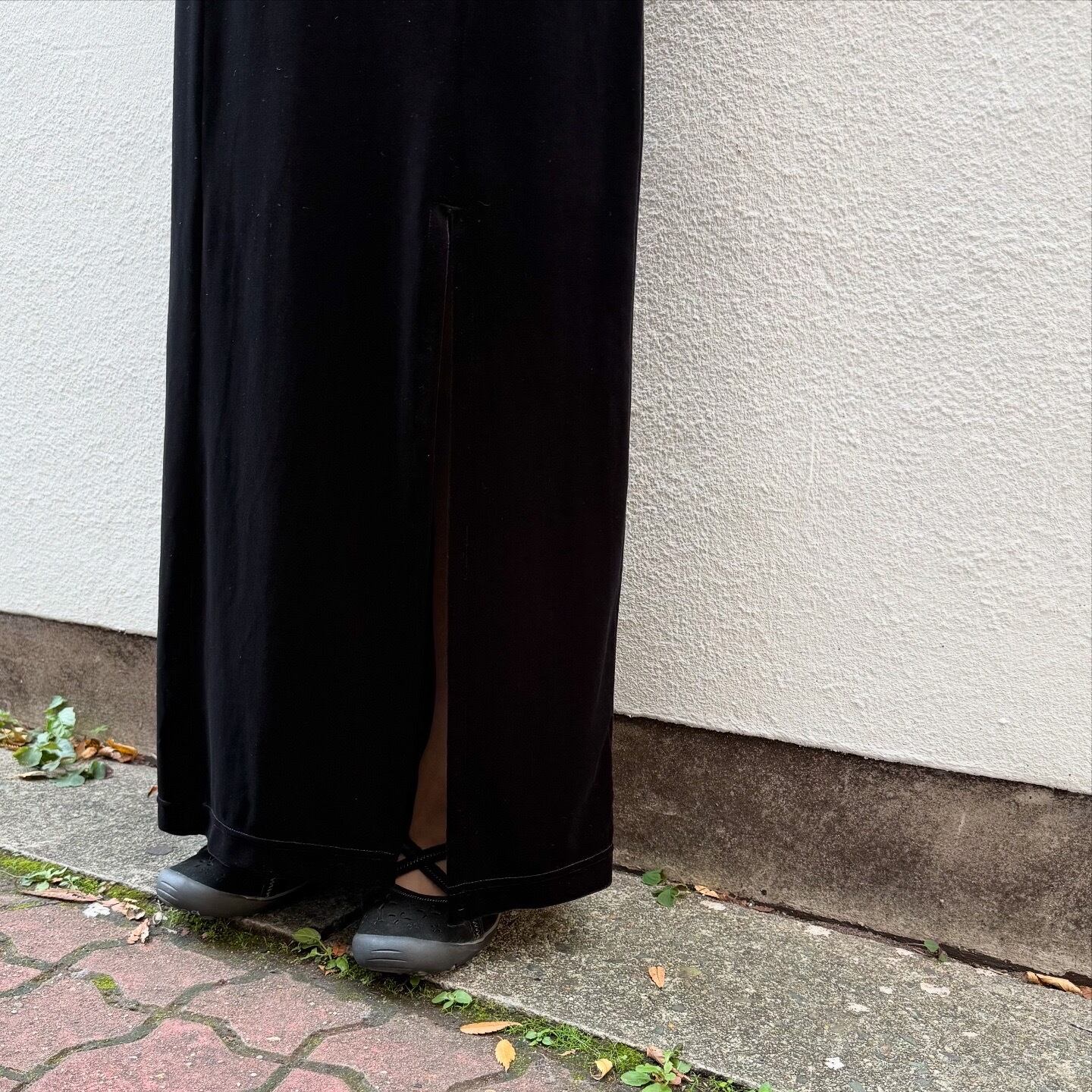 フロントにざっくりとしたスリットが入っているので、タイツやロングブーツとの合わせも素敵です。