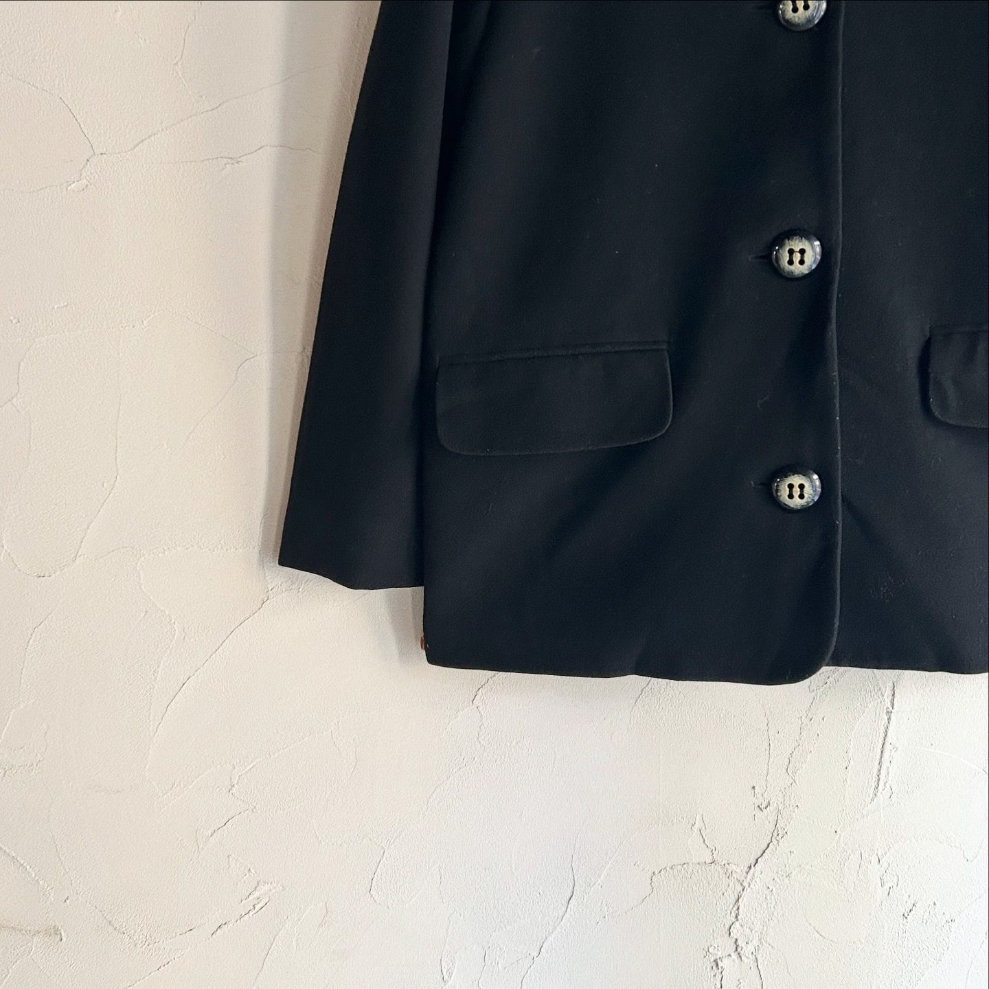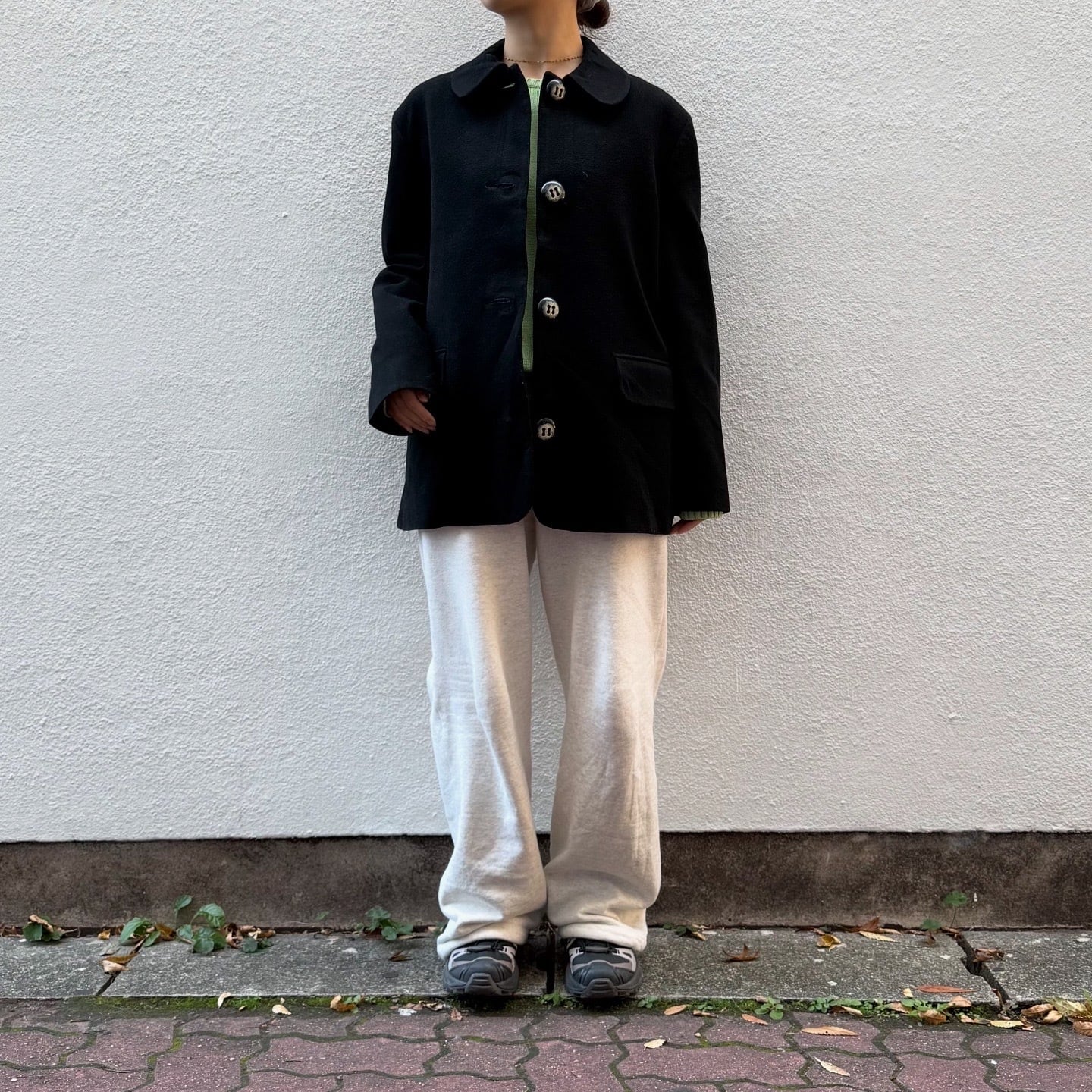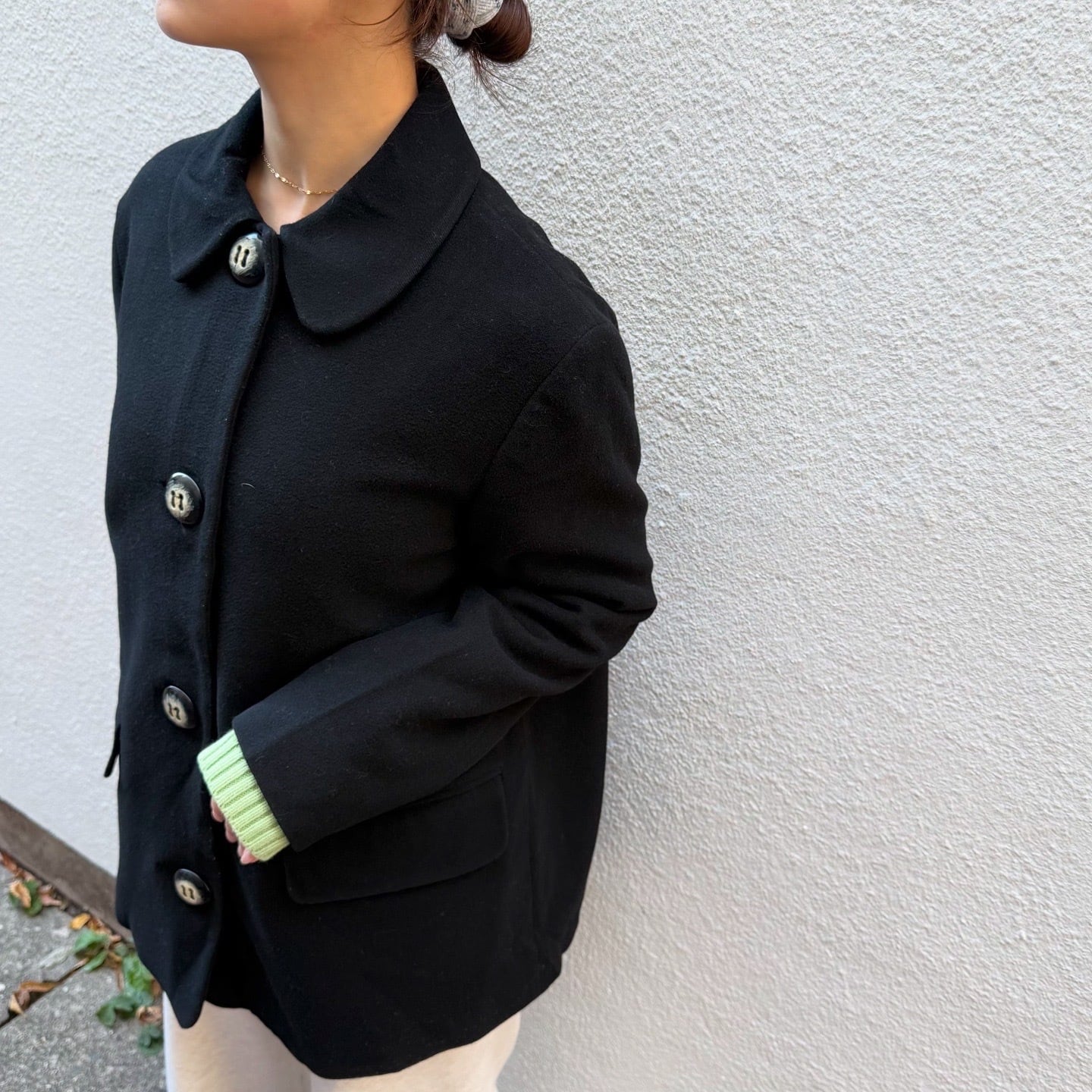 程よい丈感で軽いウールジャケットです。上品ながらも、丸襟と大きめの艶々なボタンでフェミニンな印象です。