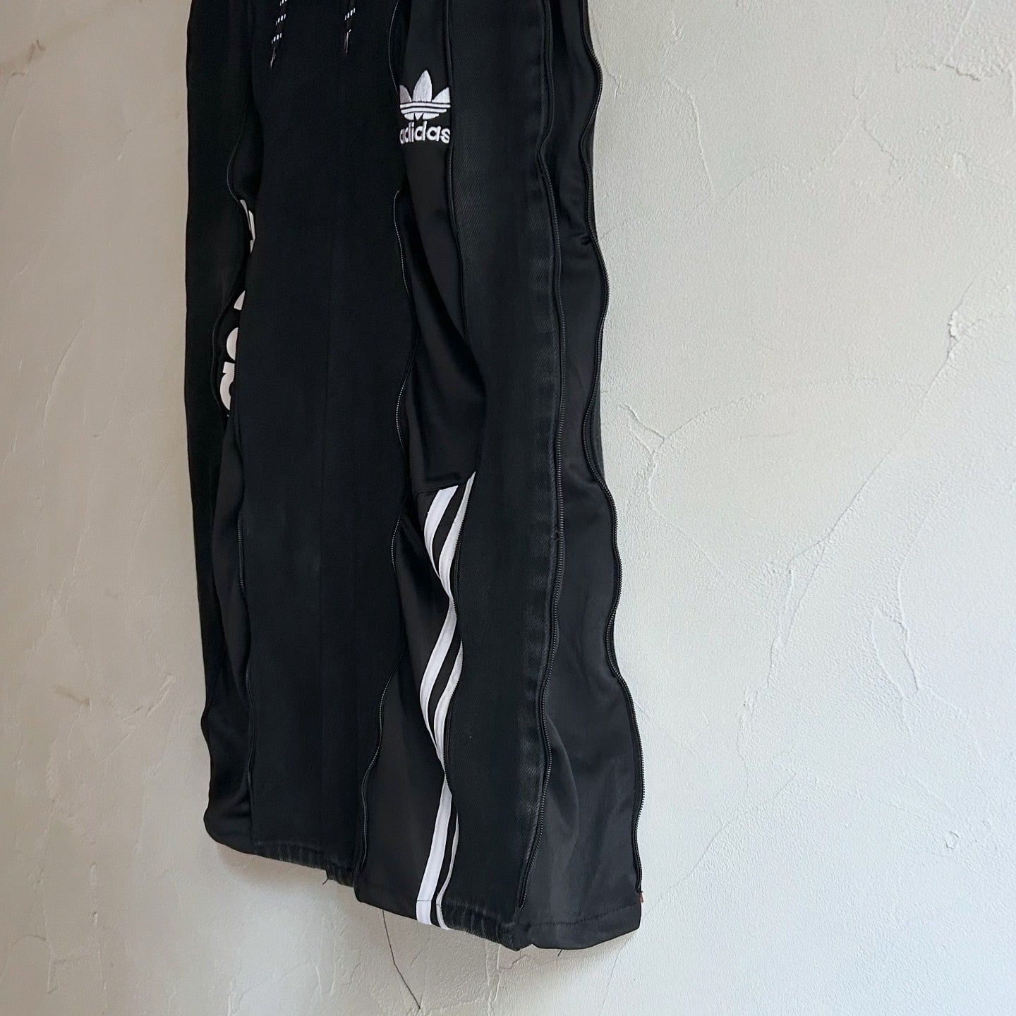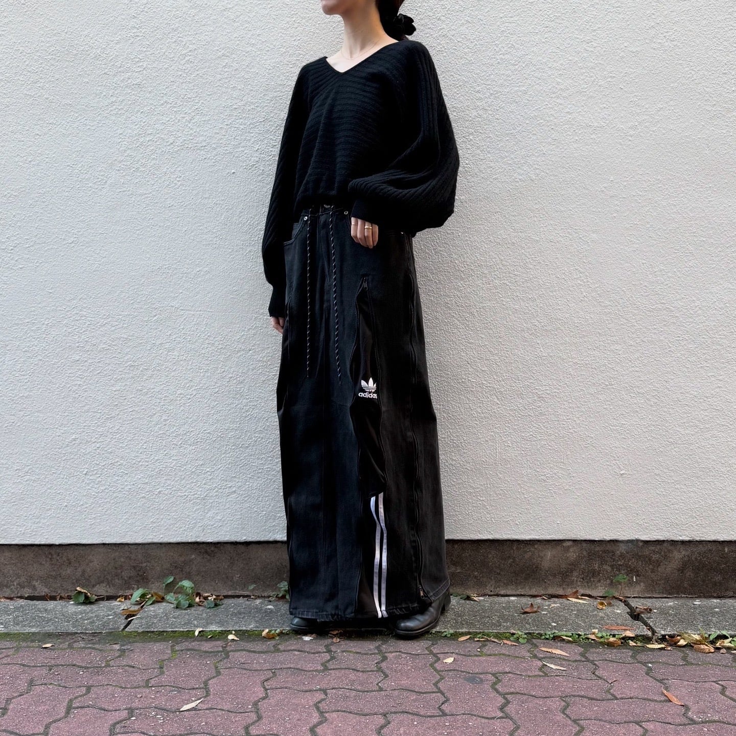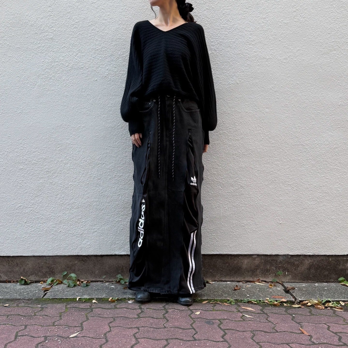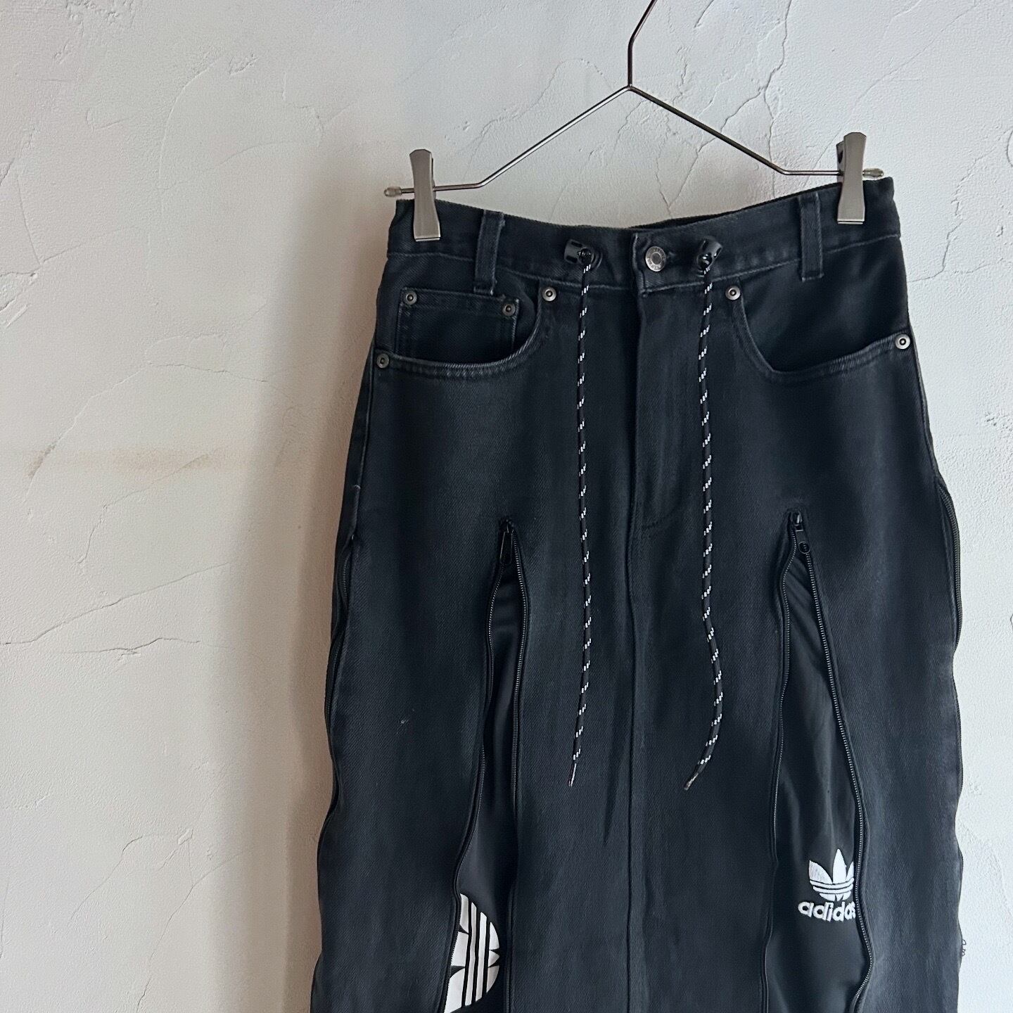 デニムとadidasのトラックパンツを縫い合わせたスカート。