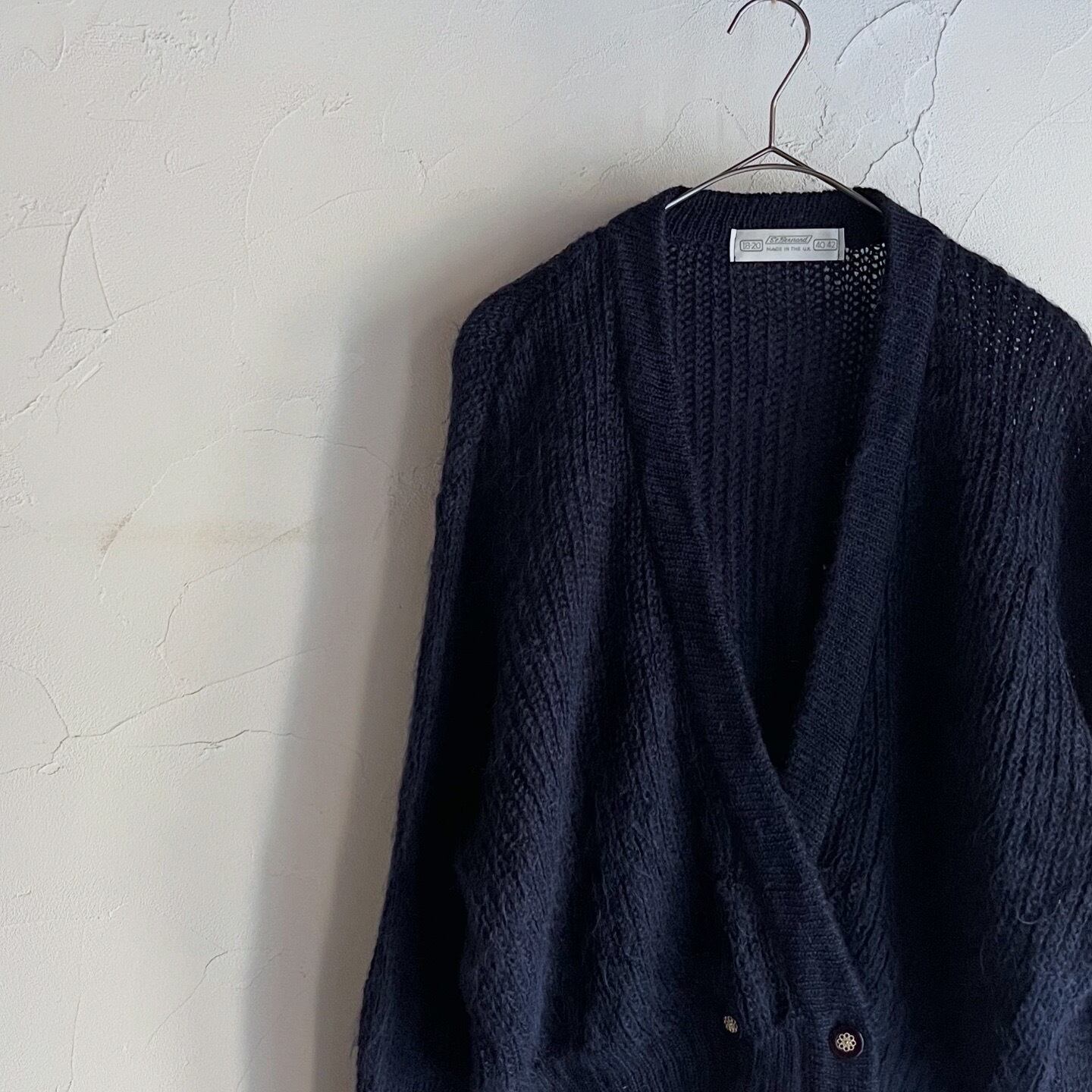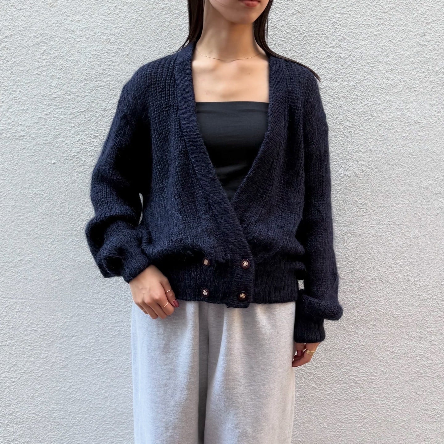 ふわふわとした毛足の長いモヘアが暖かいニットカーディガンです。
