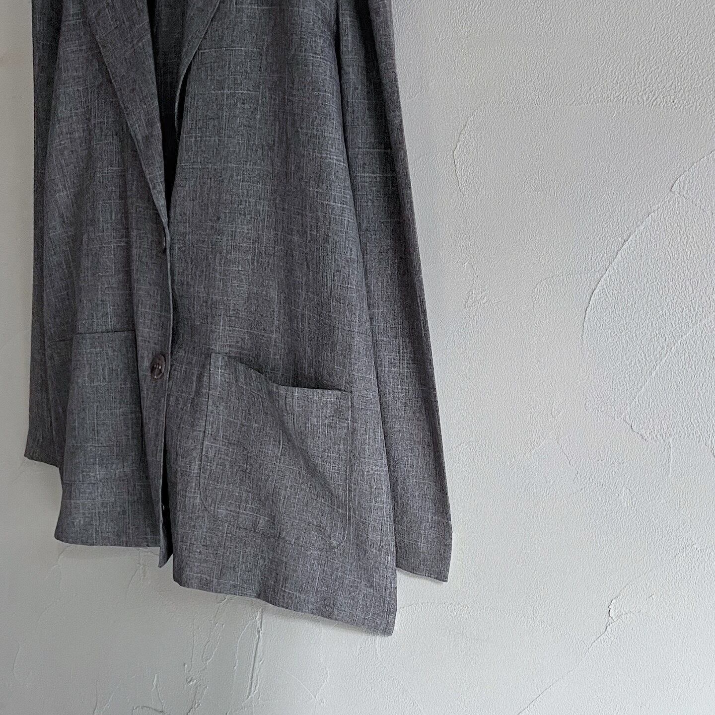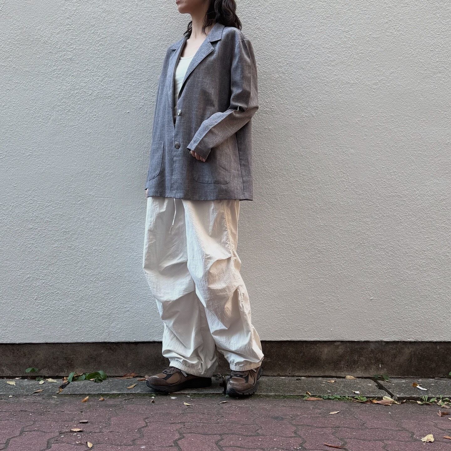 裏地の無い軽い着心地のシャツジャケットです。シャツ感覚で羽織れる薄さなので、上からアウターを羽織ることも可能です。