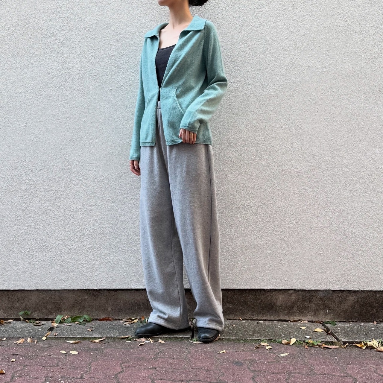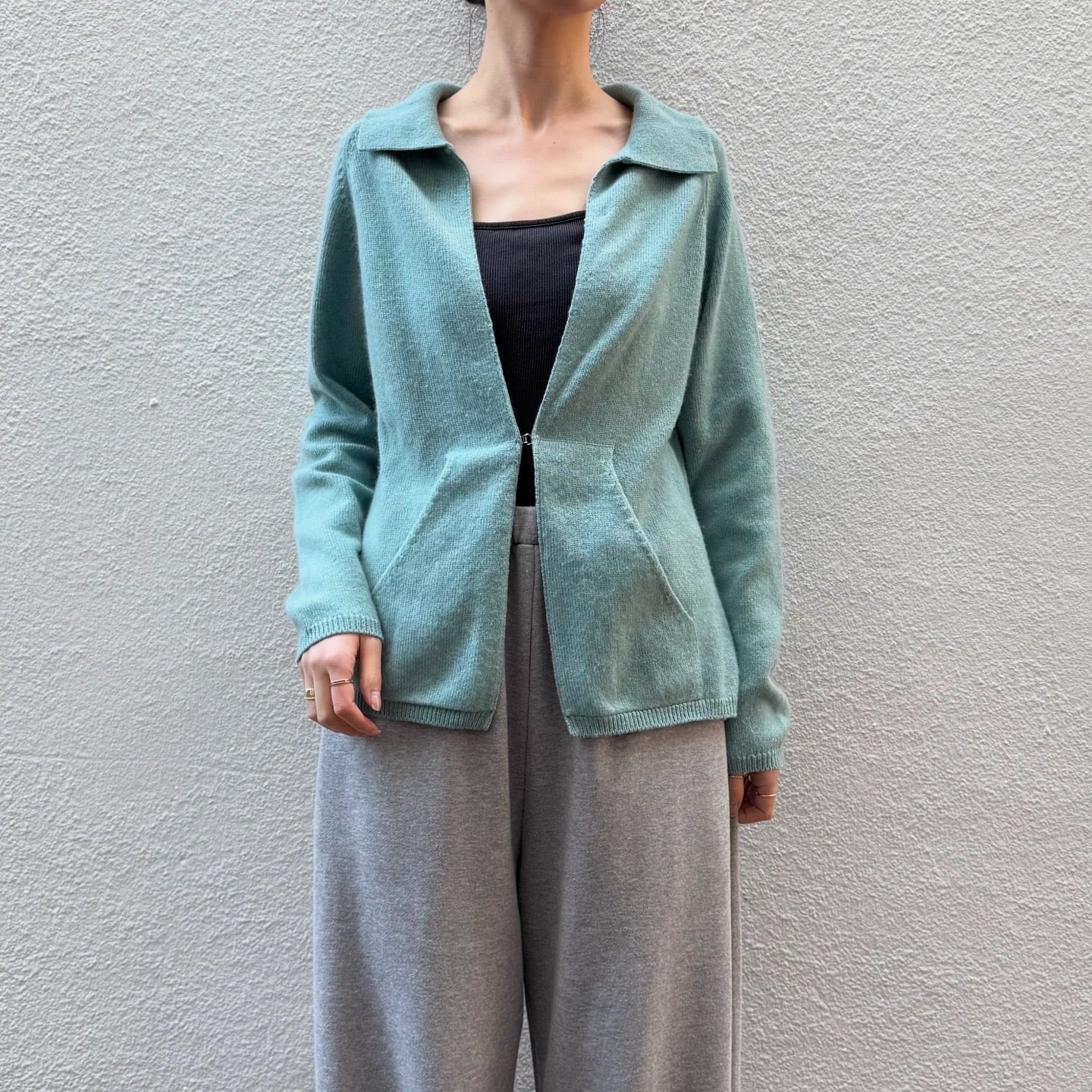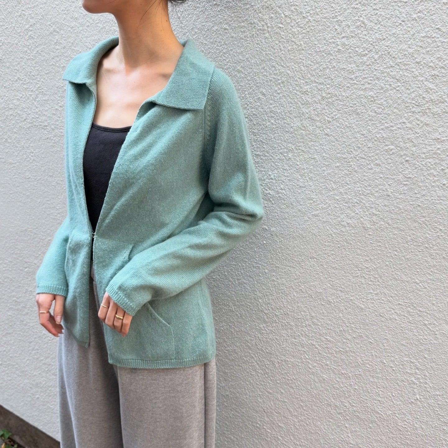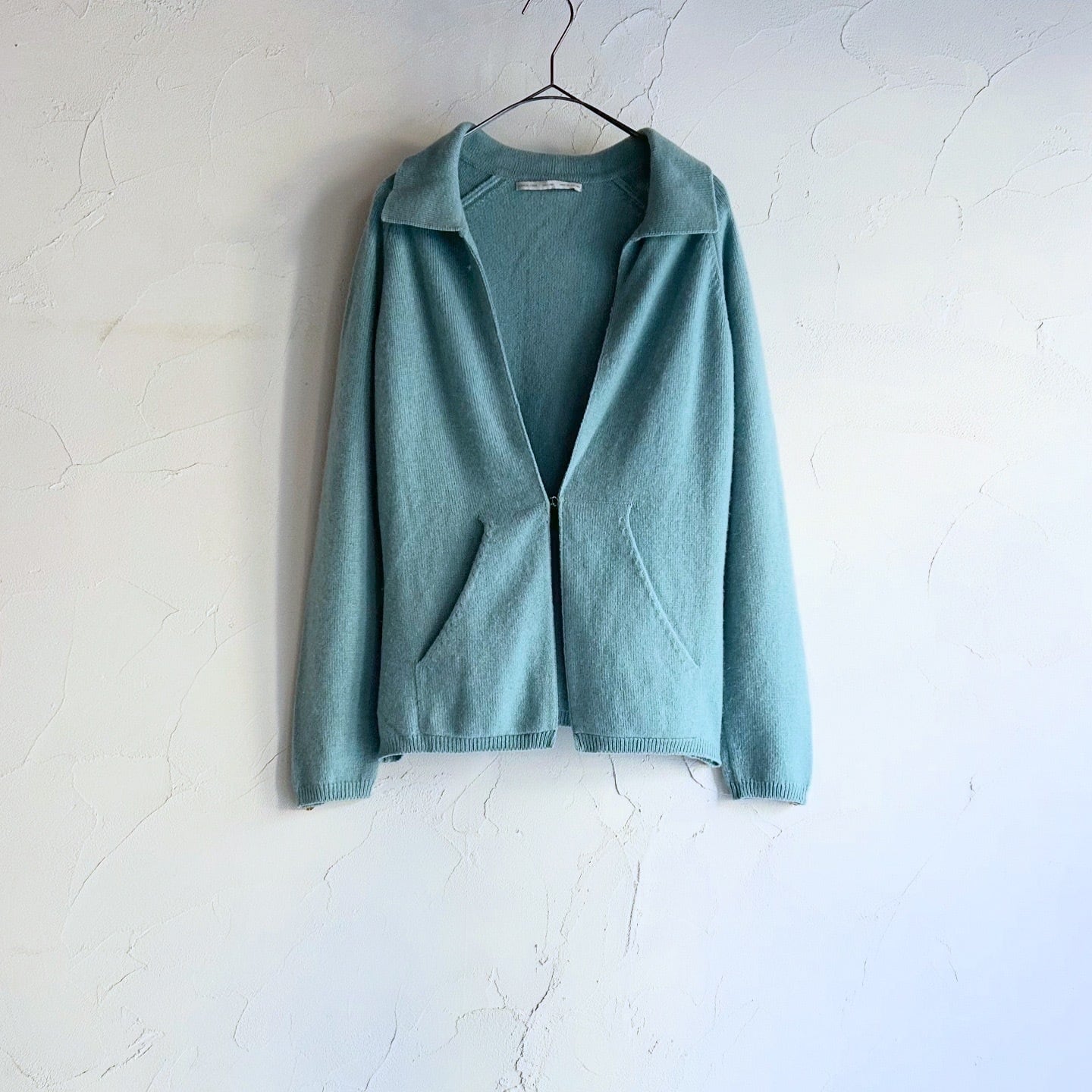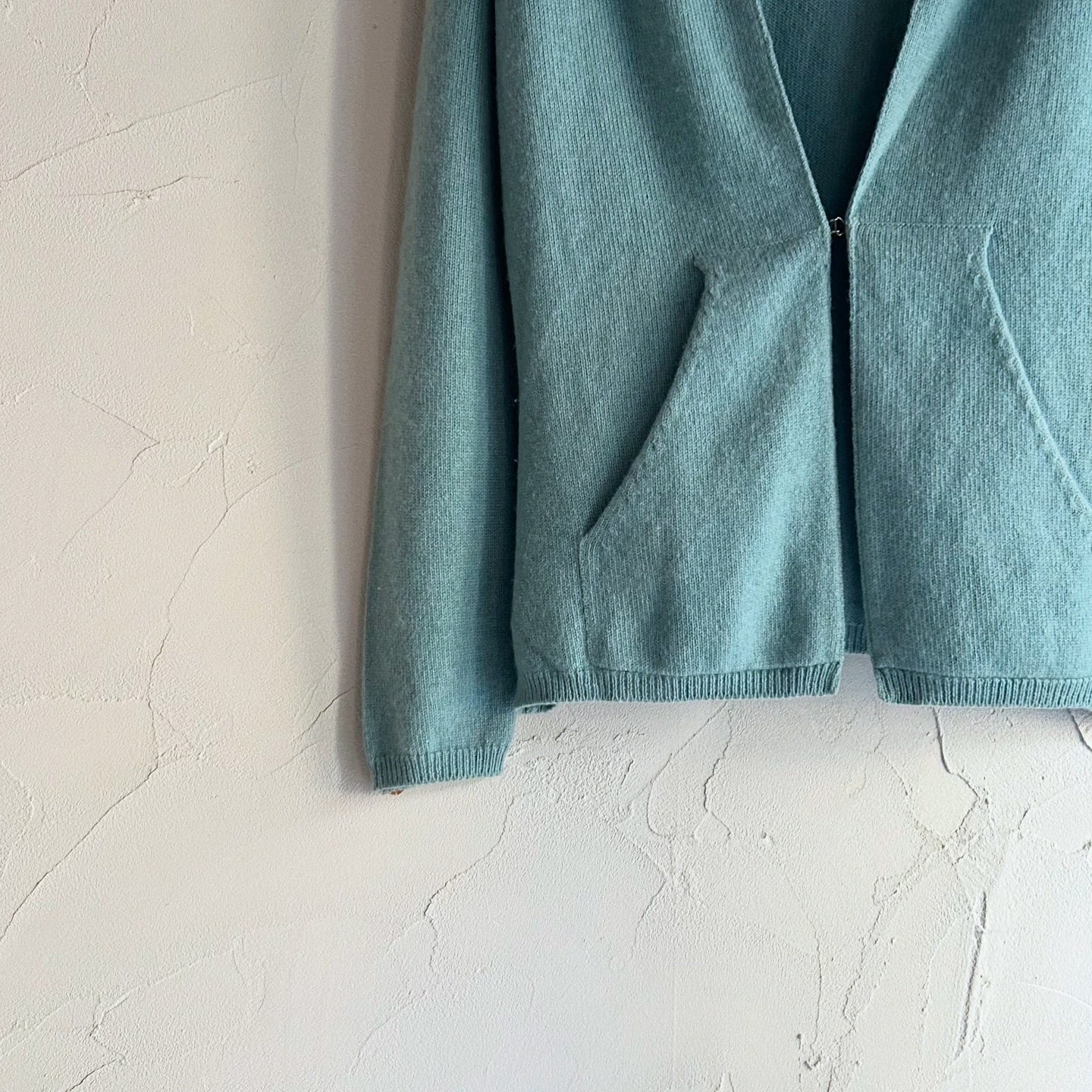 100%カシミヤの綺麗な水色のニットジャケットです。