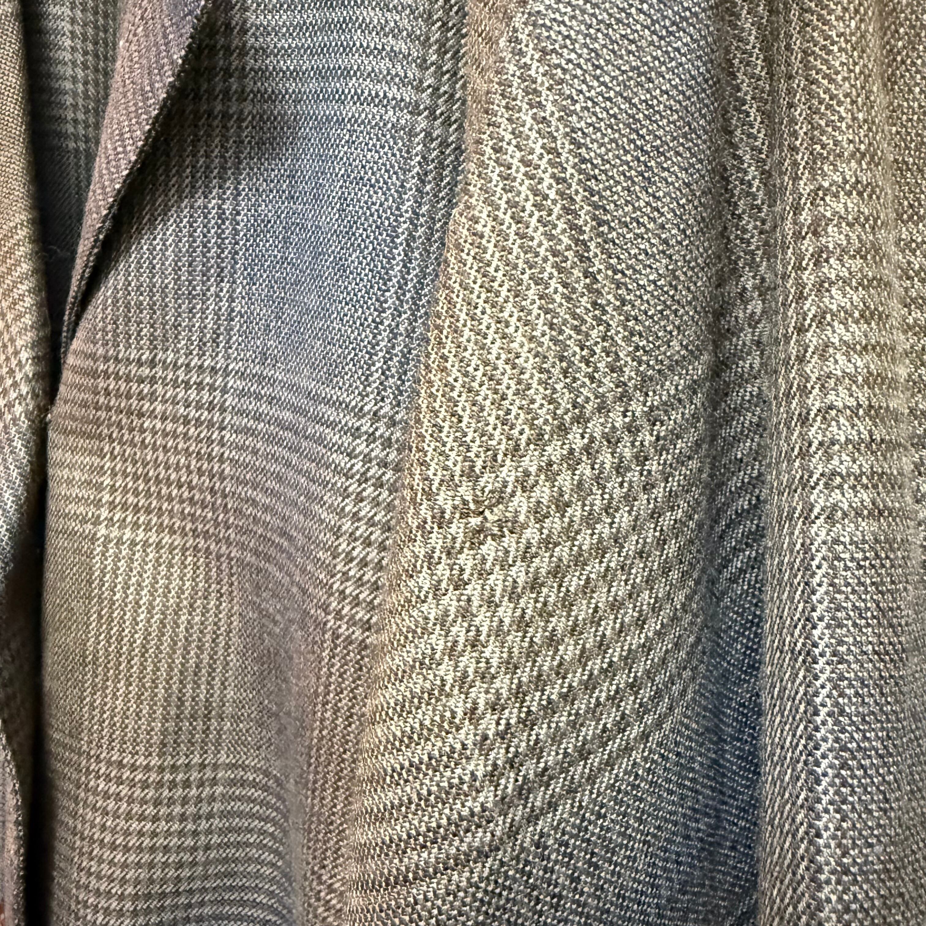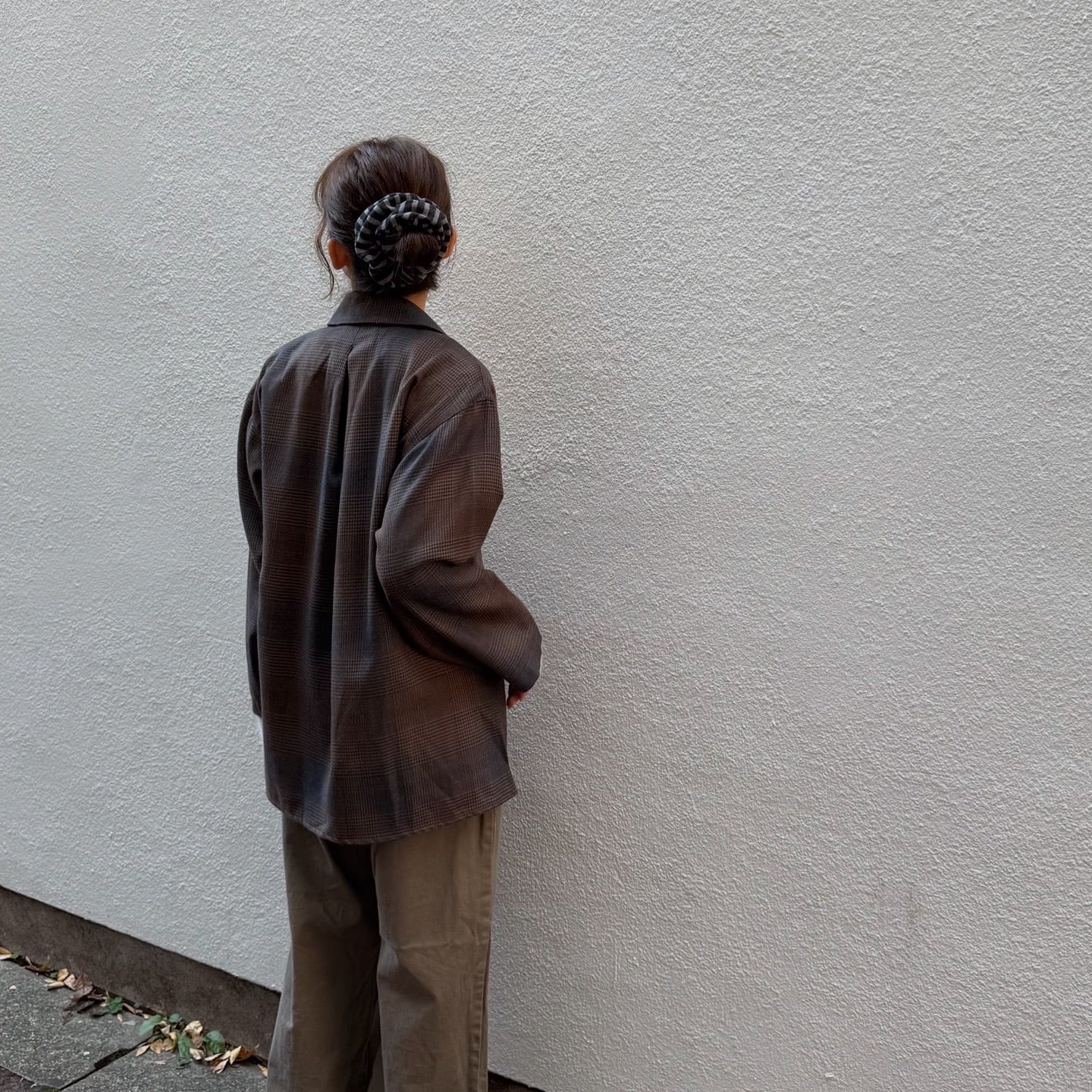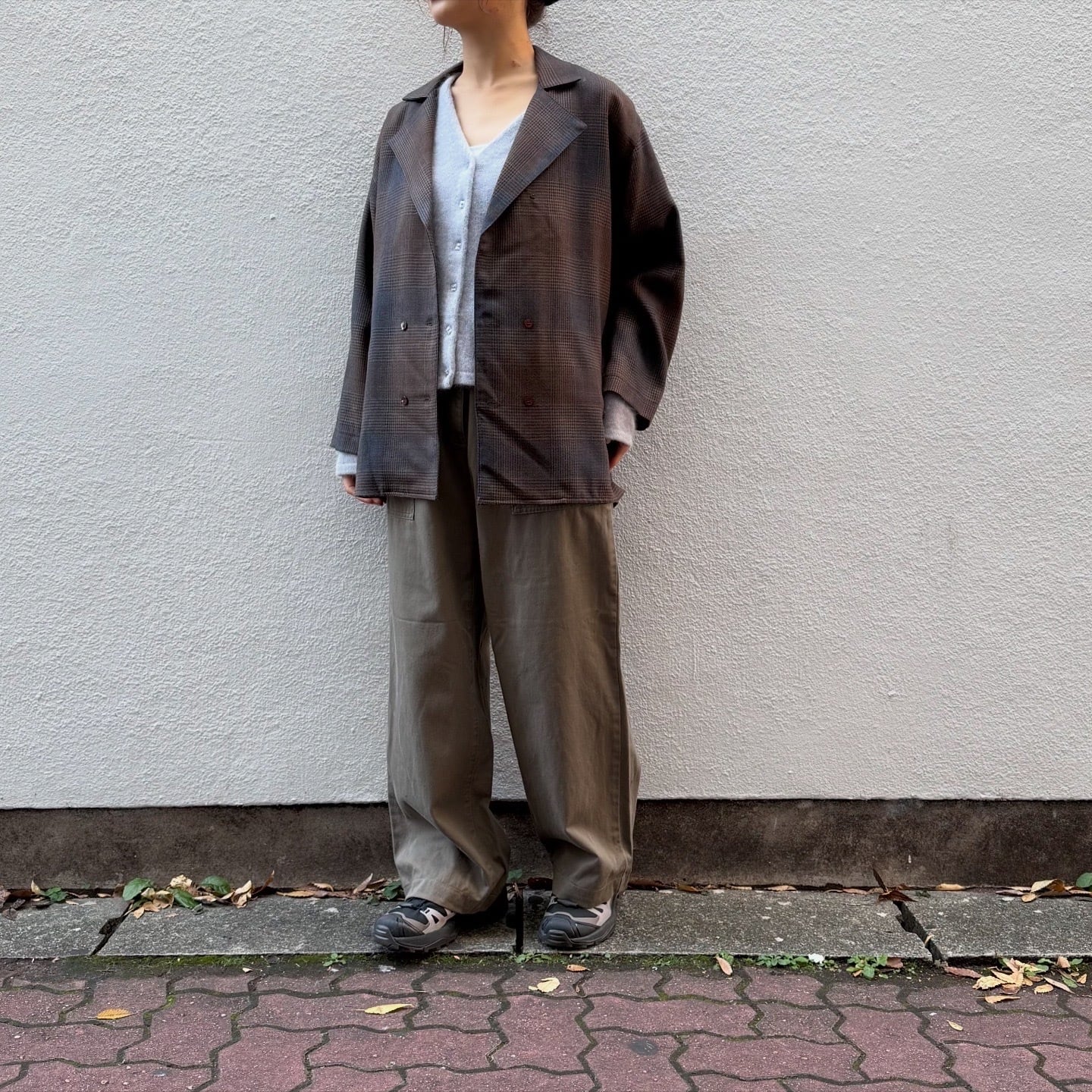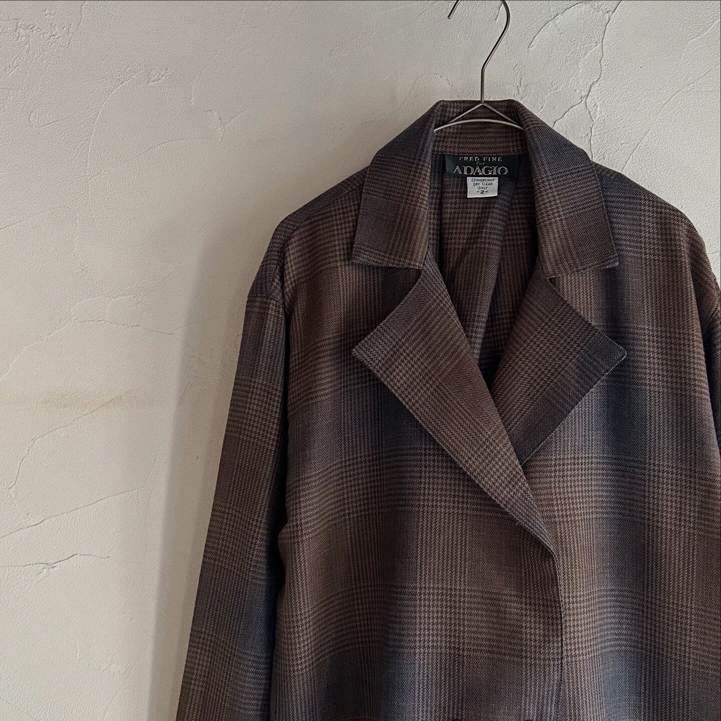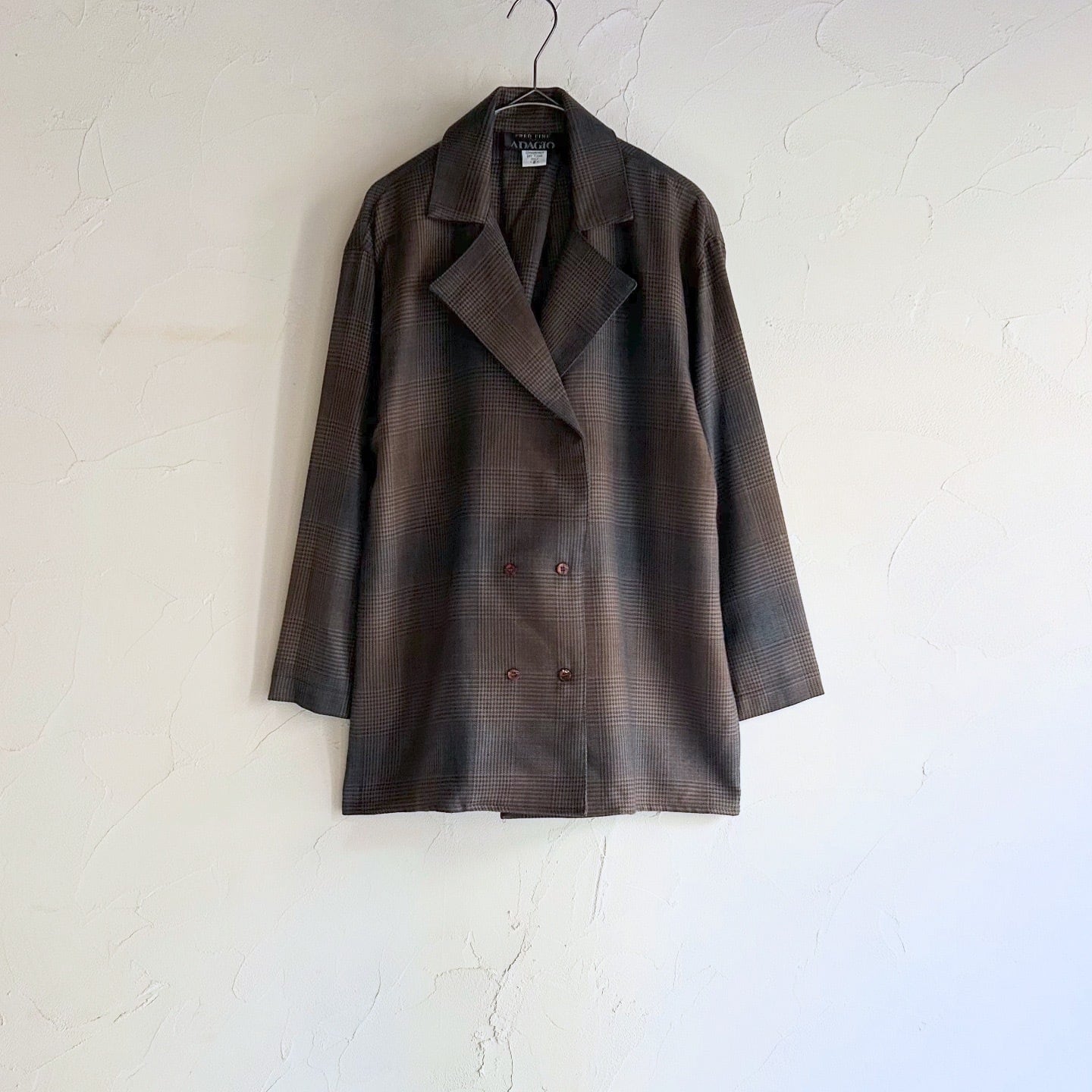 落ち着いたブラウンのチェック柄が可愛いダブルブレストのジャケットです。