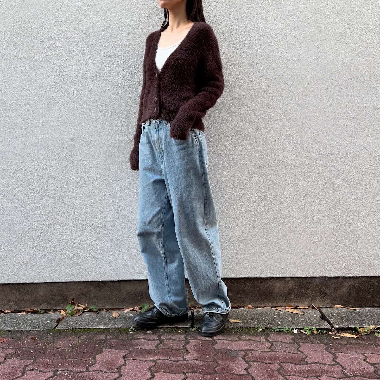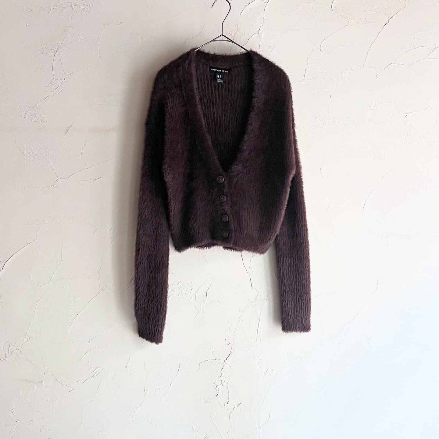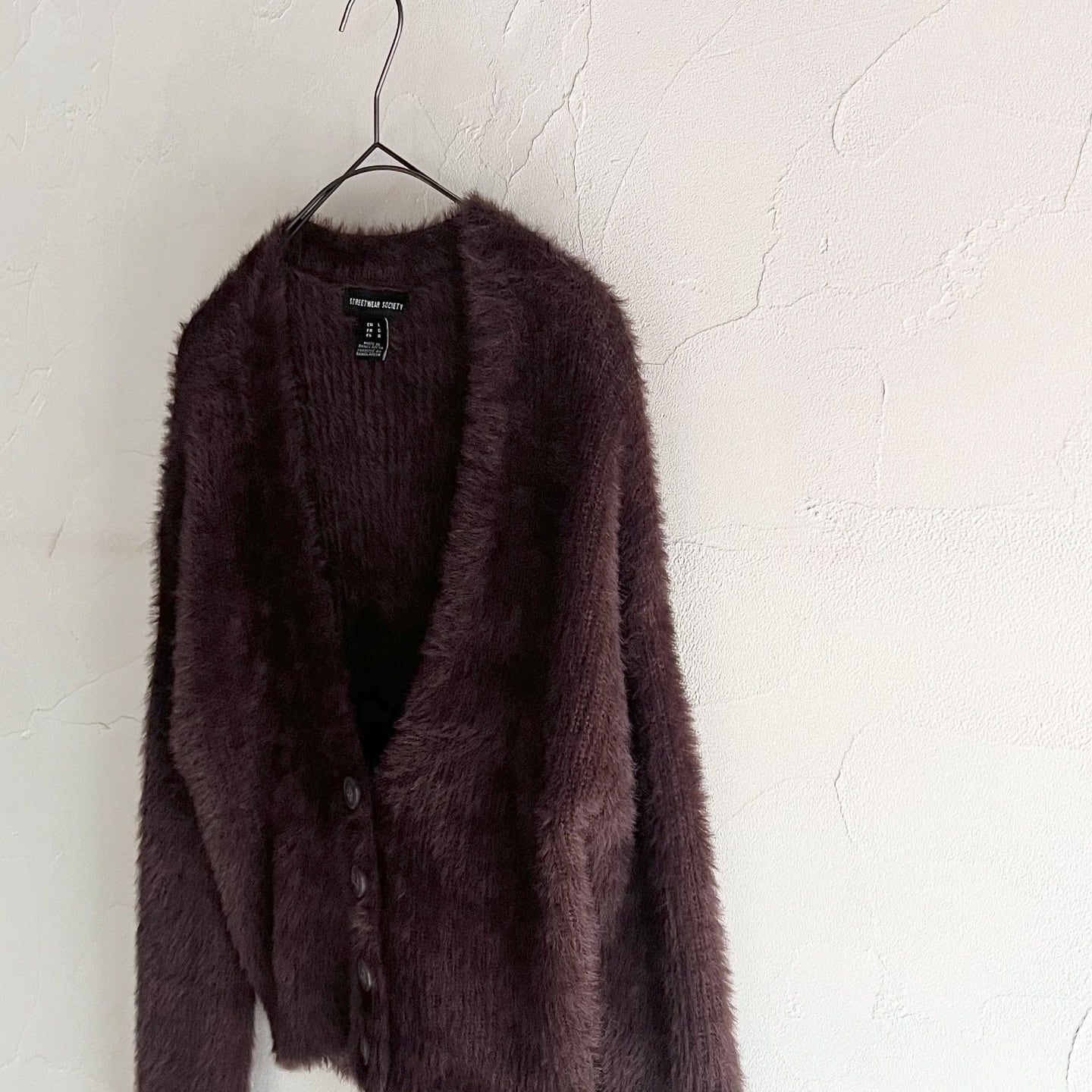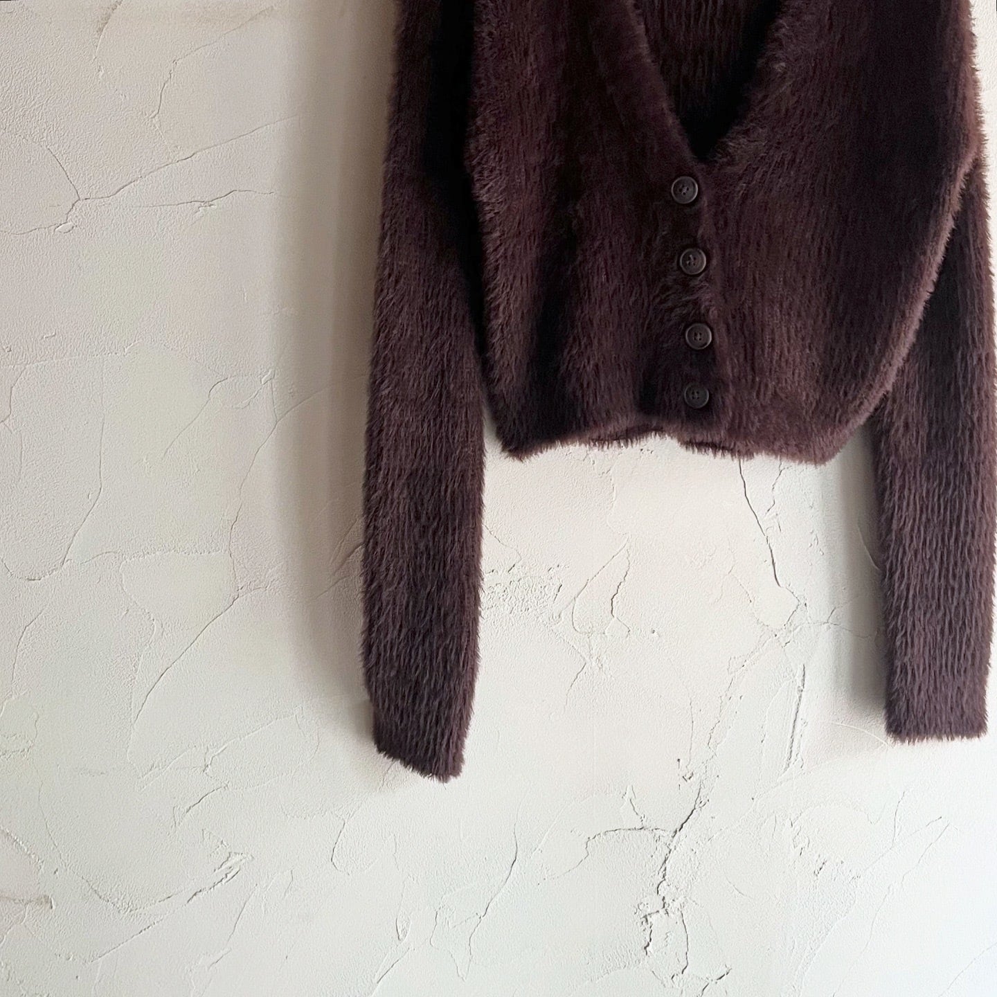 ふわふわしたシャギーニットが肌触りの良いカーディガンです。インナーにはキャミソールや薄手のタートルなどを合わせて頂けます。