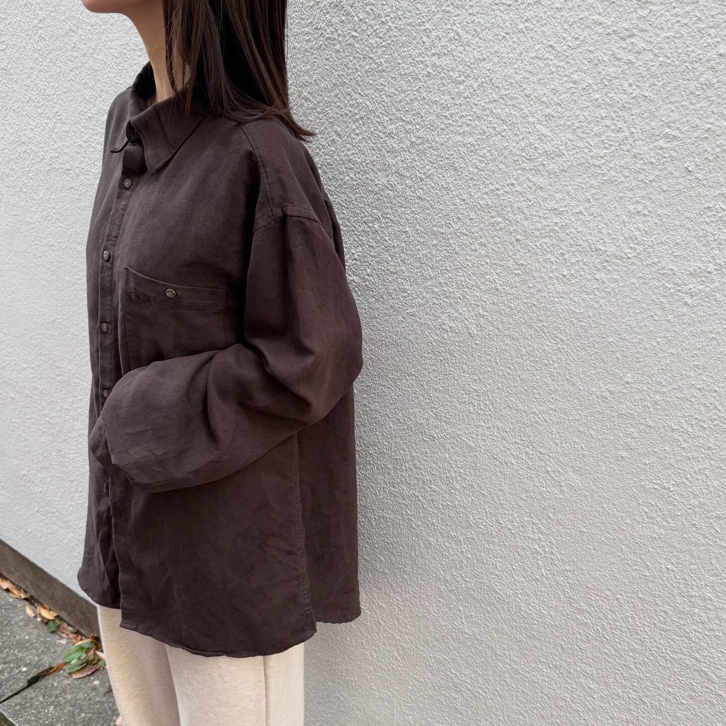 フェイクスエードのマットな生地感が素敵なシャツです。